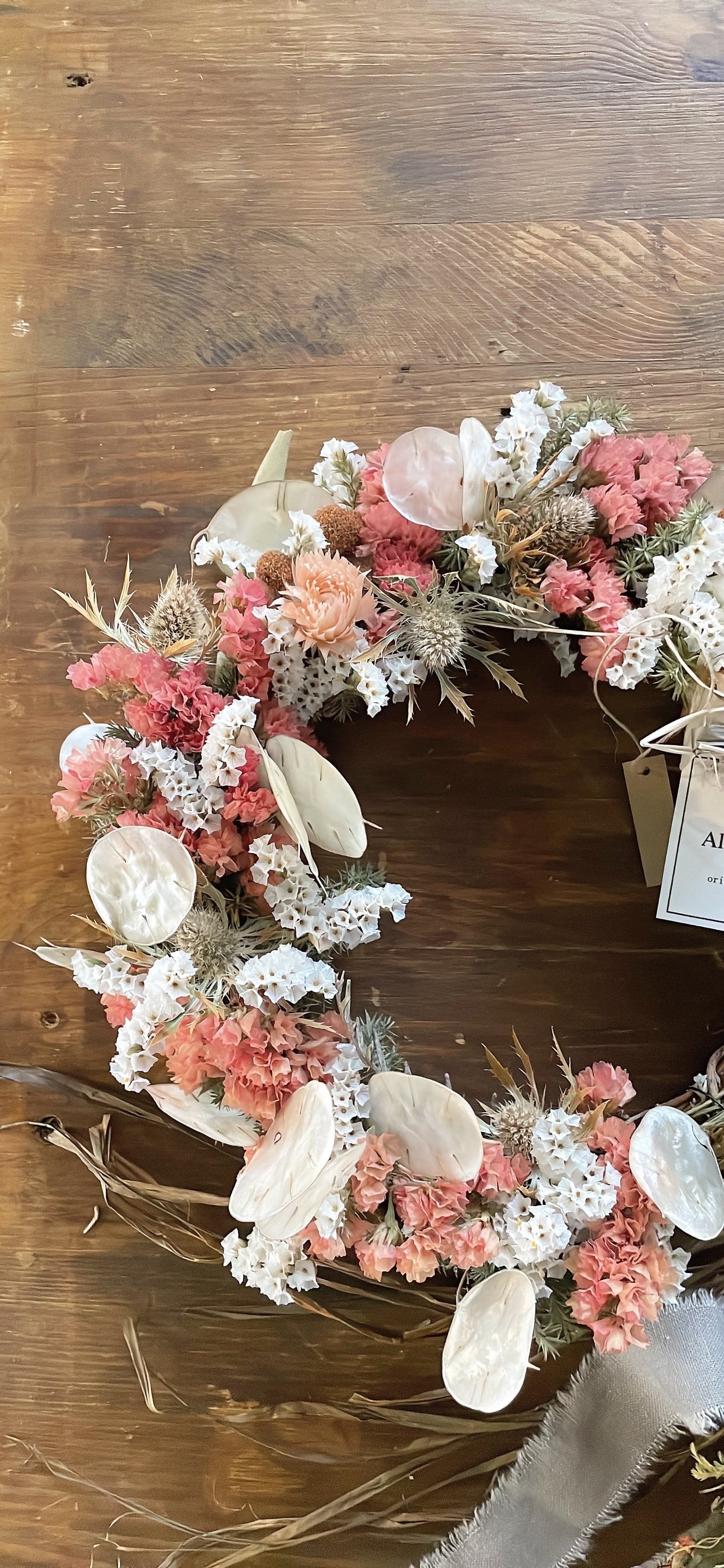 ■ オレンジのスターチスとルナリアのナチュラルリース
