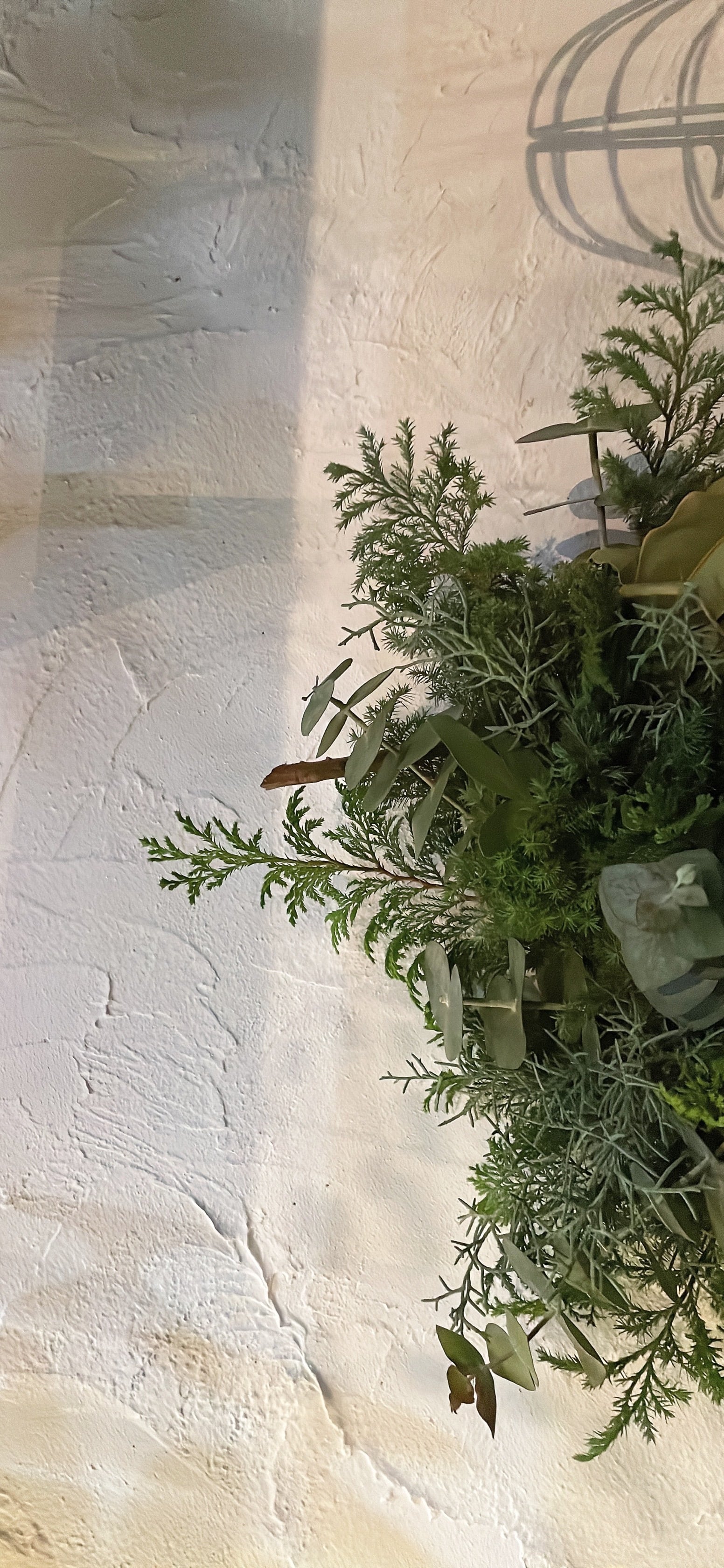 針葉樹にユーカリやオリーブを使用したクリスマスリース