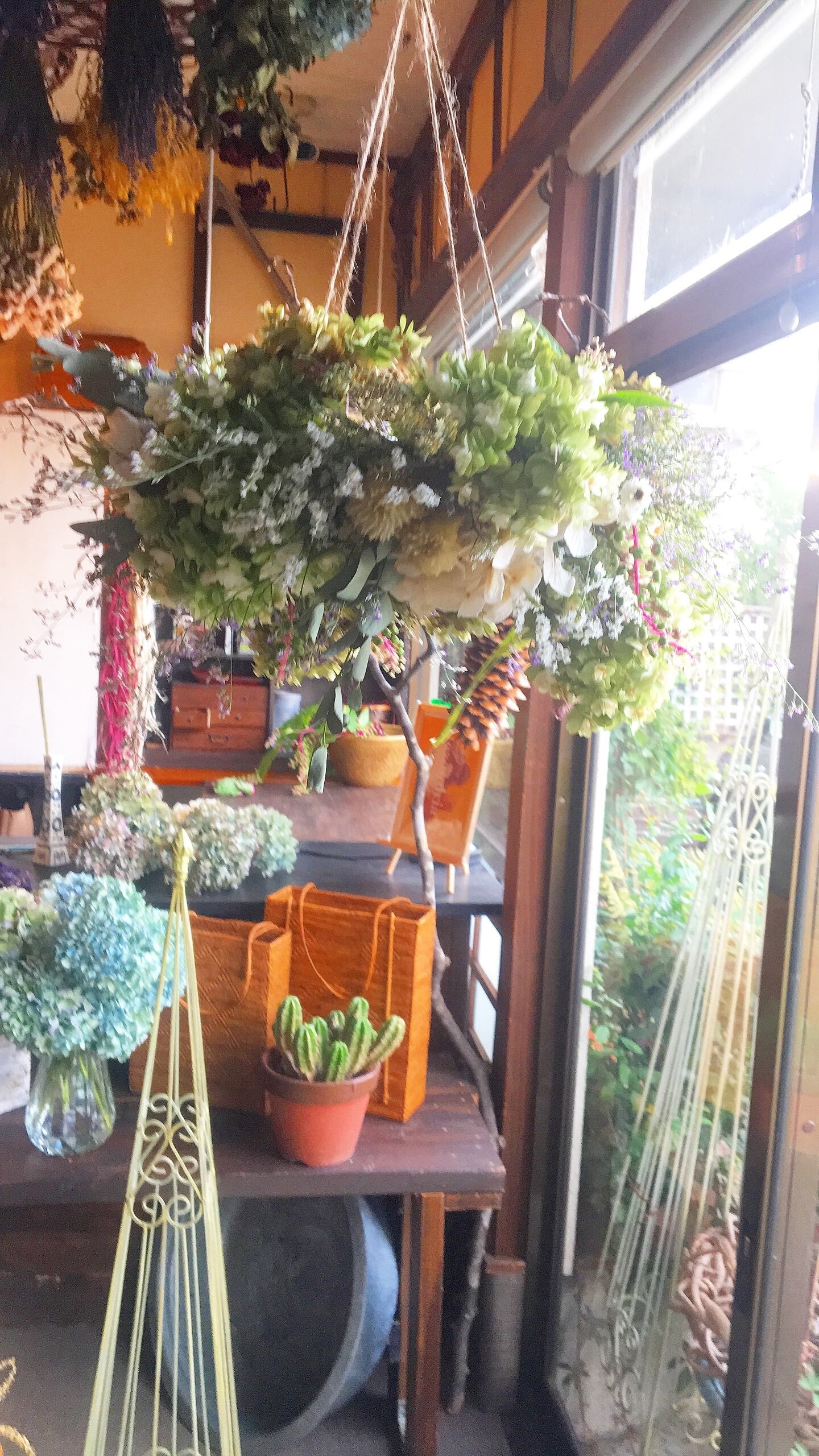 珍しい柏葉あじさいのシャンデリアを