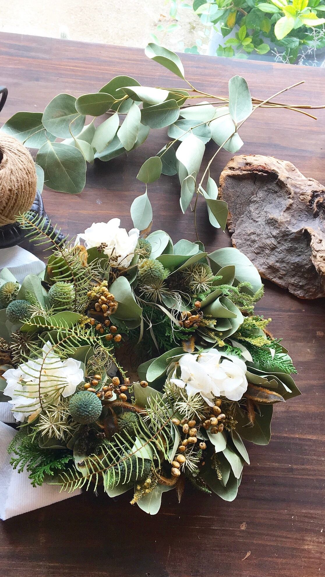 ユーカリポポラスと様々な植物のリース