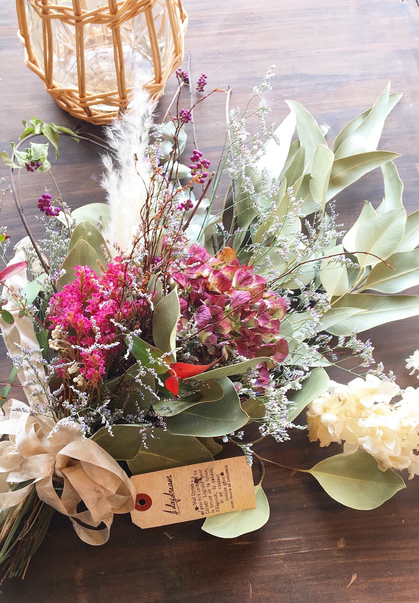 アンティークあじさいとパンパスのノスタルディックスワッグ*ドライフラワースワッグ