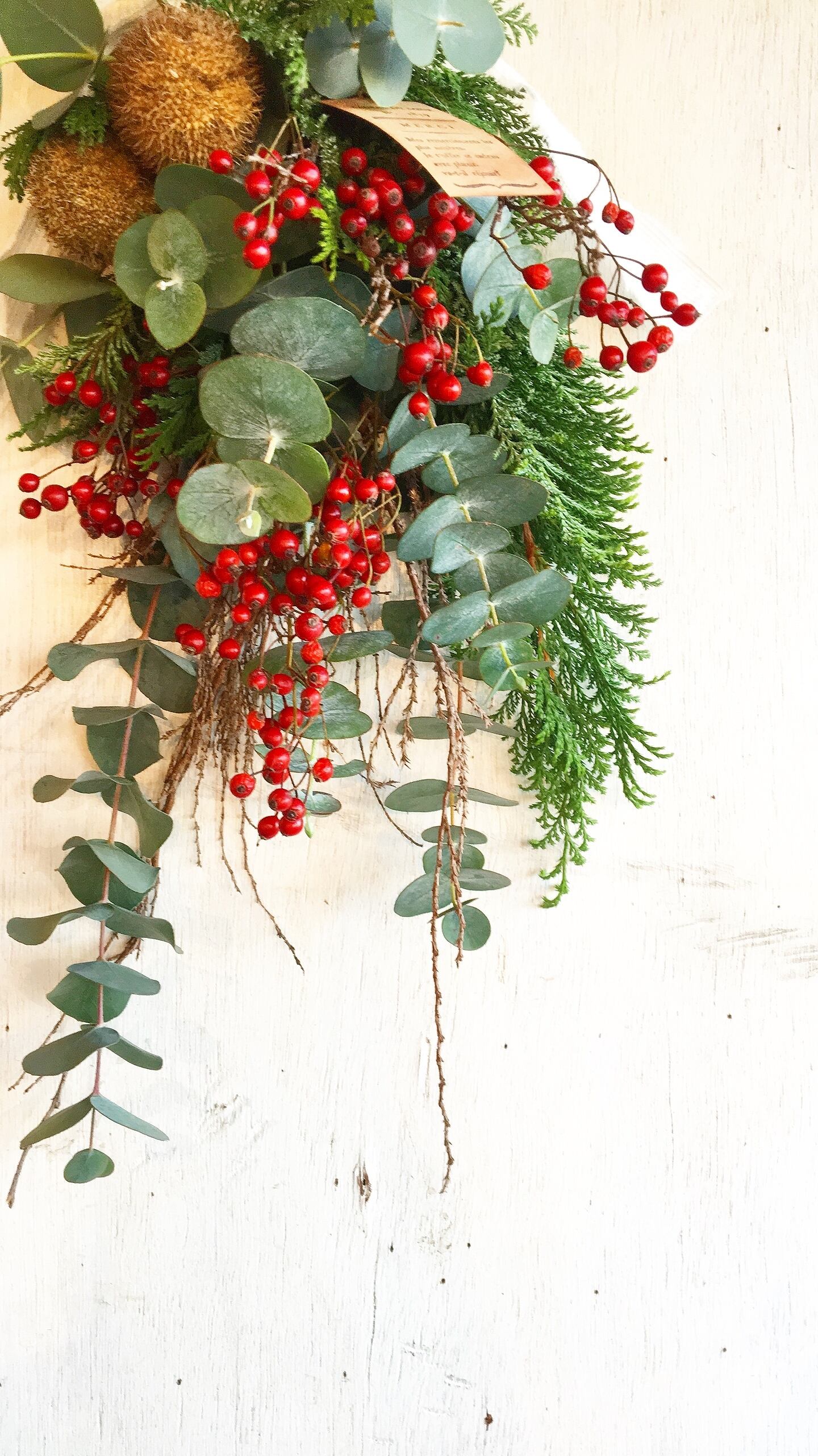 会津産ユーカリ銀世界を使用した クリスマススワッグ