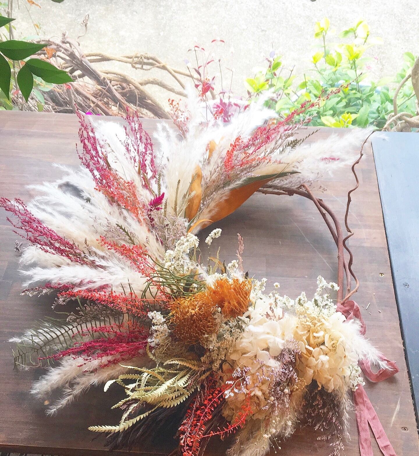 #パンパスのリース #リース #ハンドメイド #オーバルリース #フライングリース #アンティーク #ブライダルリース #ブライダルブーケ