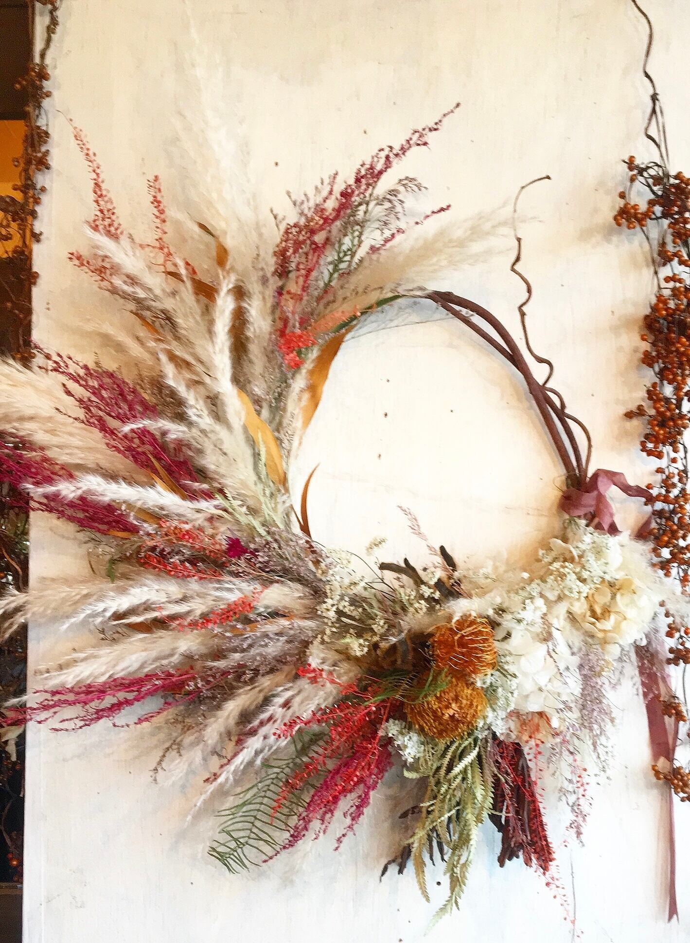 〜Wing wreath〜パンパスとワイルドフラワーの大きなハーフリース