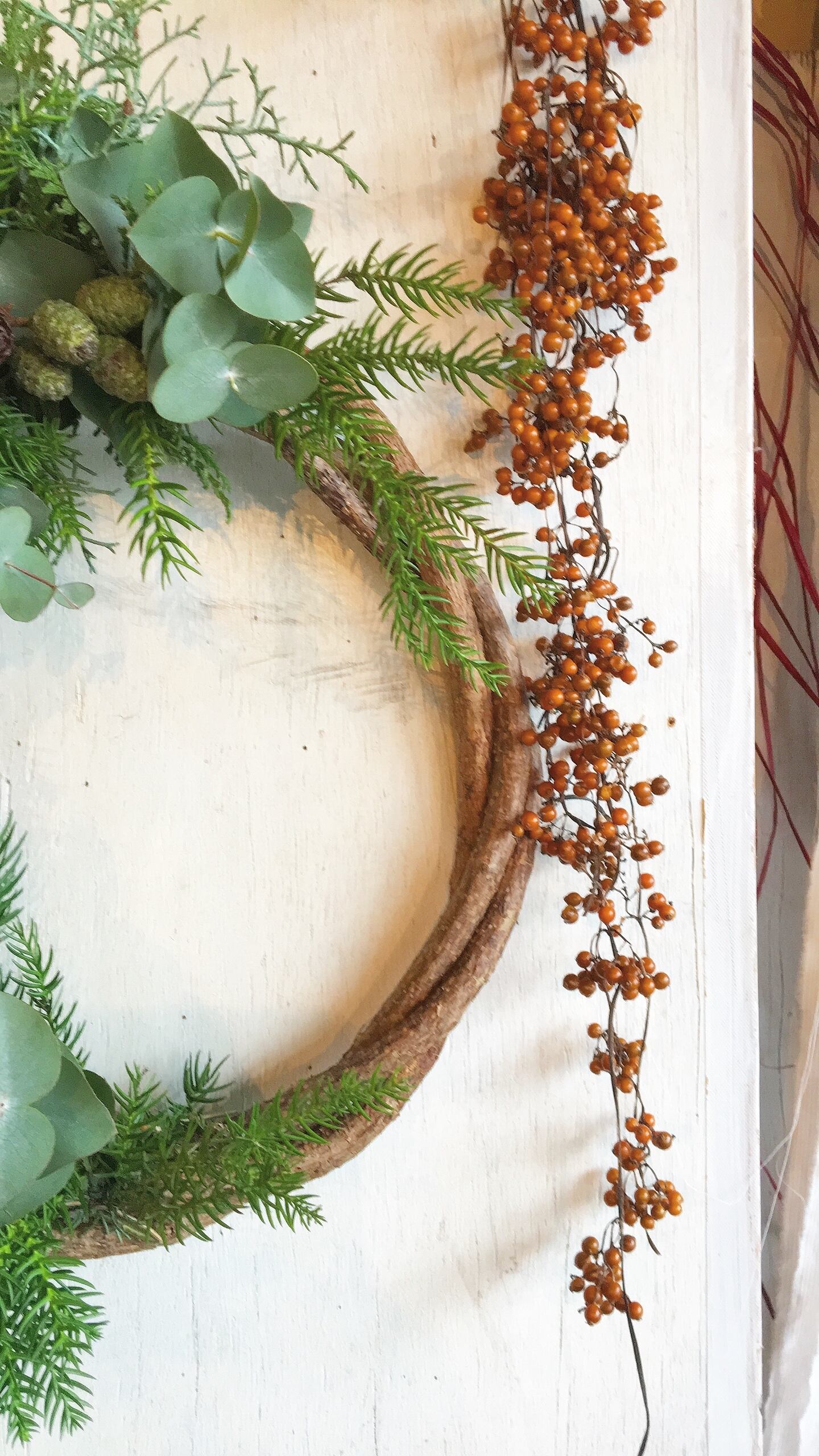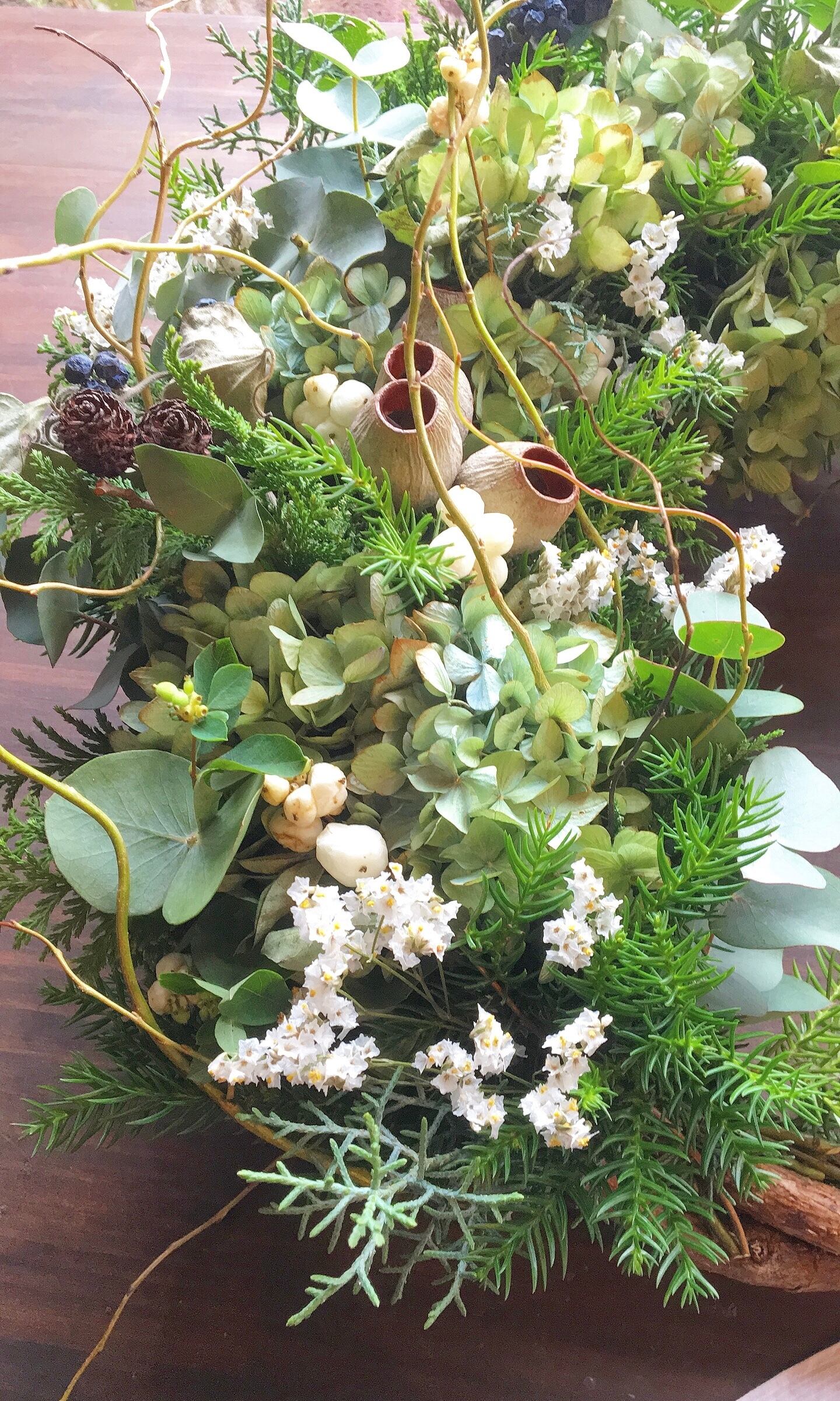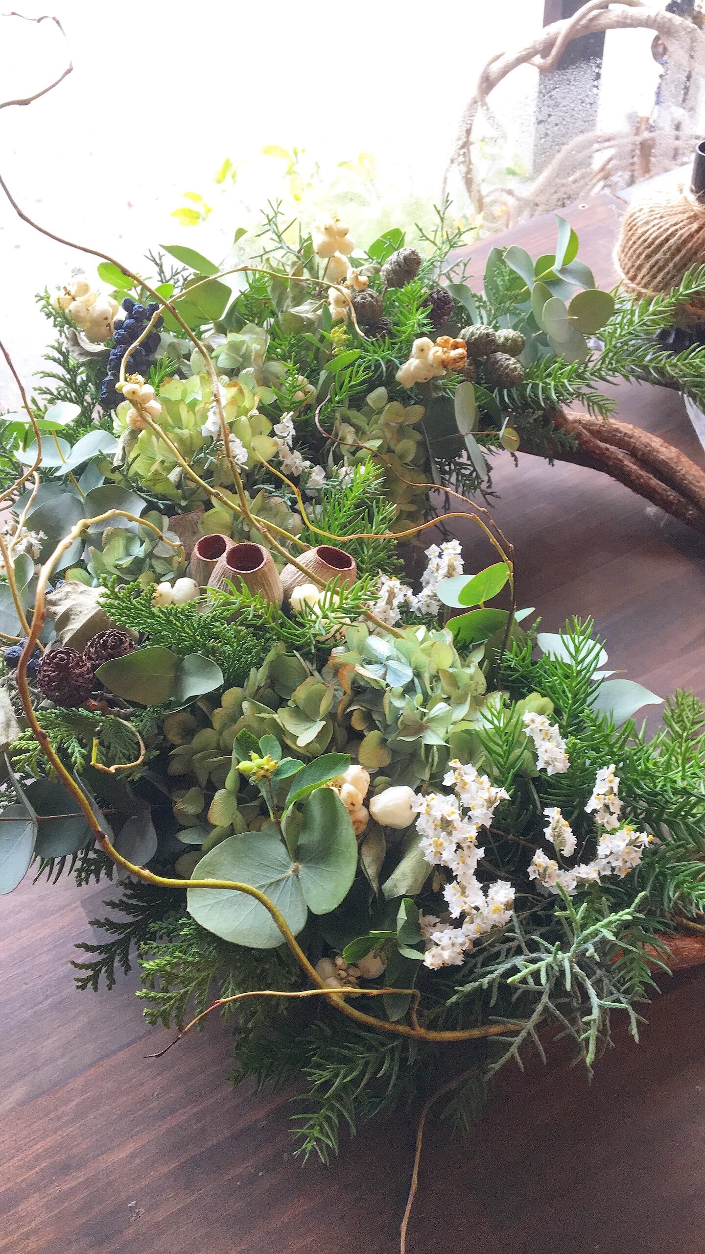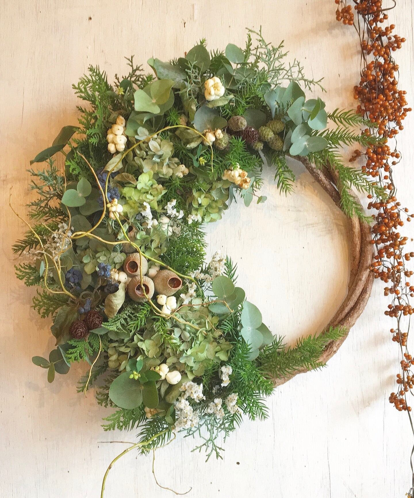 植物の持つ動きがでますのでリースに自然な動きと立体感があります。