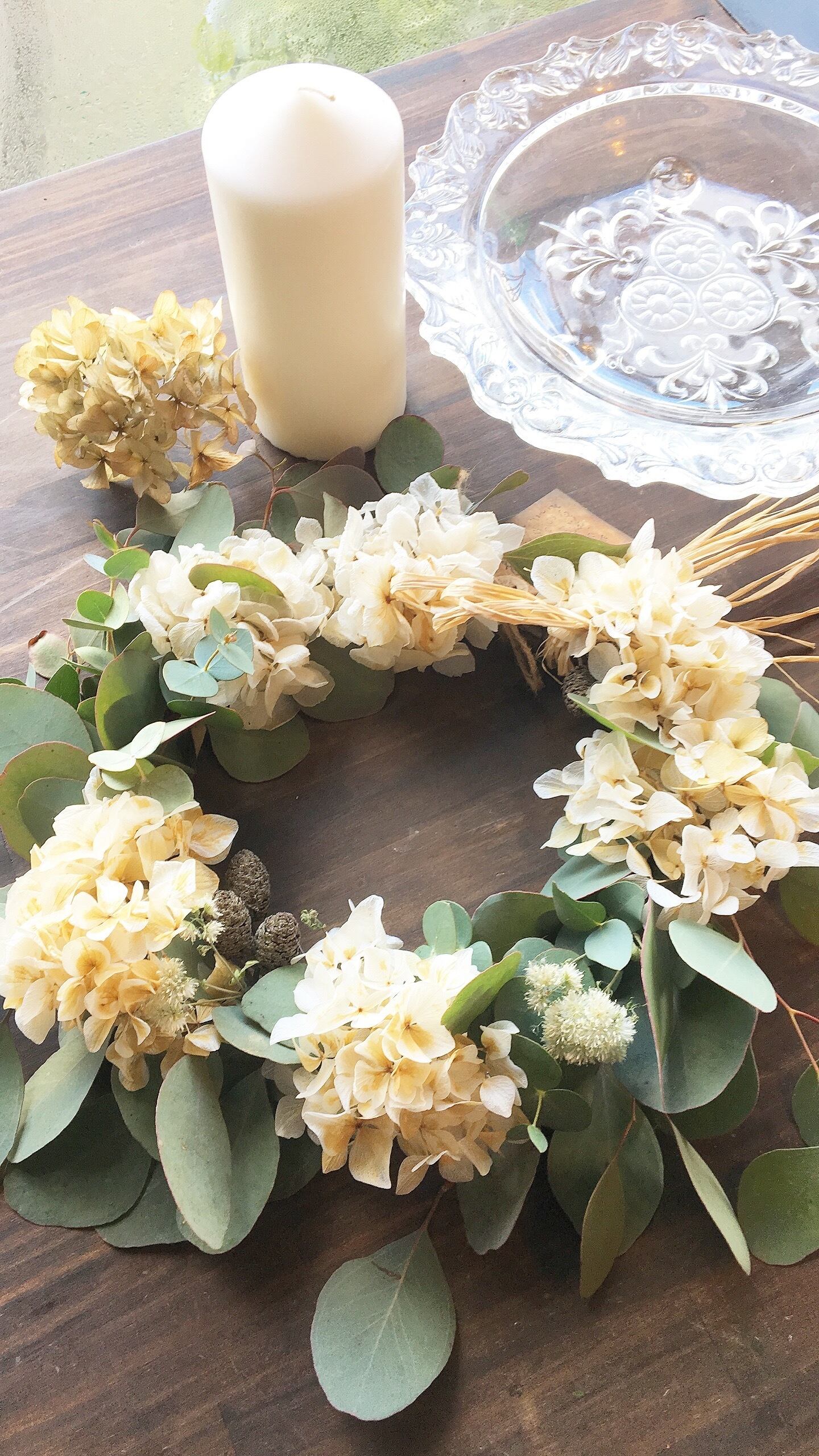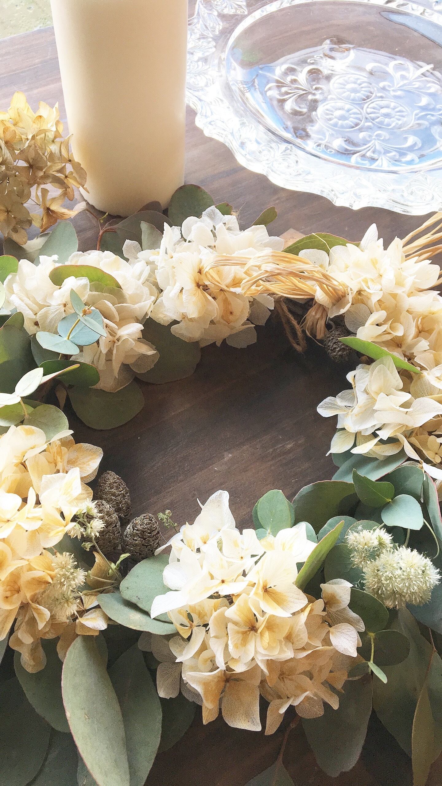 〜ポポラスとホワイトあじさいのアンティークリース〜