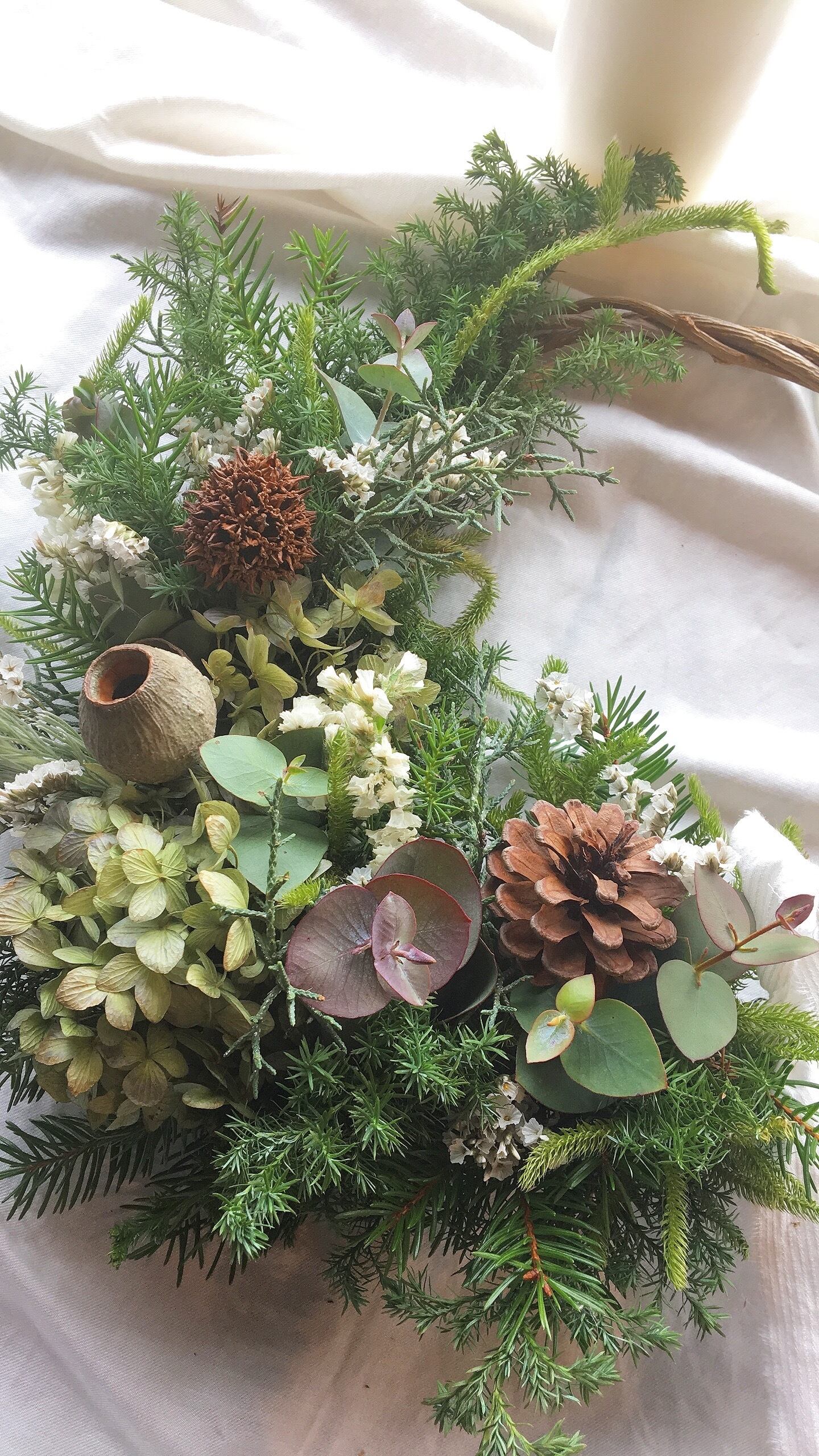 〜清らかなグリーンのクリスマスハーフリース〜○ドライフラワーリース Green Christmas wreath