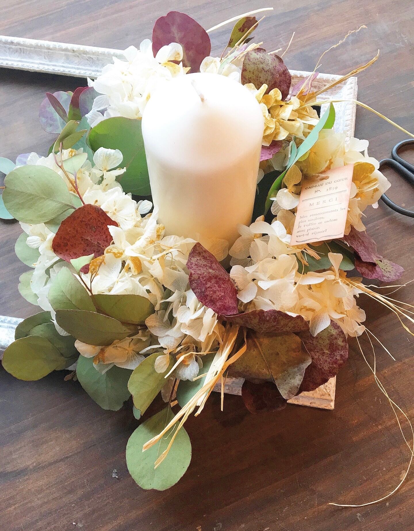 antique〜アンティークあじさいのキャンドルリース○ドライフラワーリース