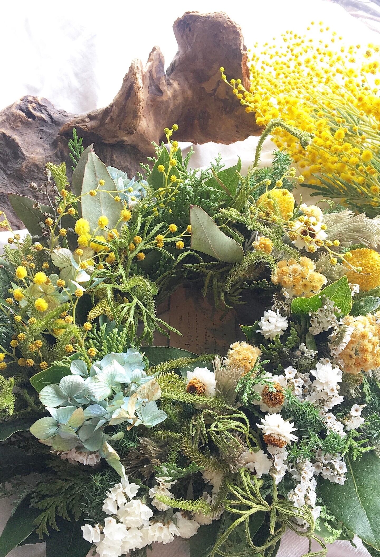 〜春を呼ぶ〜ミモザのナチュラルリース