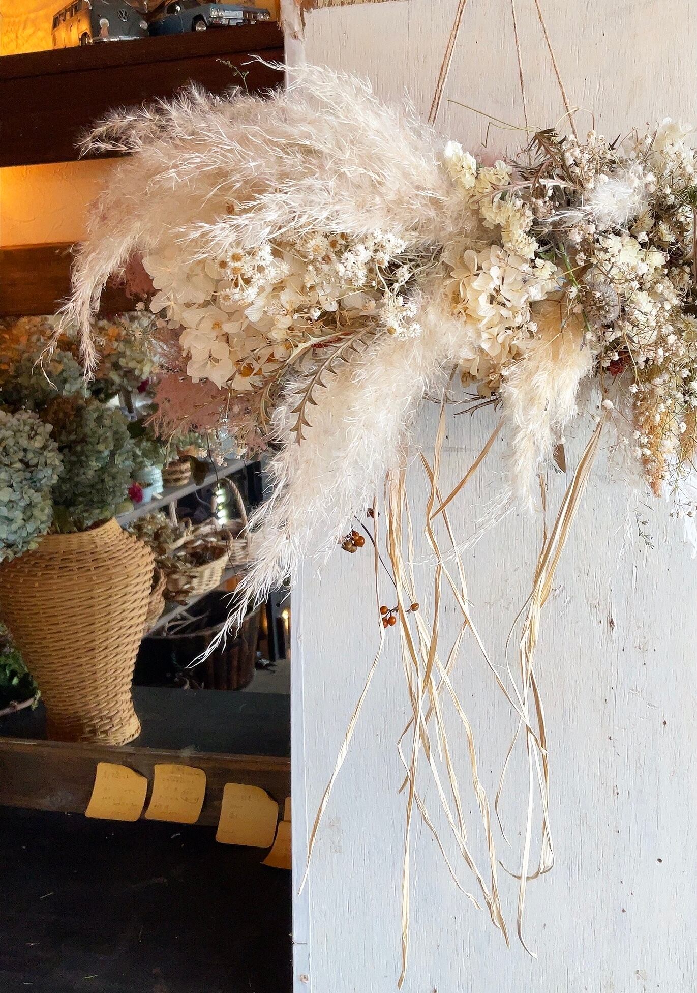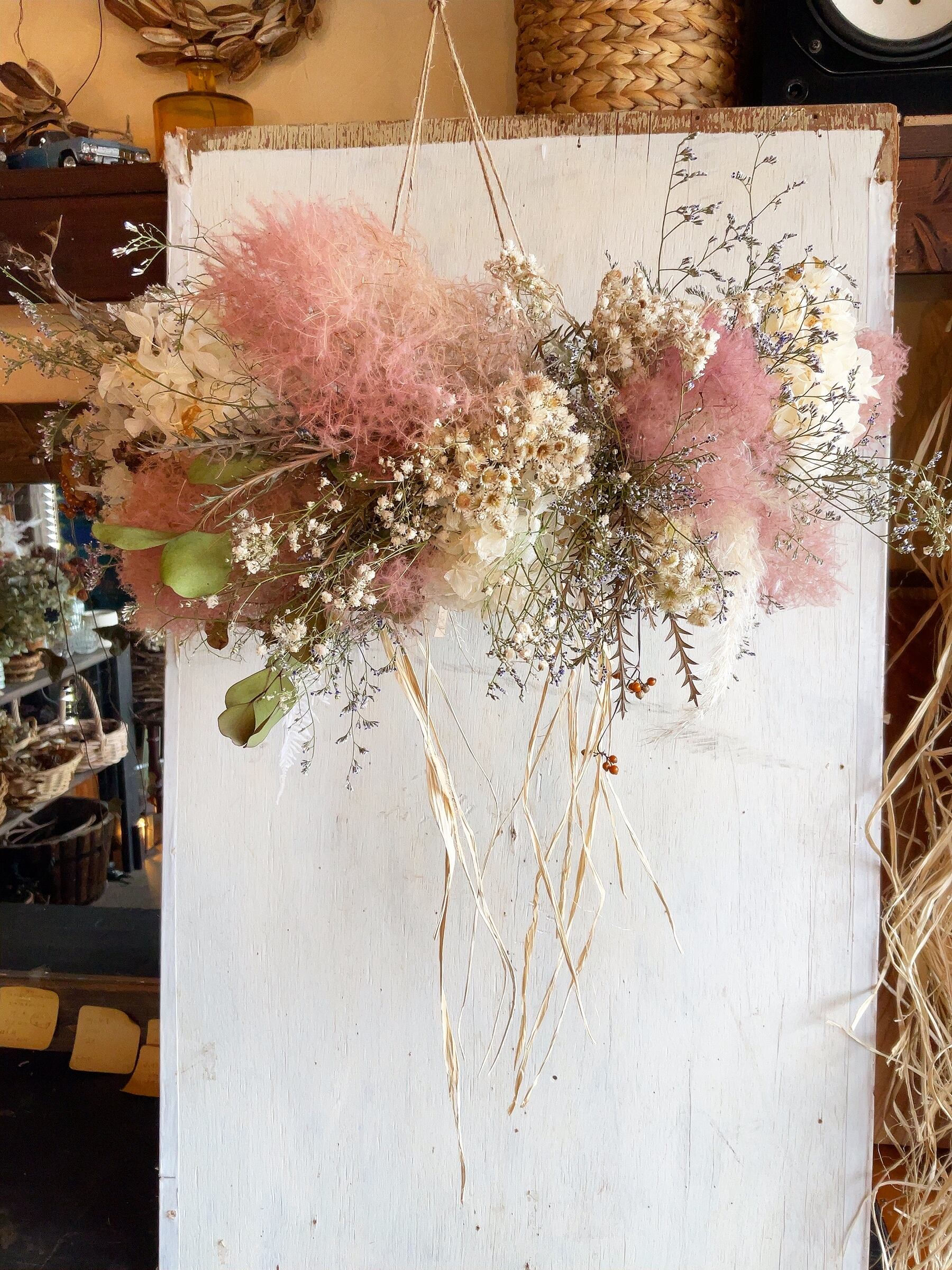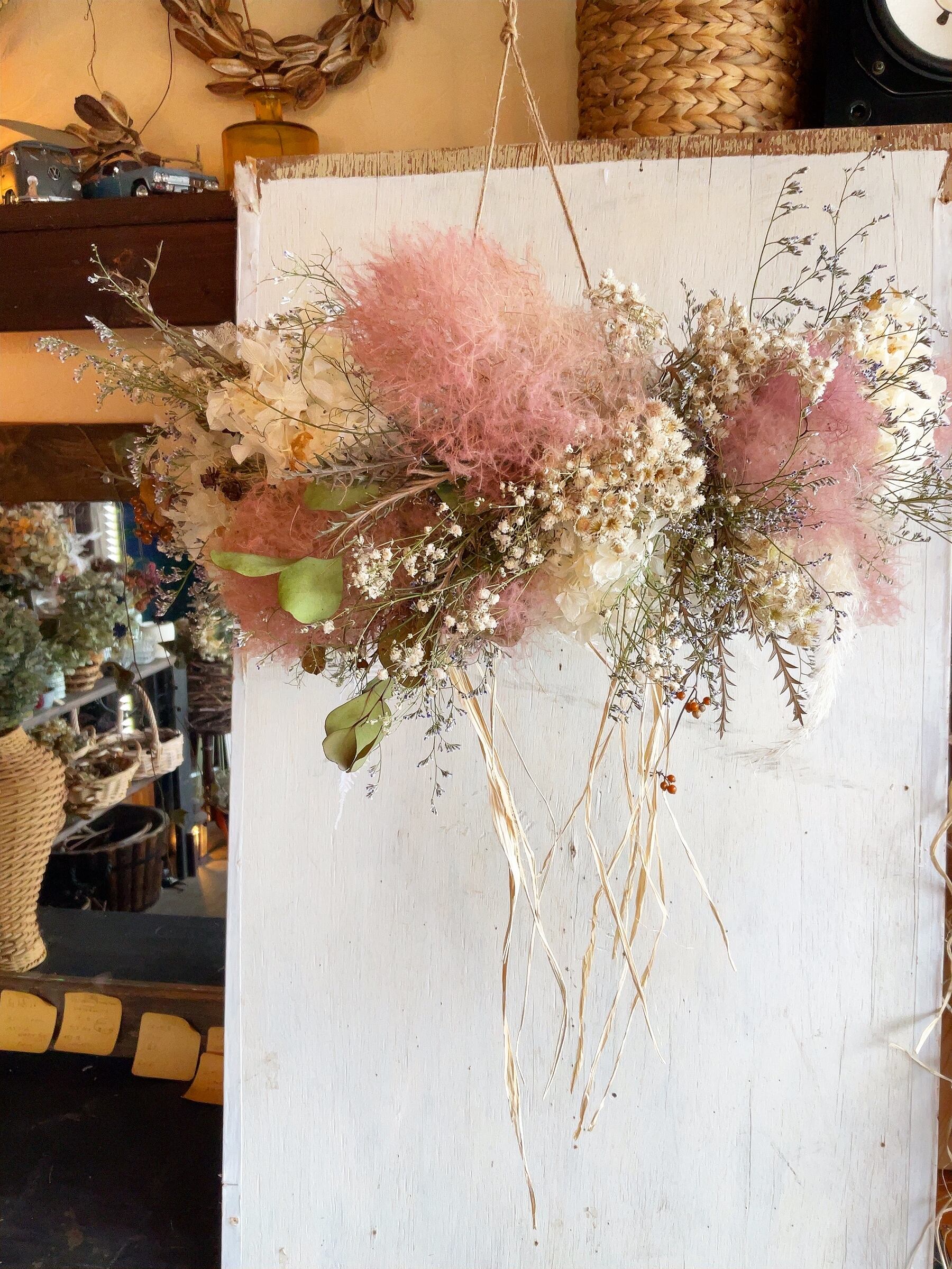 スモークツリー加わるホワイトあじさいのフライングリース