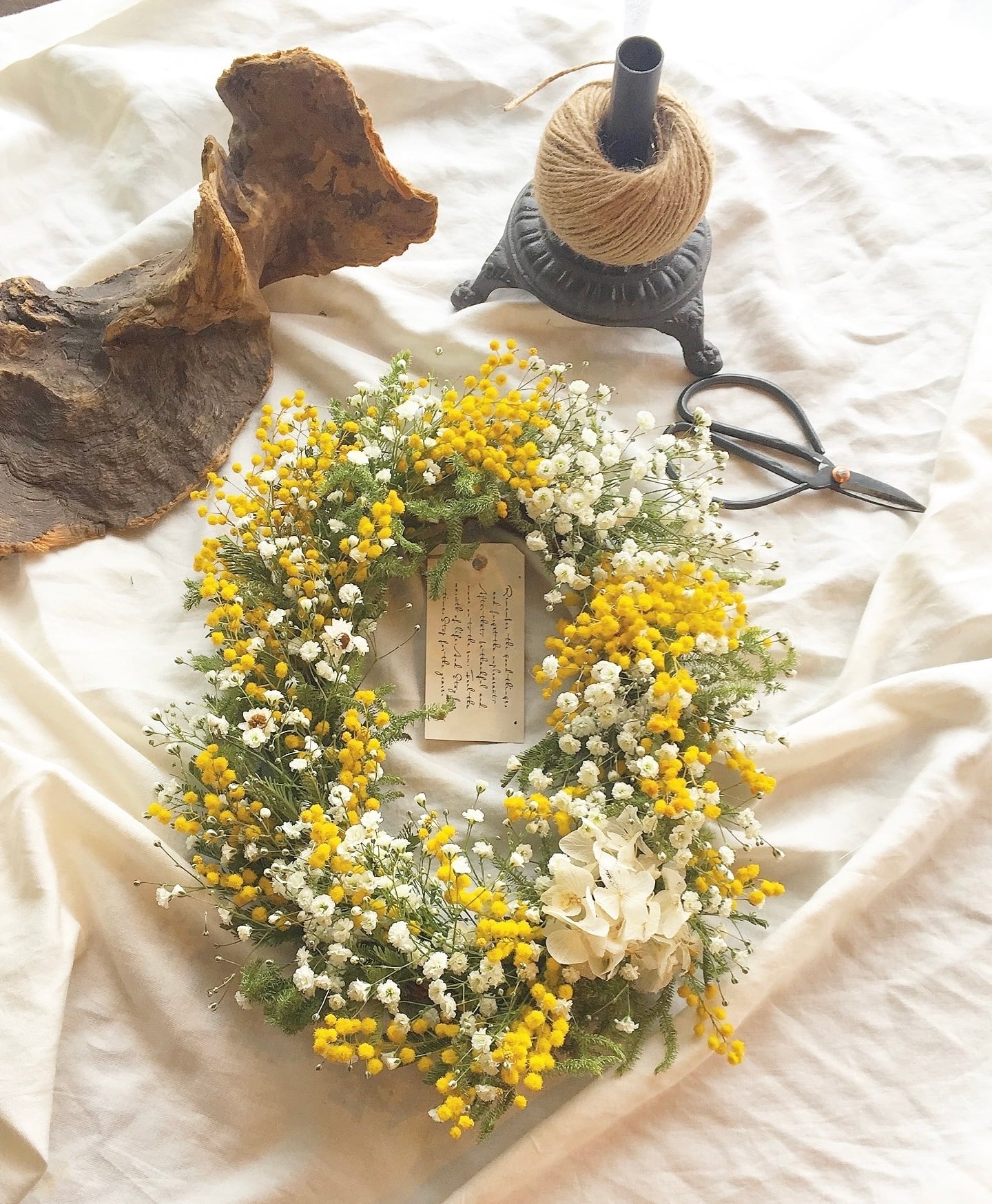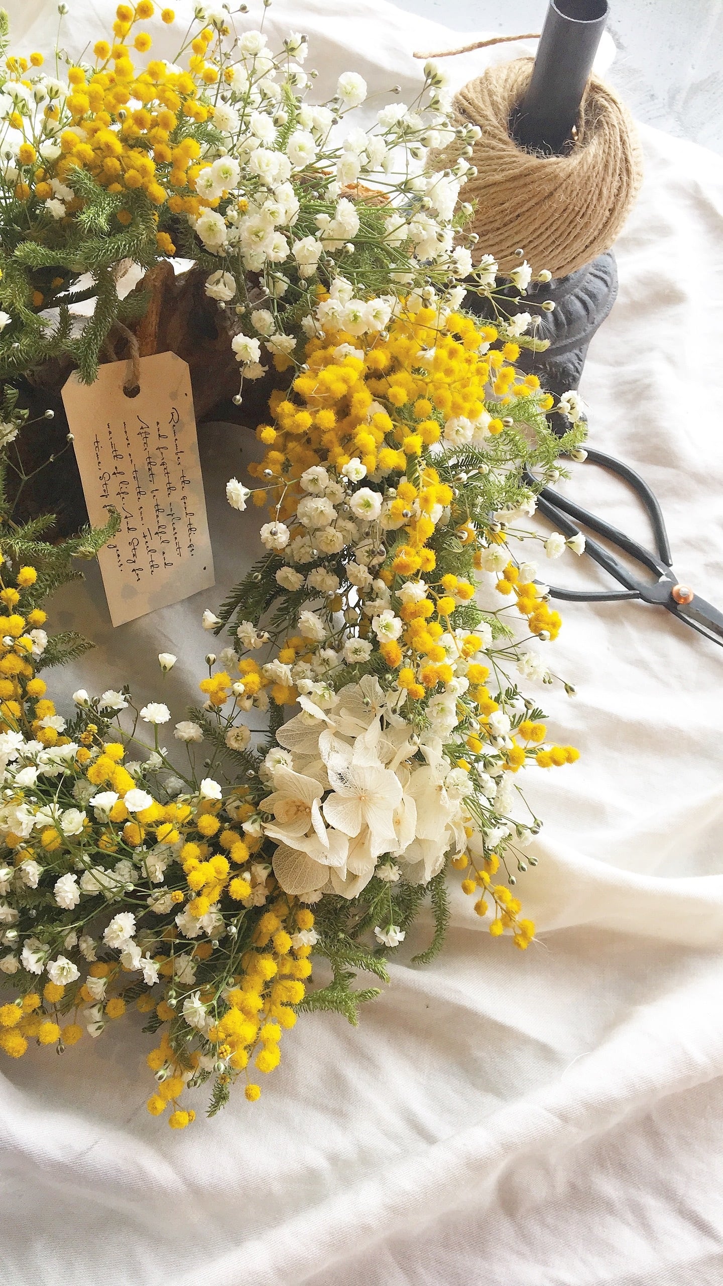 ミモザとかすみ草のオーバルリース〜ドライフラワーリース