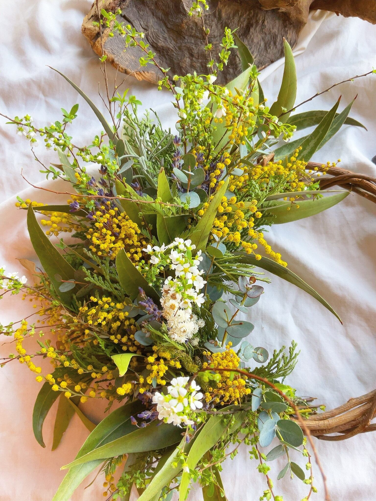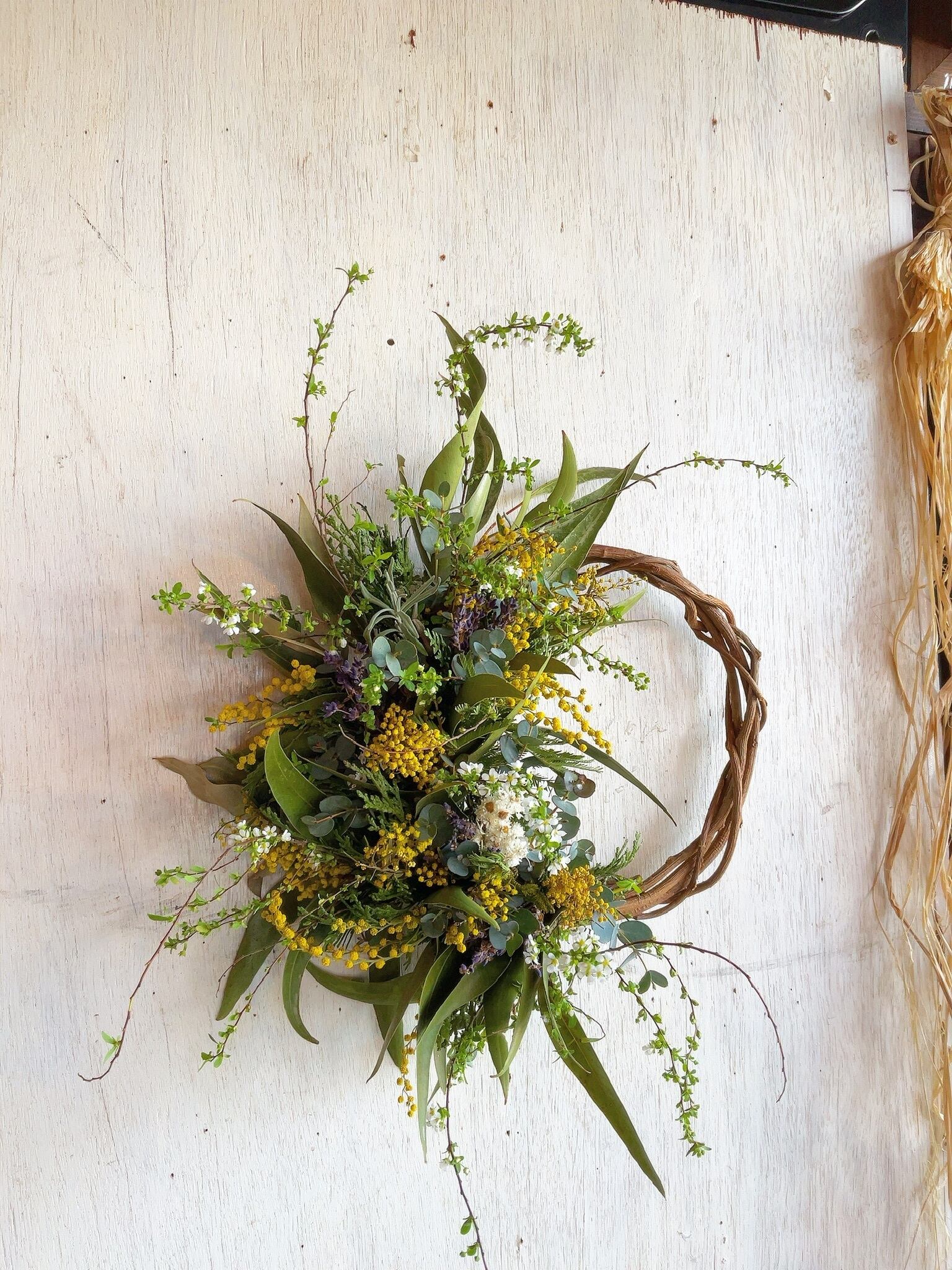 #ドライフラワーリース #かすみ草 #ミモザ #フライングリース #インテリア #北欧 #アンティーク #おうち時間 #カフェ #カフェインテリア #ブライダル #ウエルカムフラワー #ハーフリース #和室リース
