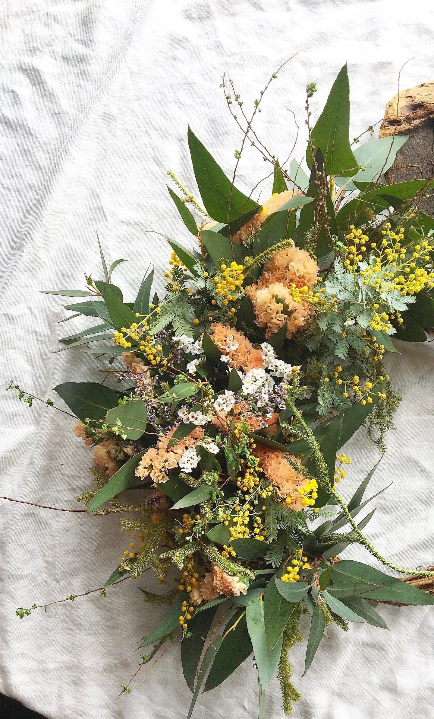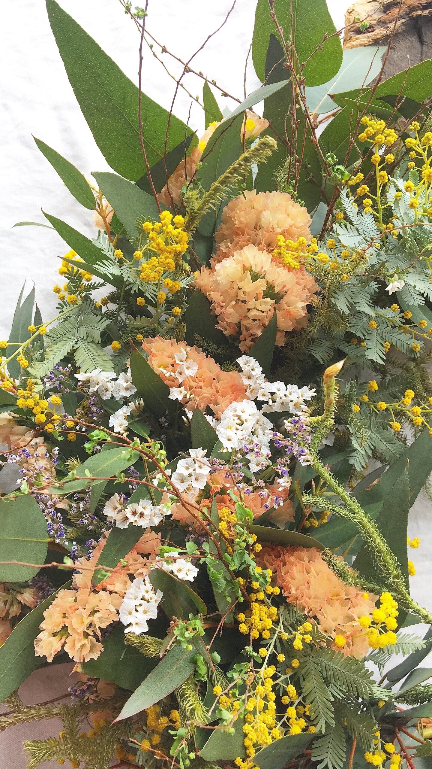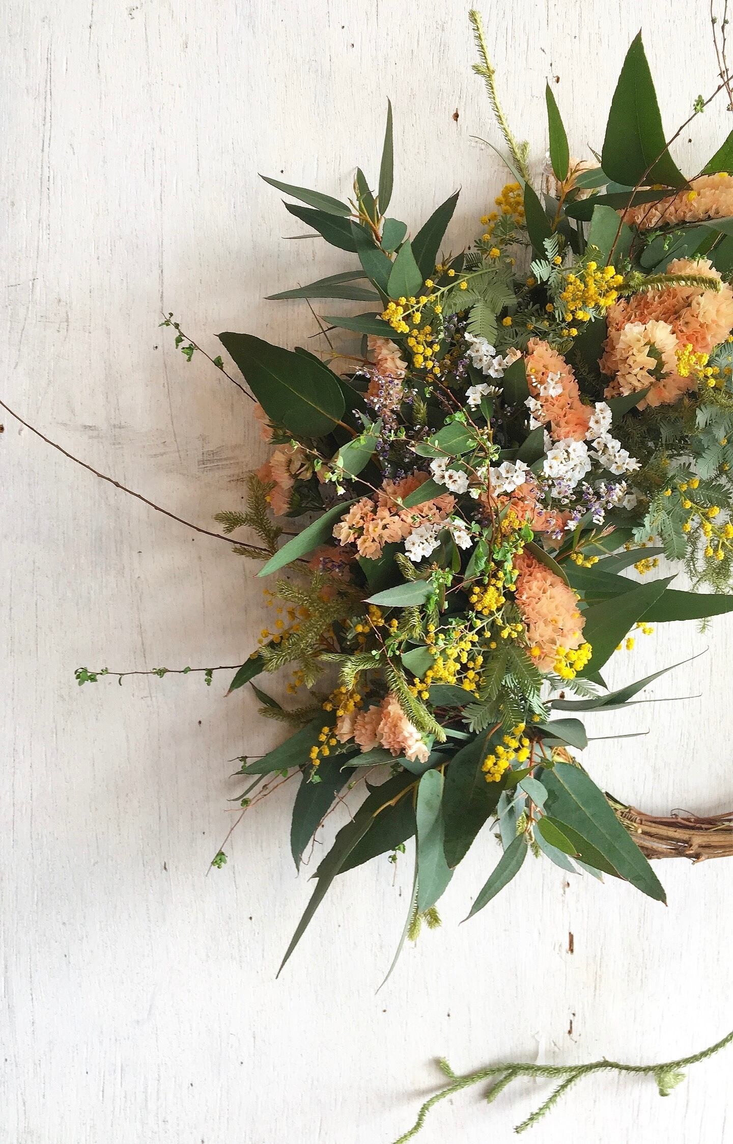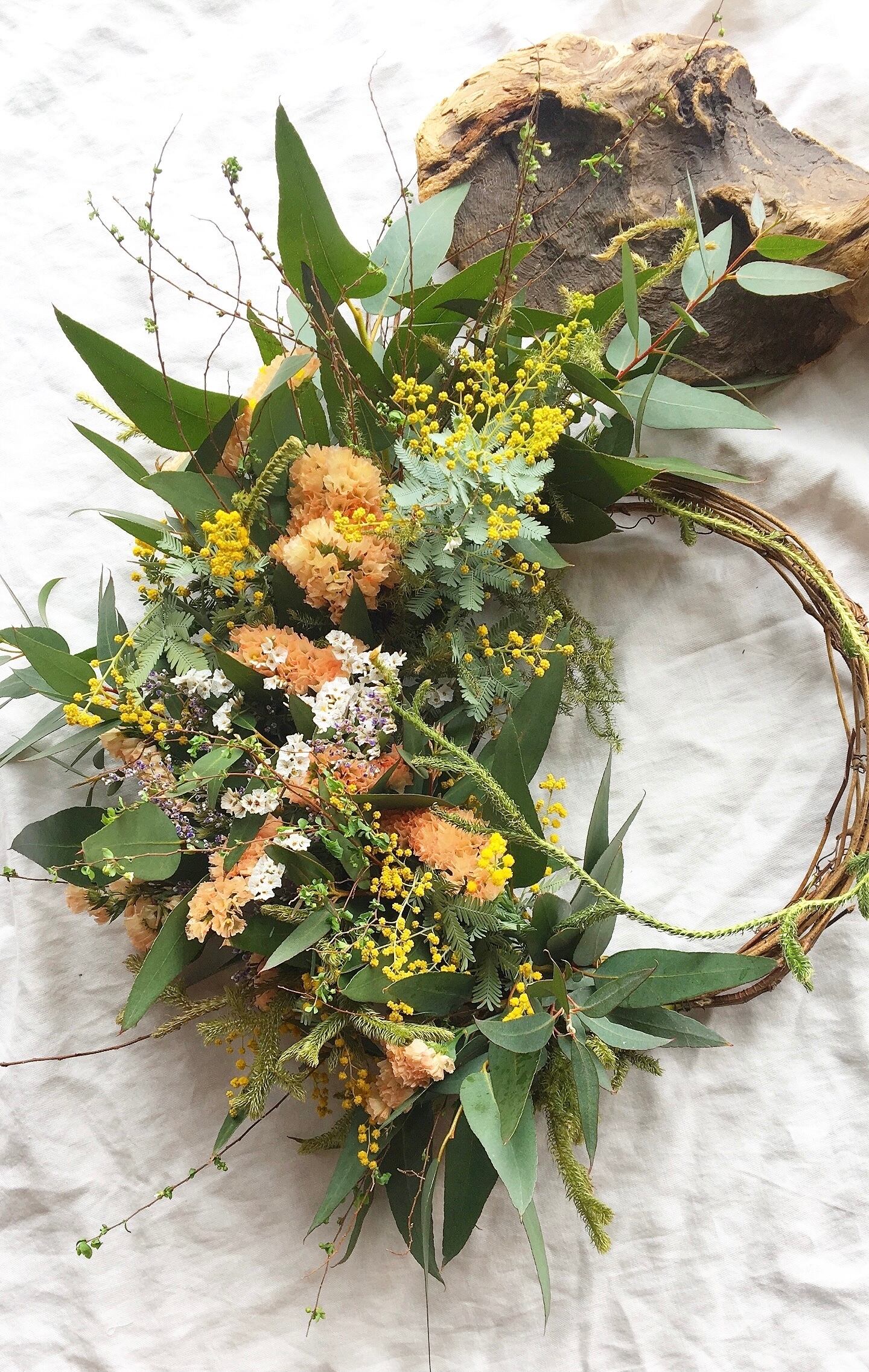 〜春を呼ぶ〜サーモンピンクとミモザの春のリース○ドライフラワーリース