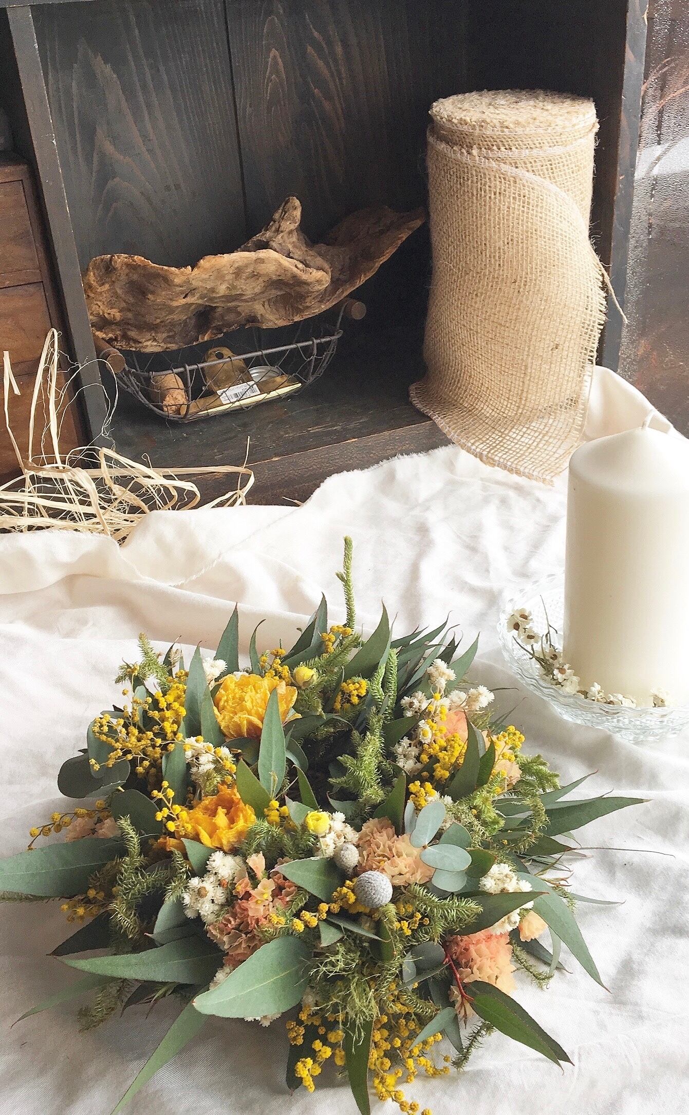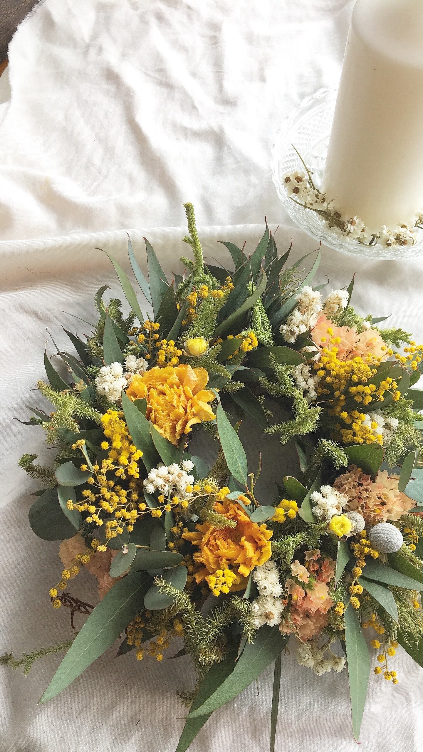 〜スプリングリース〜ミモザとラナンキュラスのリース○ドライフラワーリース