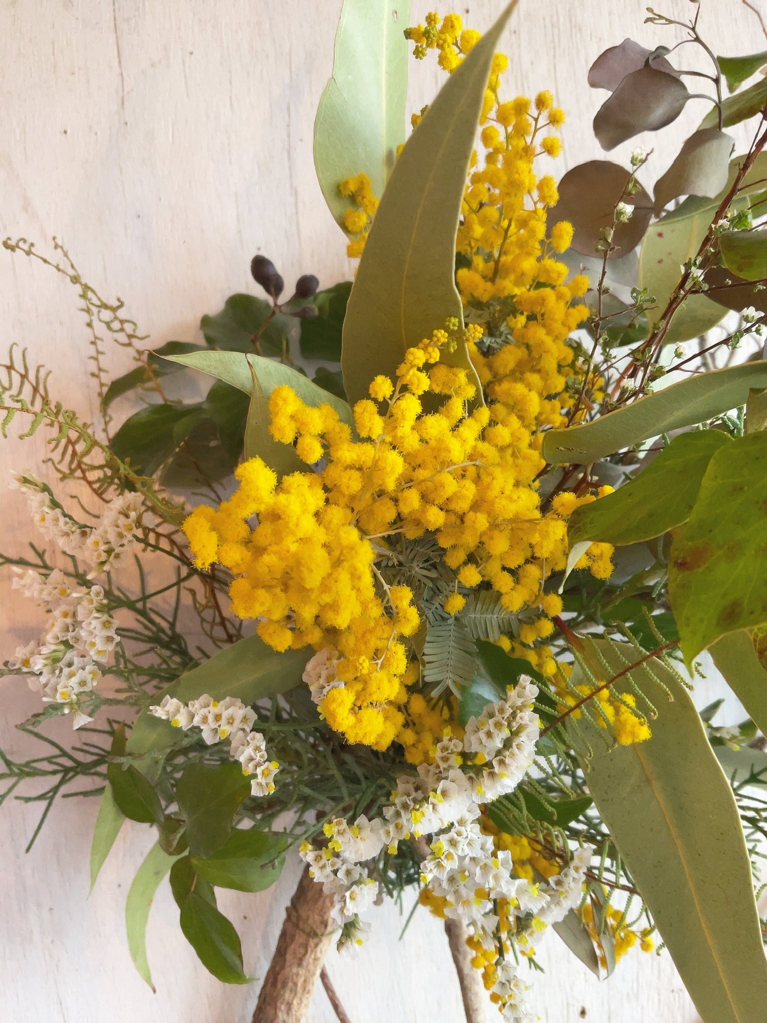 黄金色に輝くミモザの和風ナチュラルスワッグ