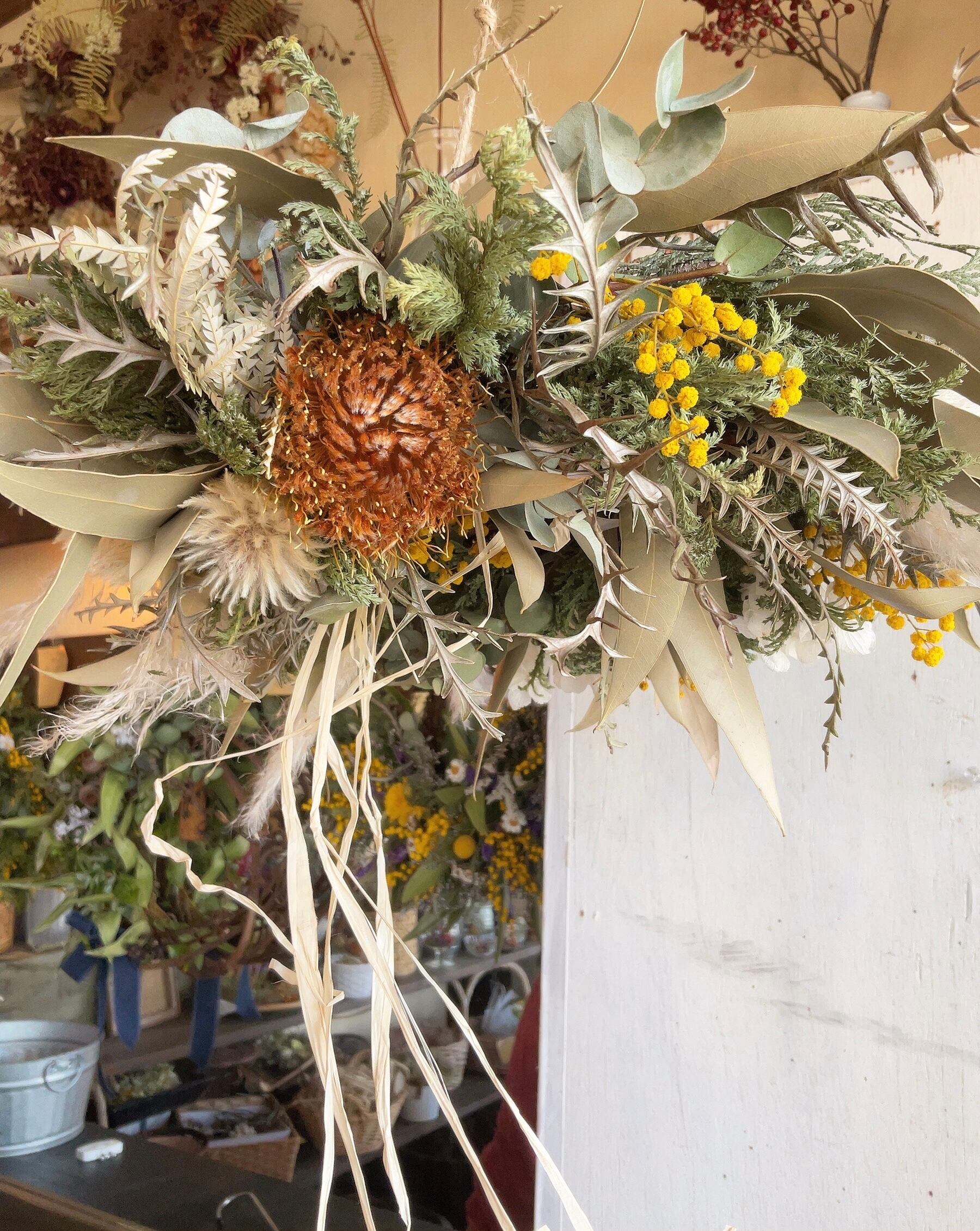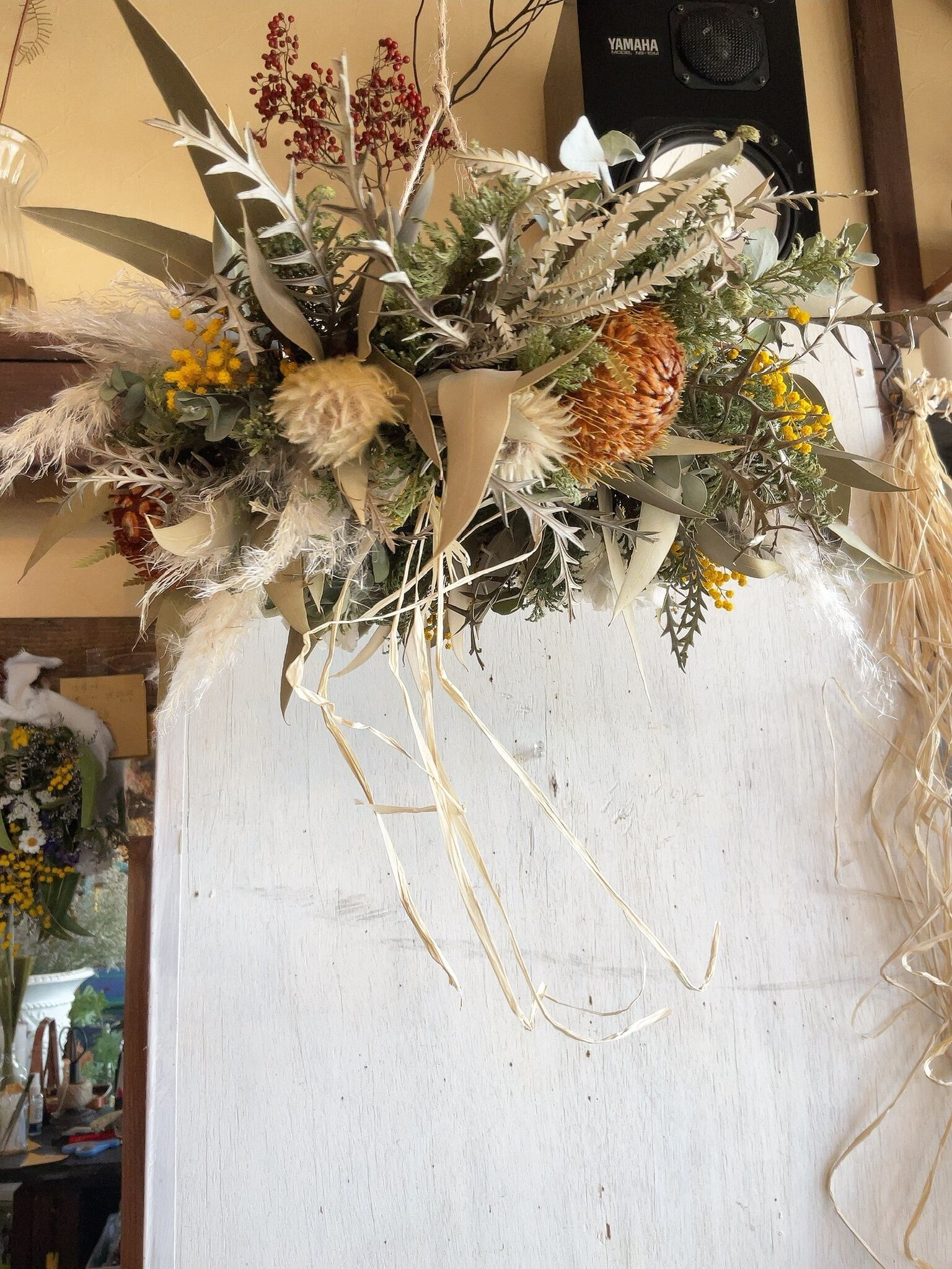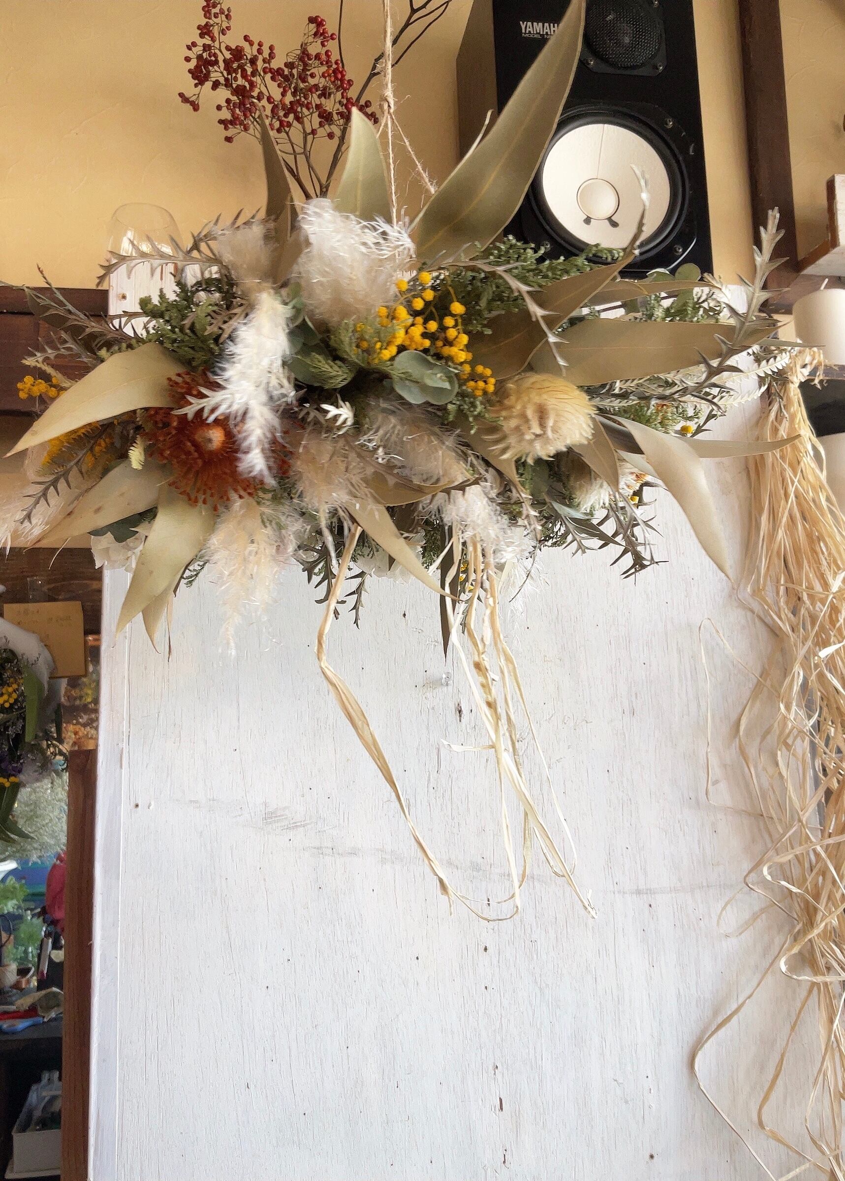 〜ユーカリとドライアンドラパンパスのフライングリース〜○ドライフラワーリース