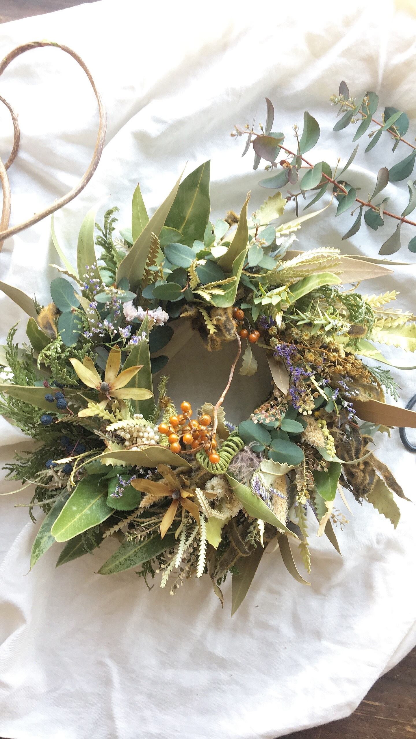 #ドライフラワーリース #フライングリース #インテリア #北欧 #アンティーク #おうち時間 #カフェ #カフェインテリア #ブライダル #ウエルカムフラワー