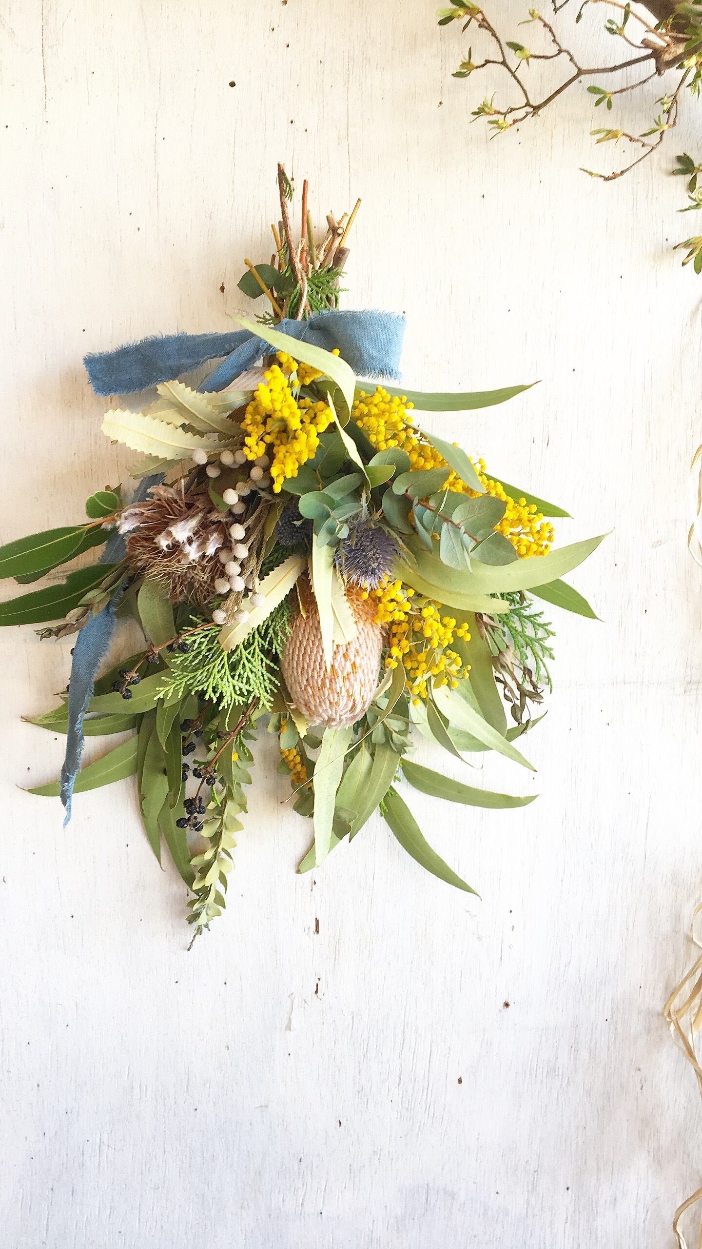 〜バンクシャーとミモザのスワッグ〜○ドライフラワースワッグ