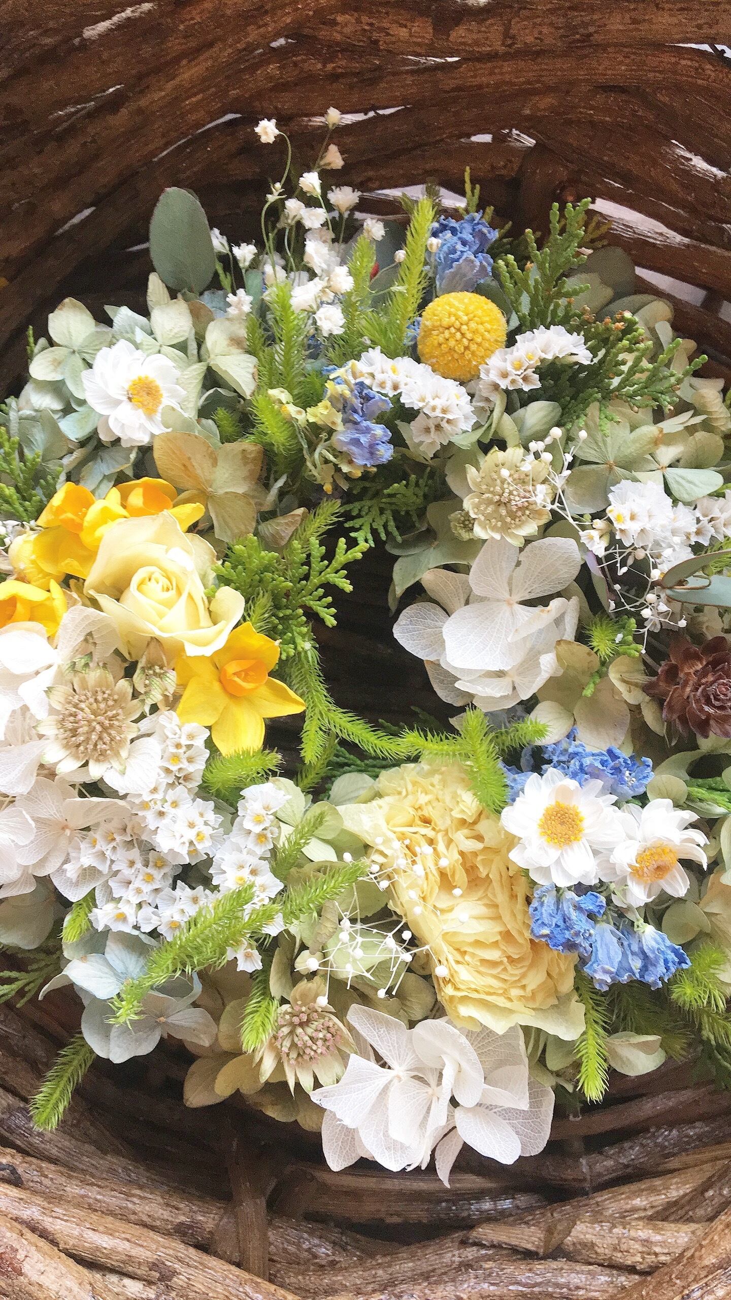 #ドライフラワーリース #フライングリース #インテリア #北欧 #アンティーク #おうち時間 #カフェ #カフェインテリア #ブライダル #ウエルカムフラワー