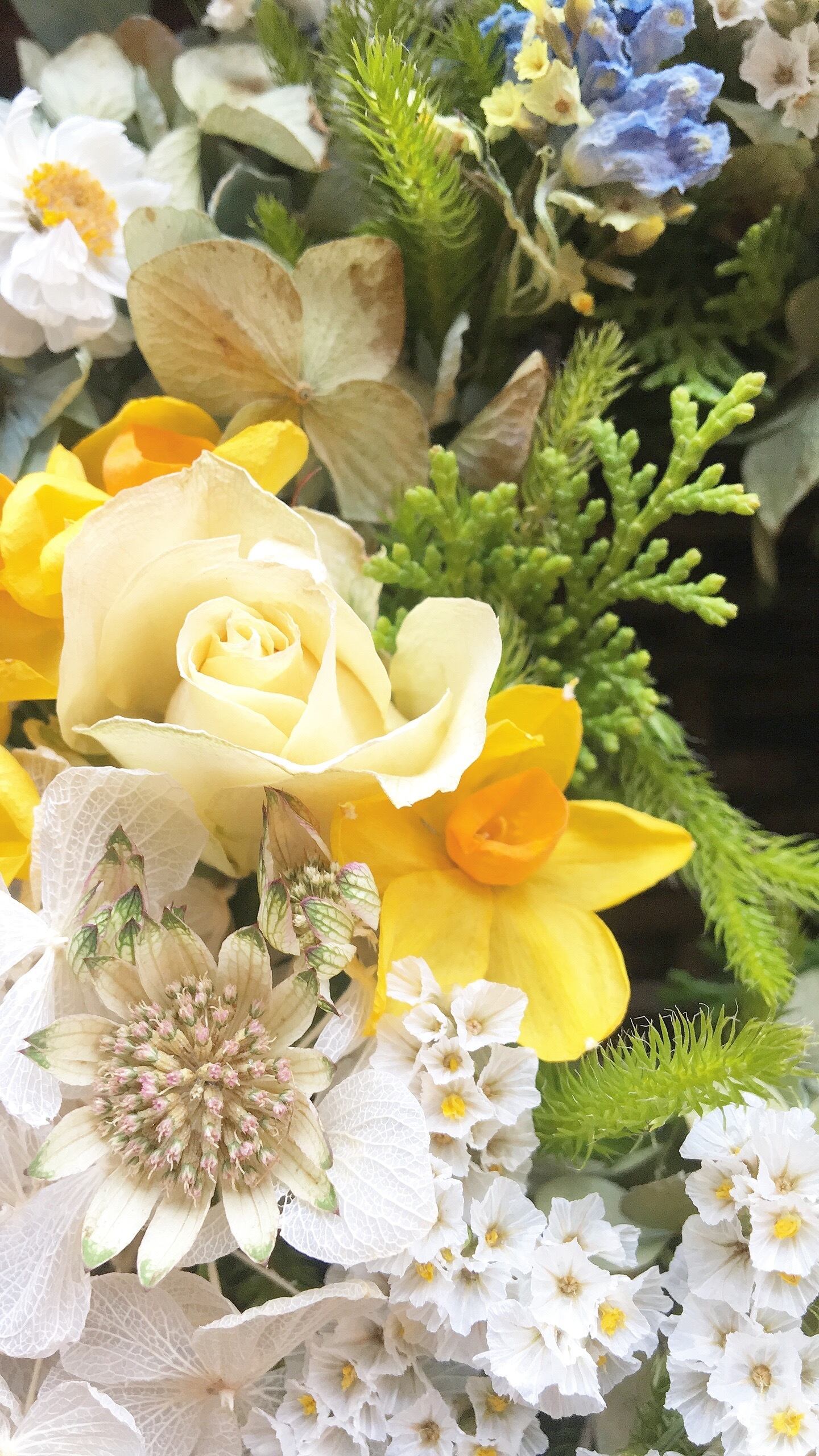 季節や珍しい花材を使用しており、一つ一つ手作業でのドライアップです。