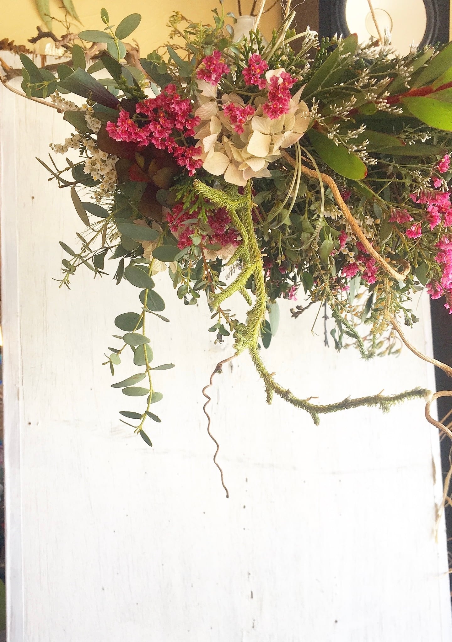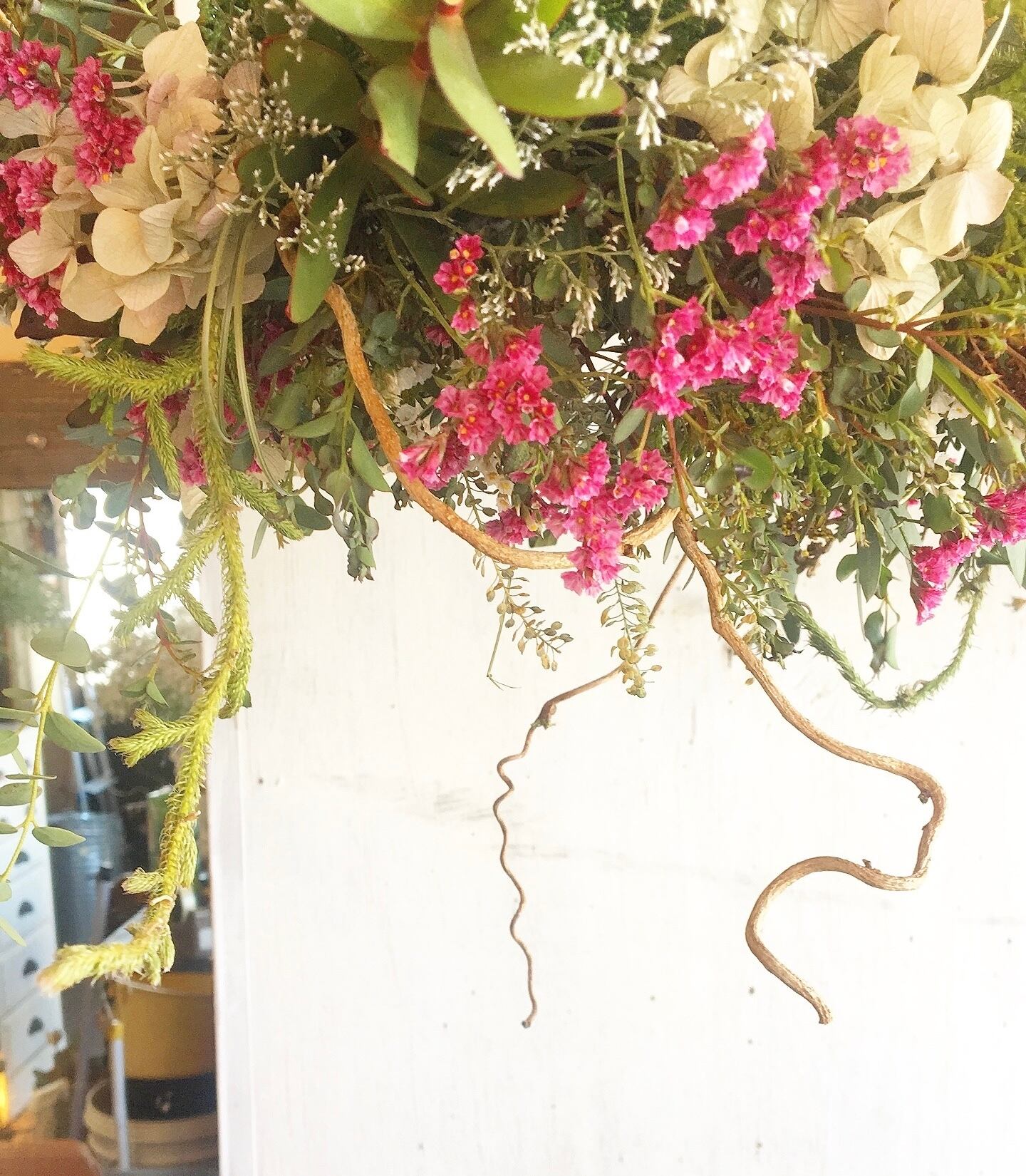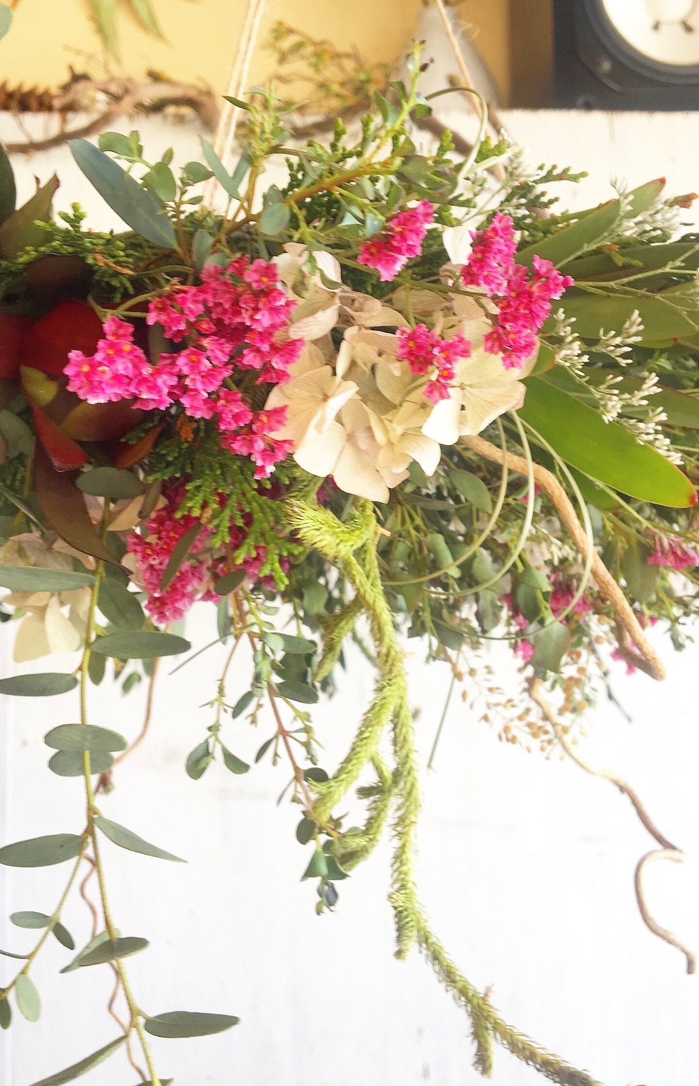 #ドライフラワーリース #フライングリース #インテリア #北欧 #アンティーク #おうち時間 #カフェ #カフェインテリア #ブライダル #ウエルカムフラワー
