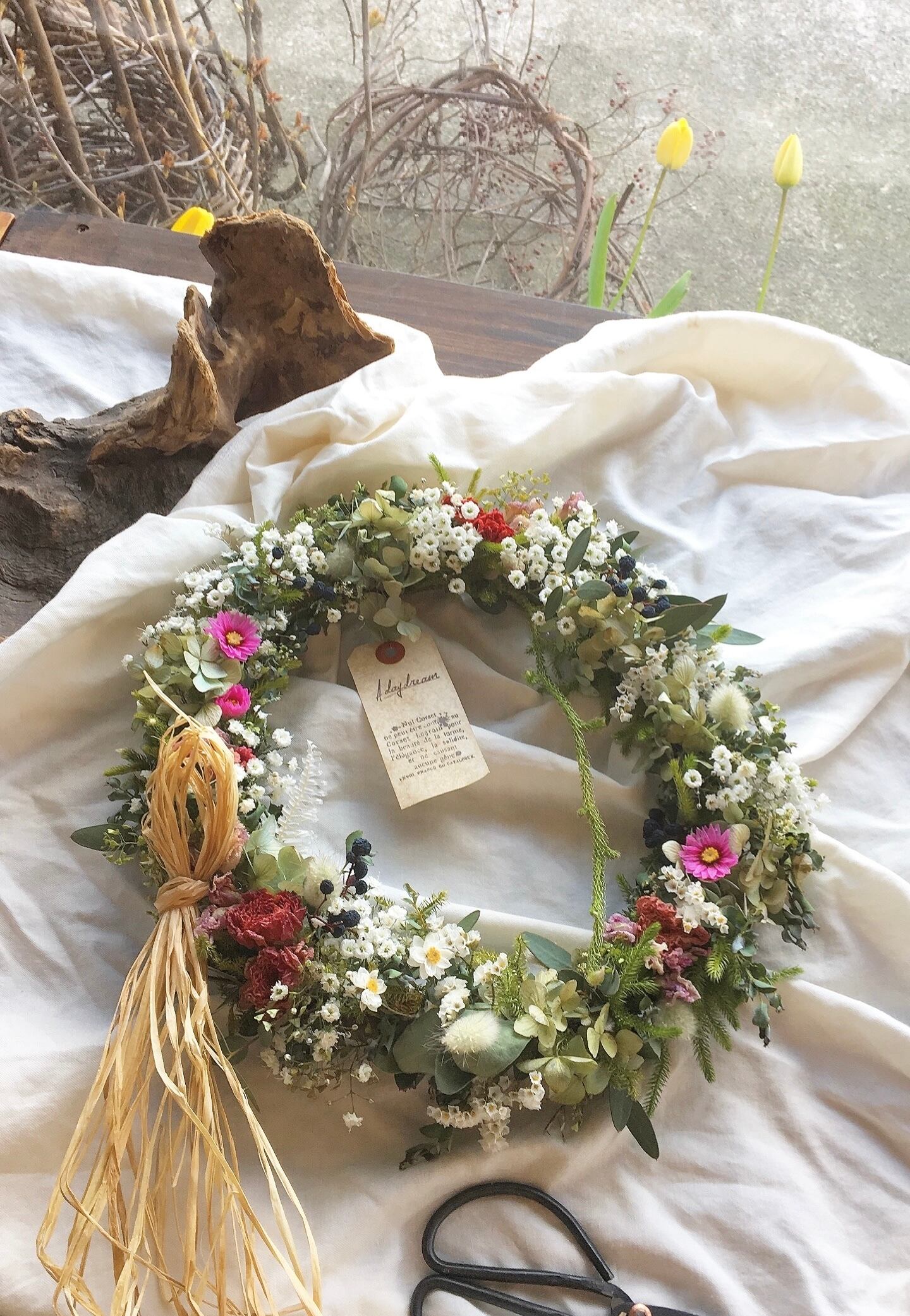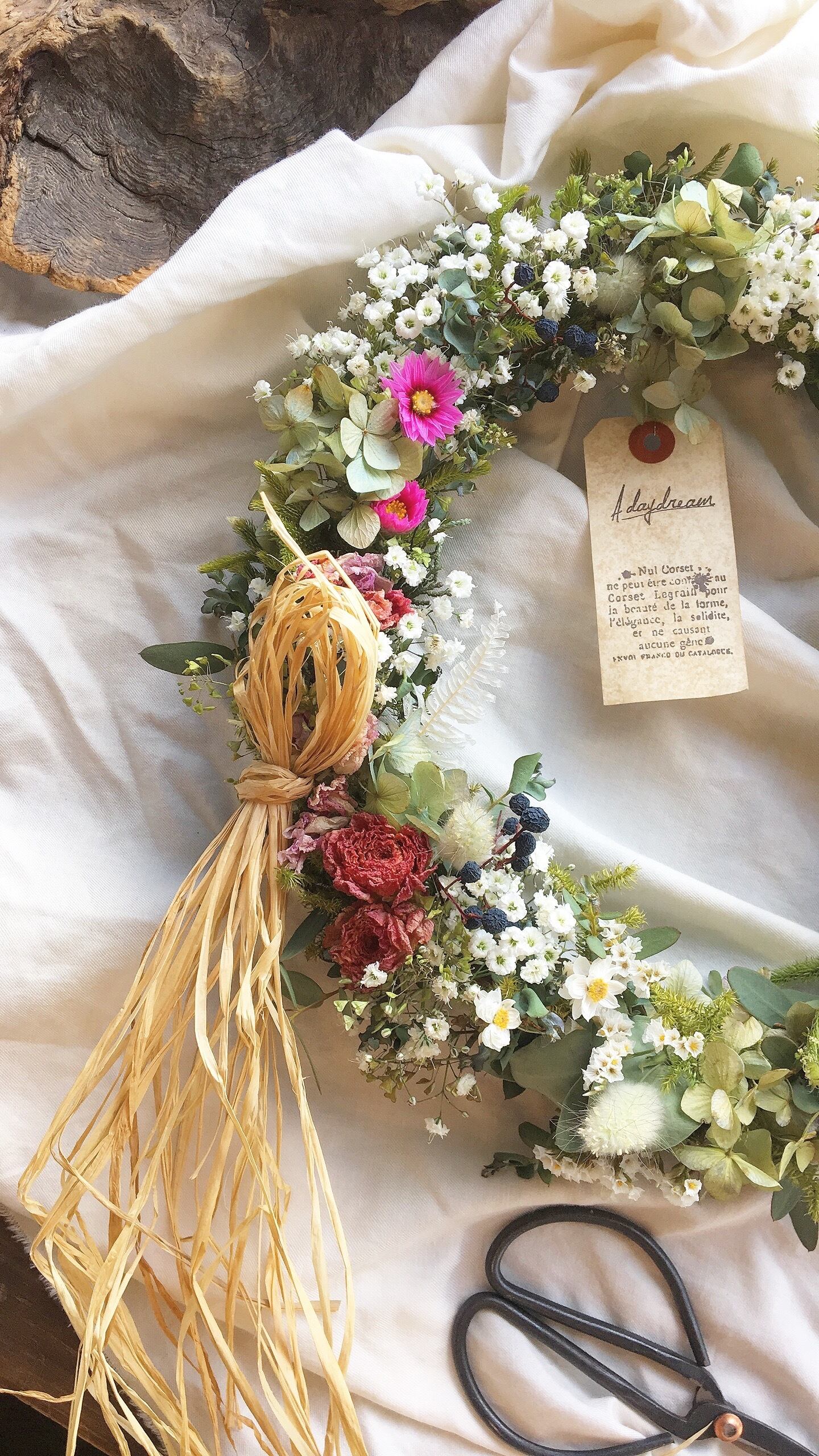 #ドライフラワーリース #フライングリース #インテリア #北欧 #アンティーク #おうち時間 #カフェ #カフェインテリア #ブライダル #ウエルカムフラワー