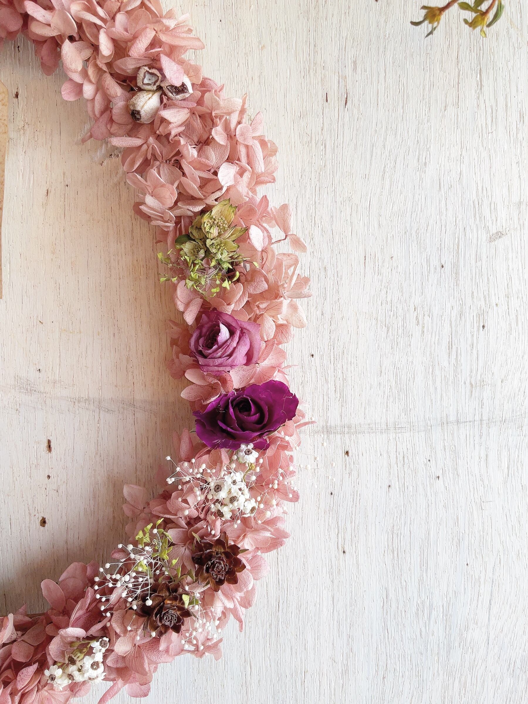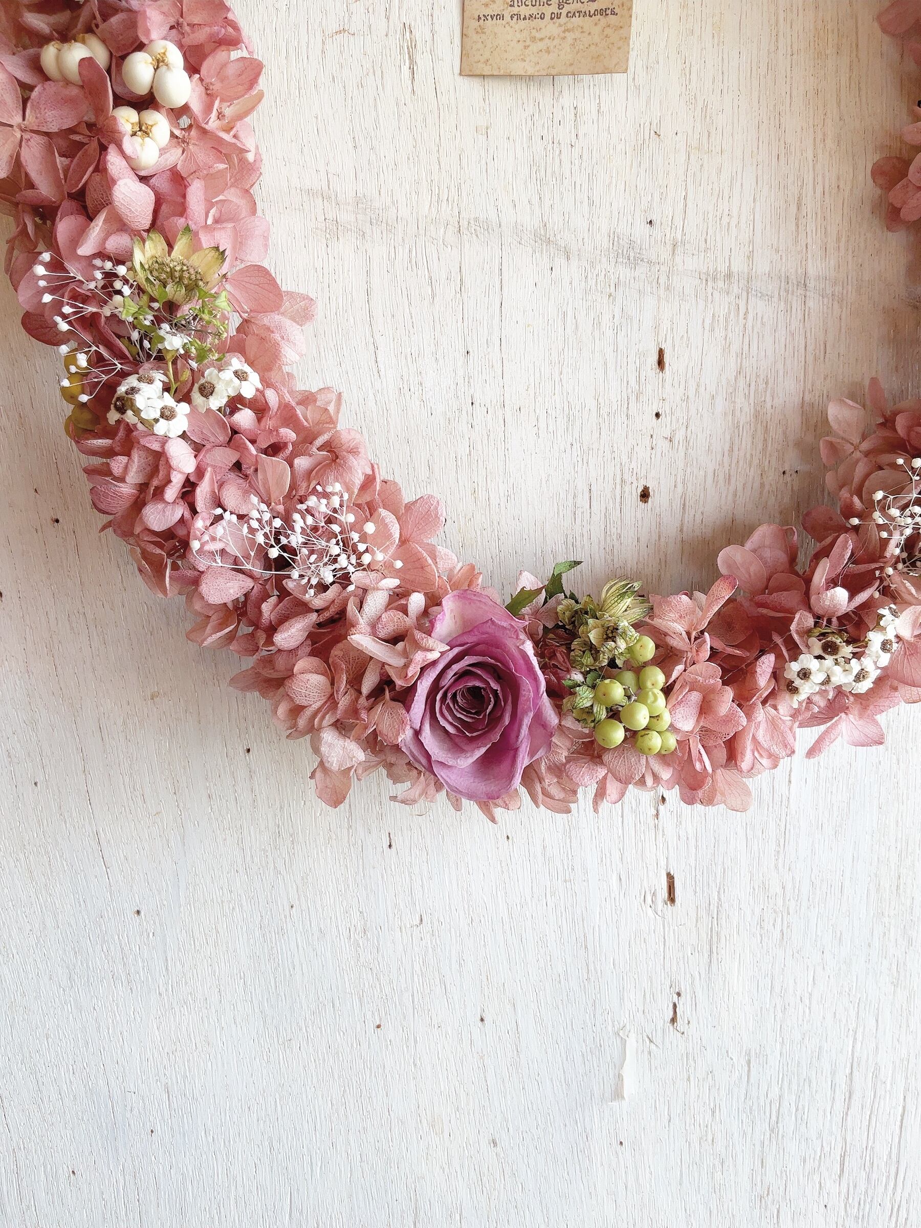 〜スモーキーピンクとローズのオーバルリース〜○ドライフラワーリース