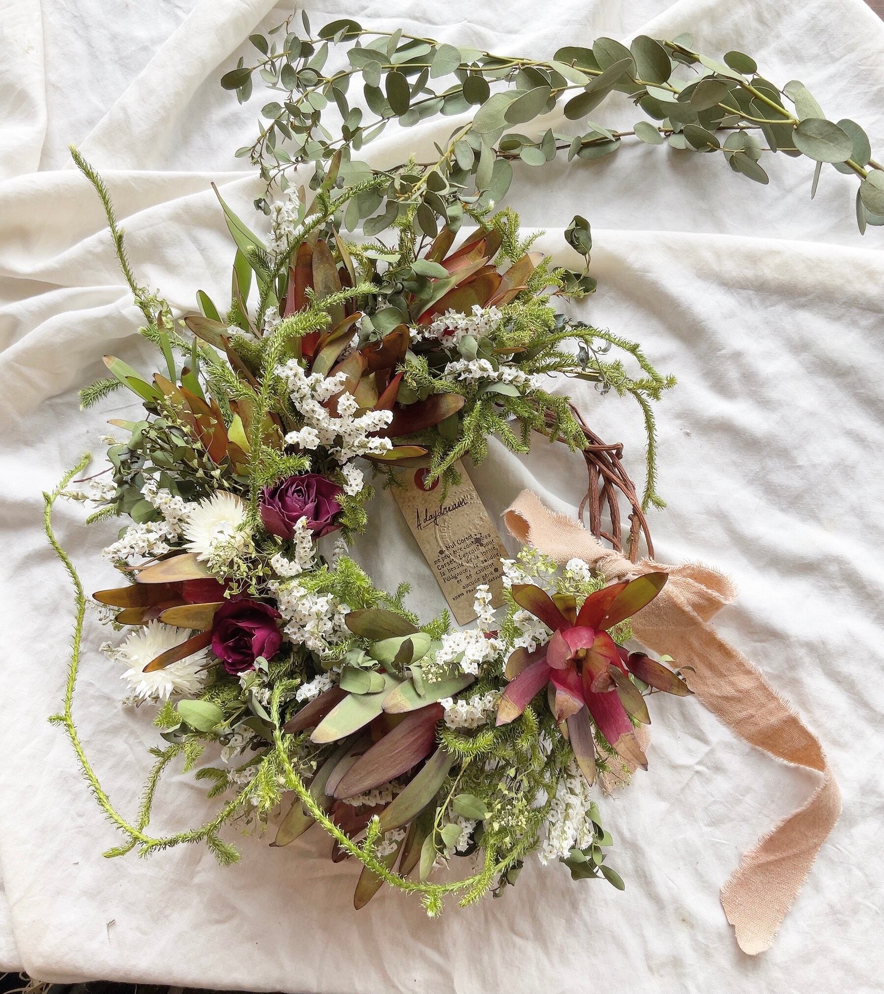 〜ワイルドフラワーのちょっと大人な動きあるハーフリース〜ドライフラワーリース