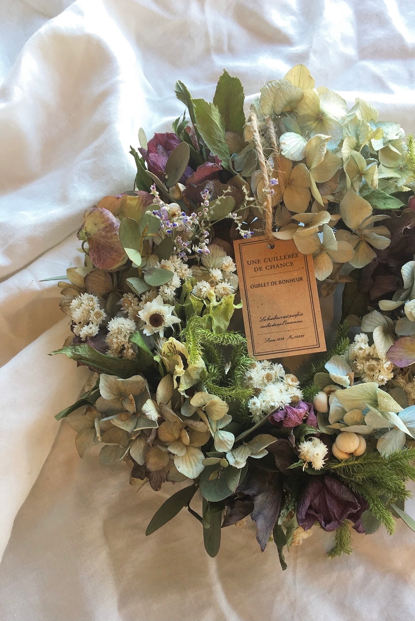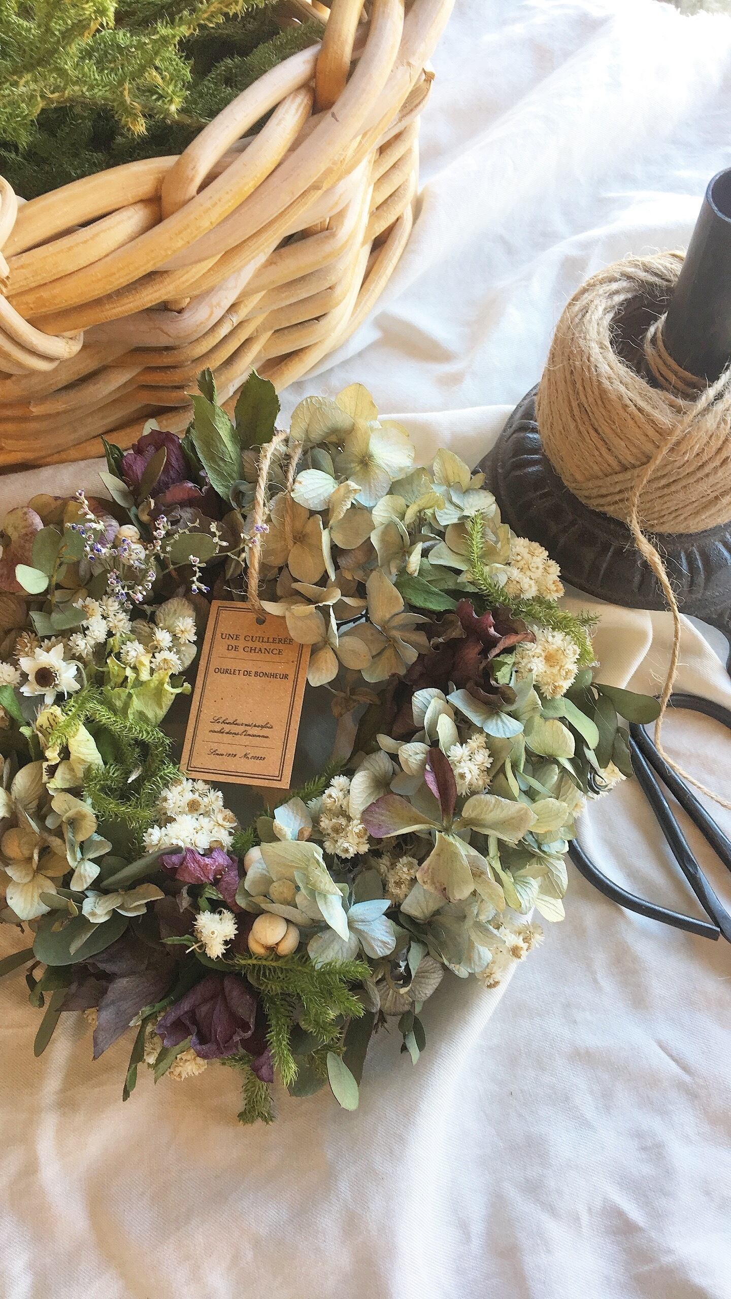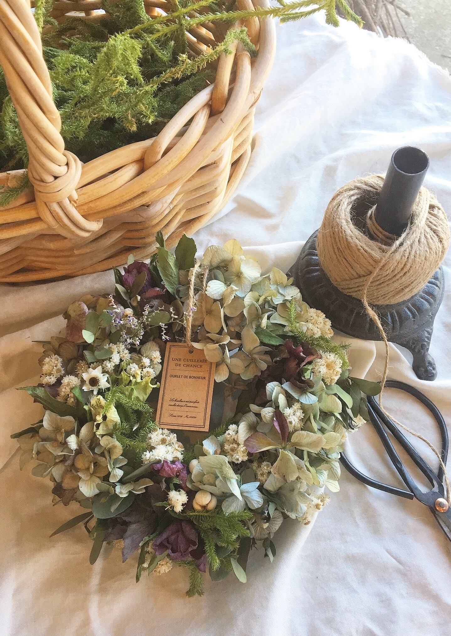 アンティークあじさいとクリスマスローズのナチュラルリース〜○ドライフラワーリース