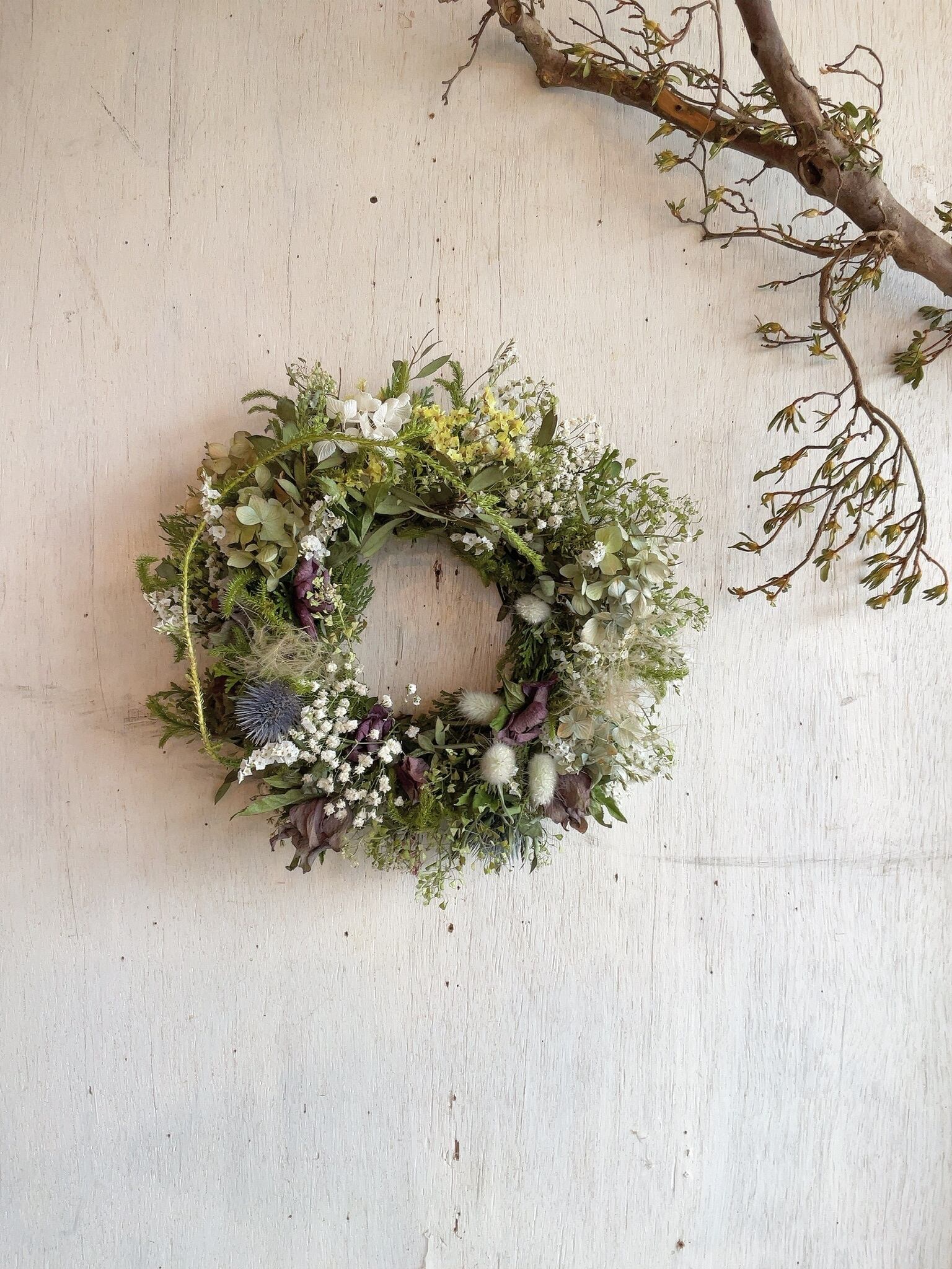 #ドライフラワーリース #フライングリース #インテリア #北欧 #アンティーク #おうち時間 #カフェ #カフェインテリア #ブライダル #ウエルカムフラワー