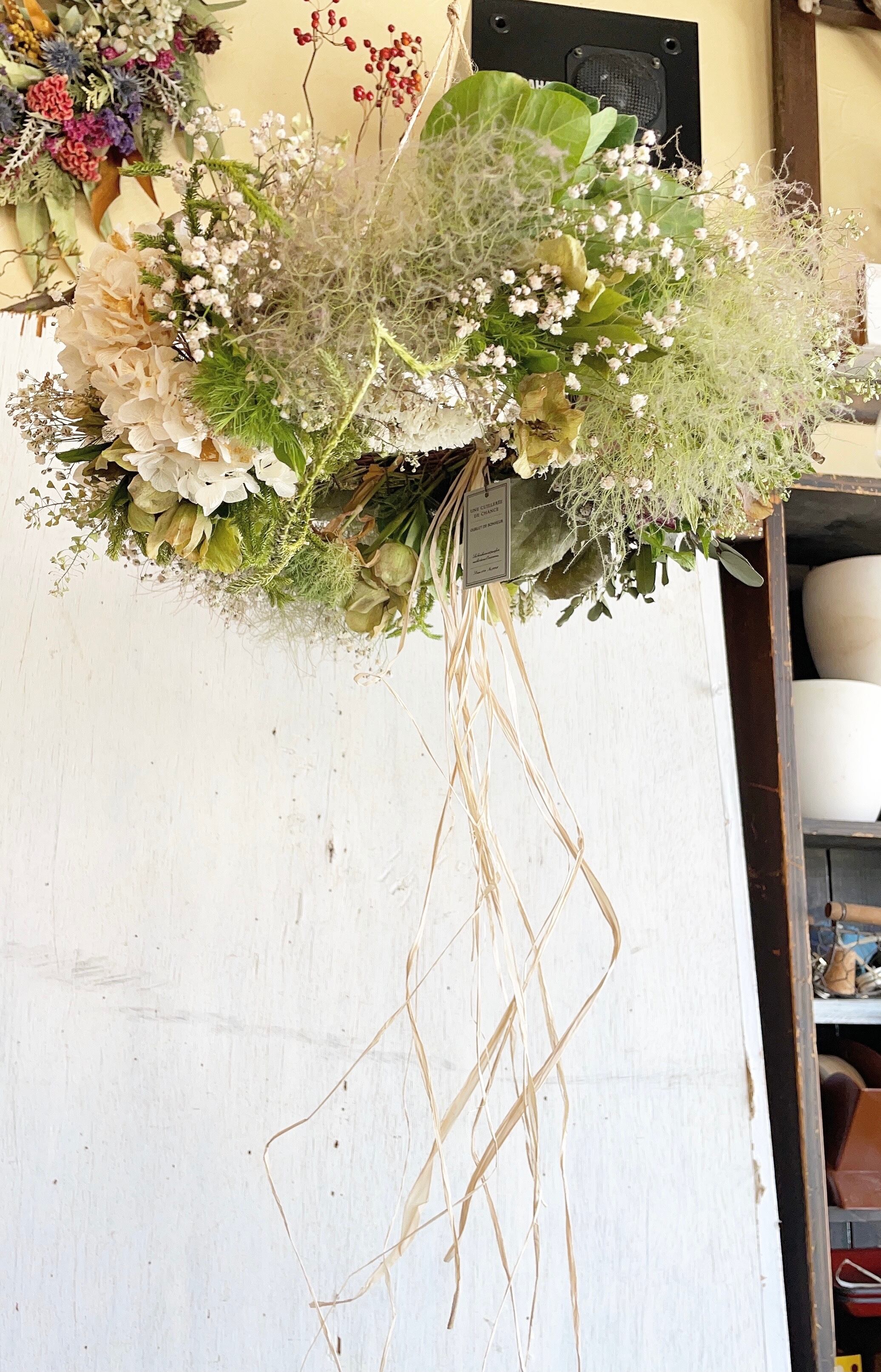 〜スモークツリーとかすみ草のアンティークフライングリース〜ドライフラワーリース