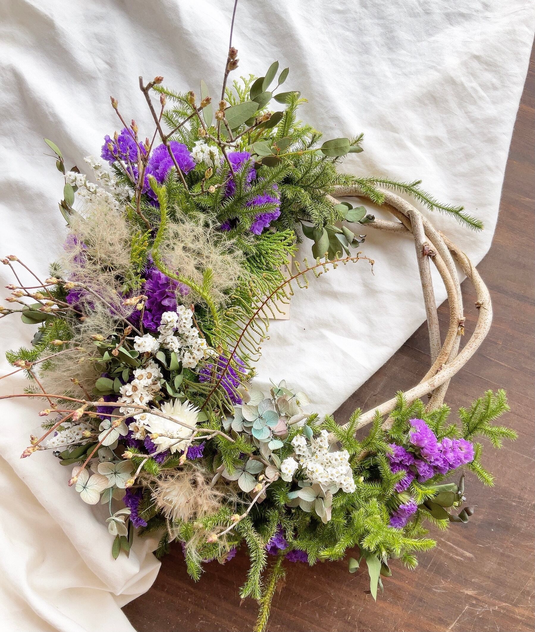 〜山藤〜草花の三日月リース〜ドライフラワーリース