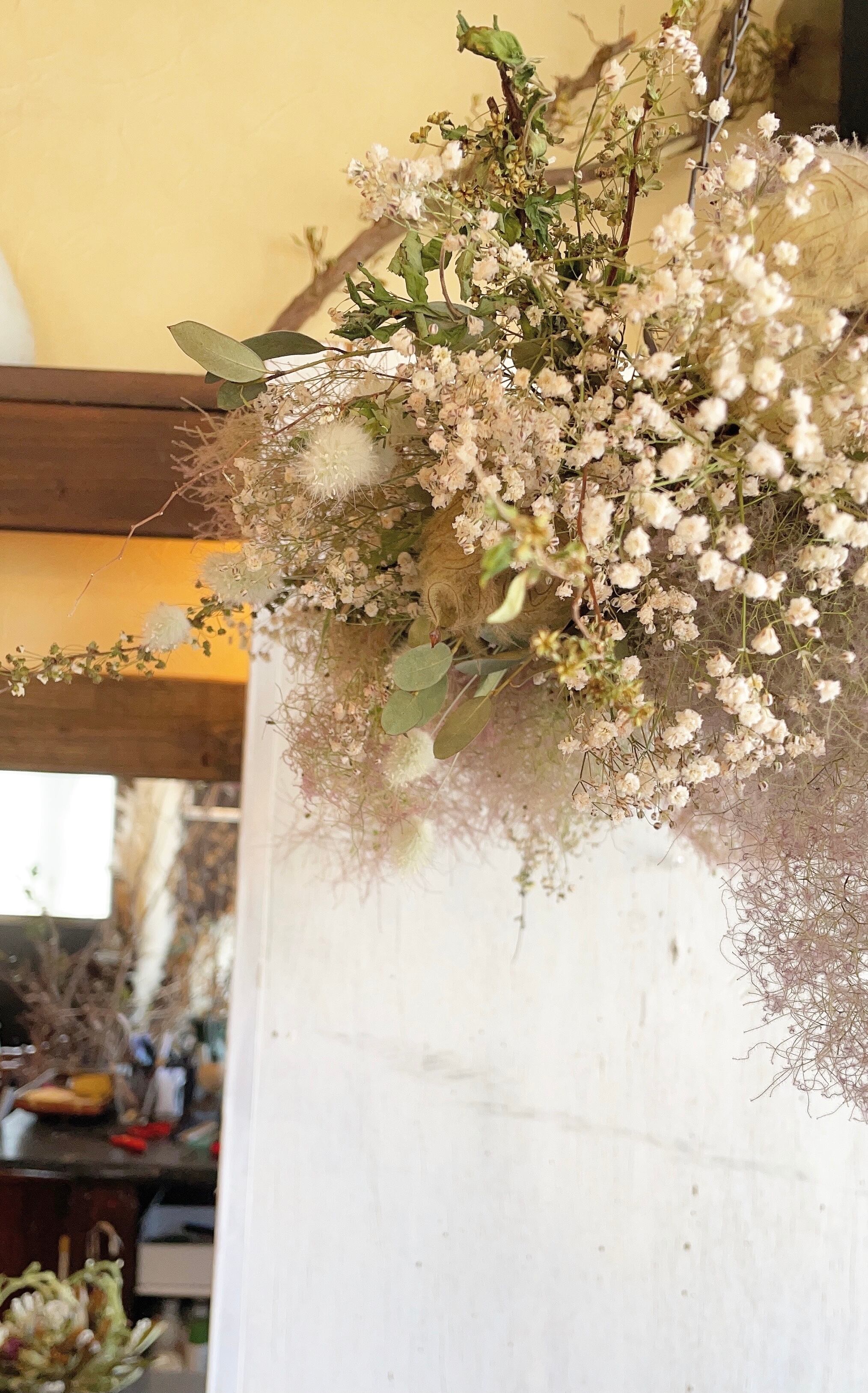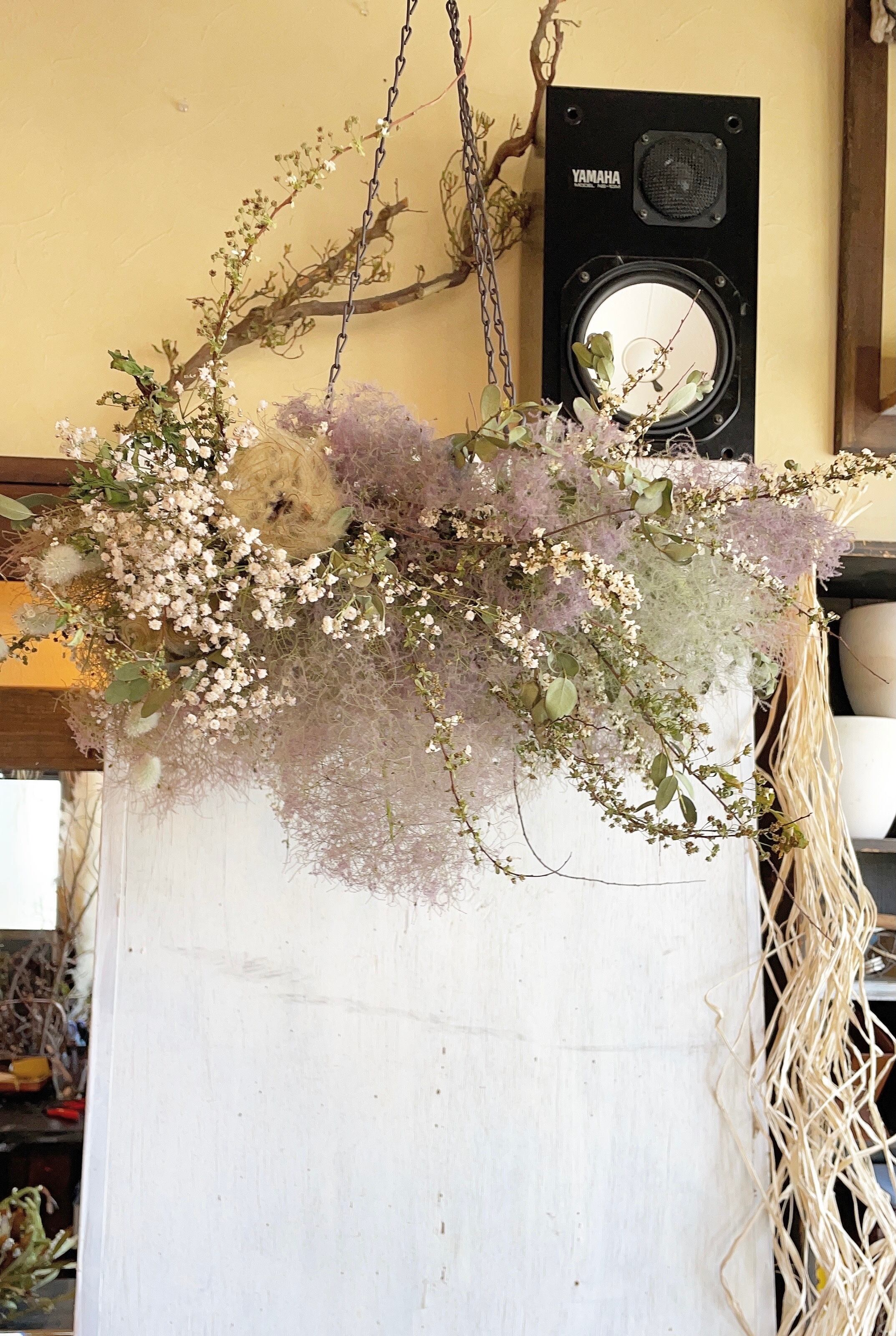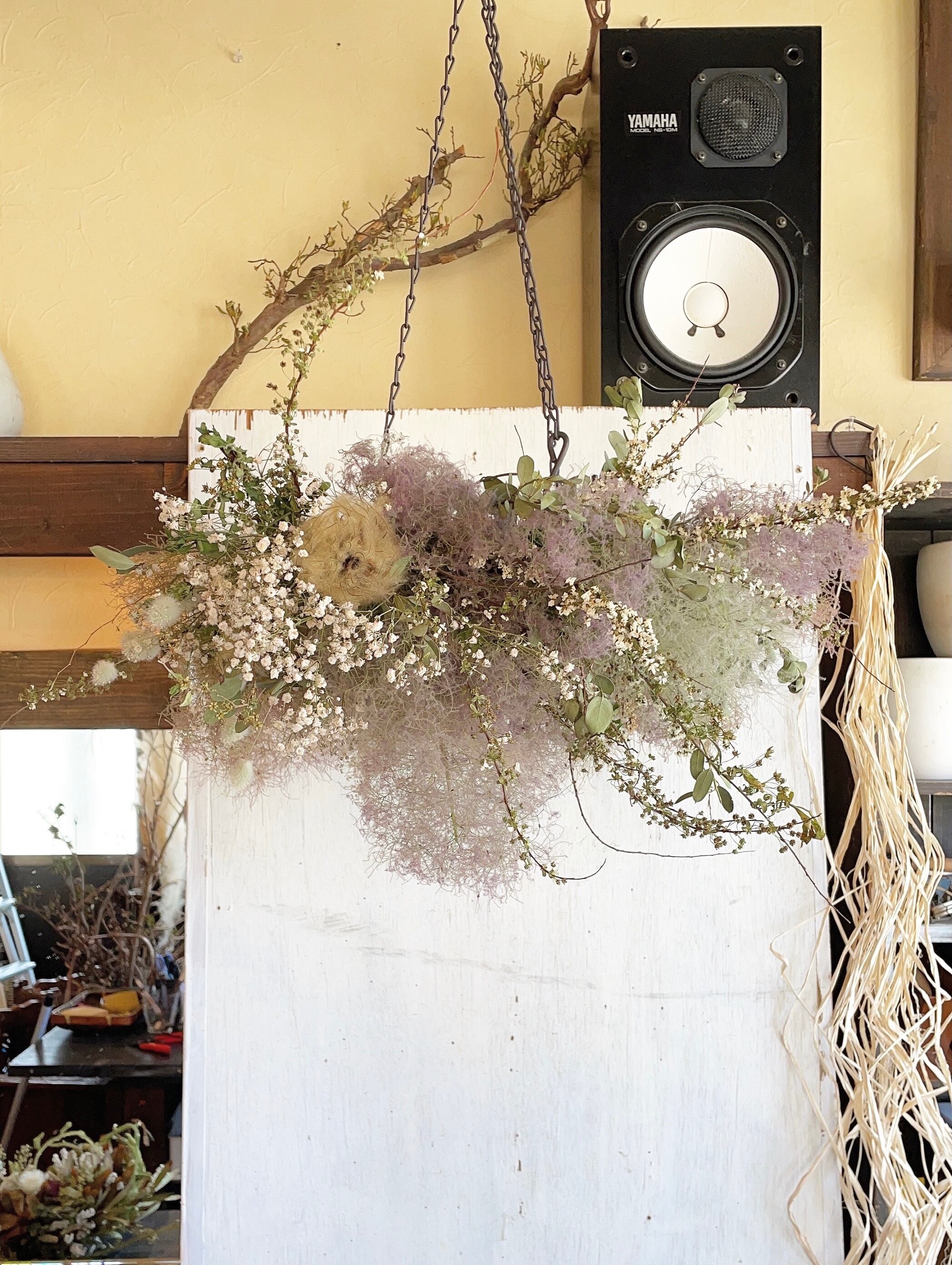 〜天空の植物園〜スモークツリーの動きあるフライングリース○ドライフラワーリース