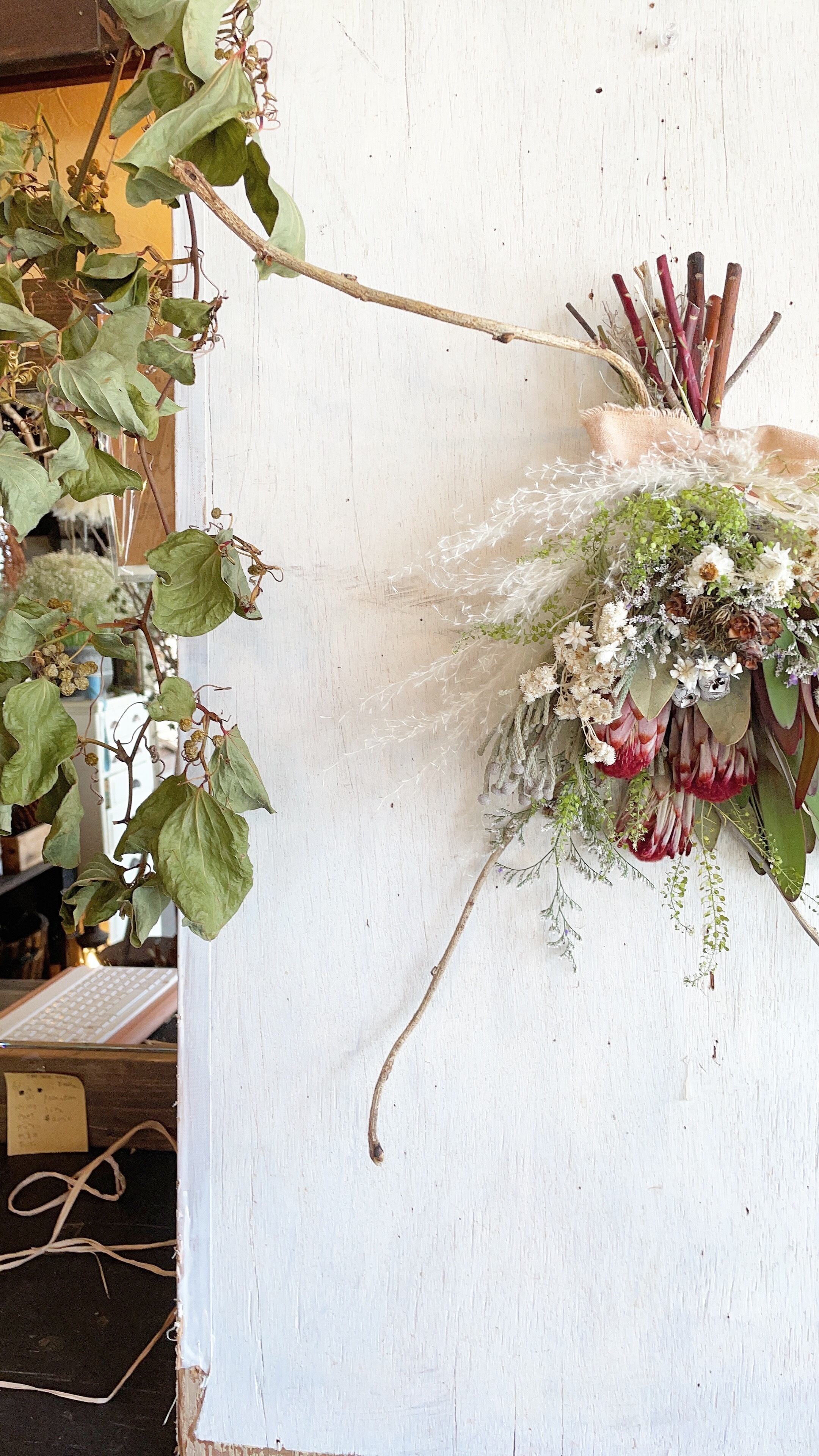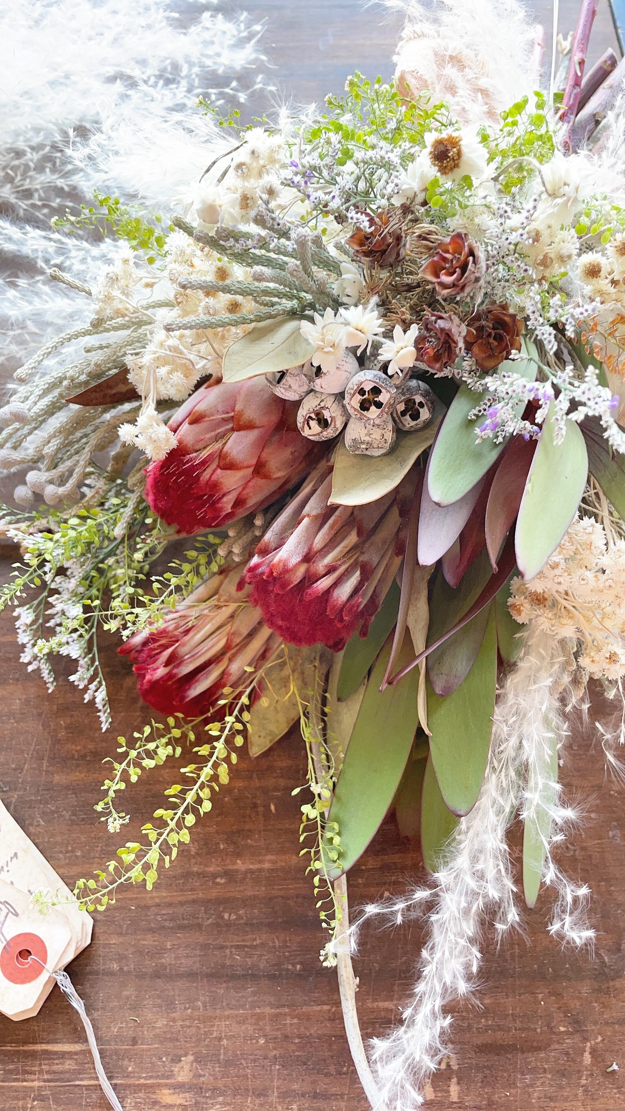 〜プロテアロビンとパンパスグラスの動きあるアンティークスワッグ〜ドライフラワー