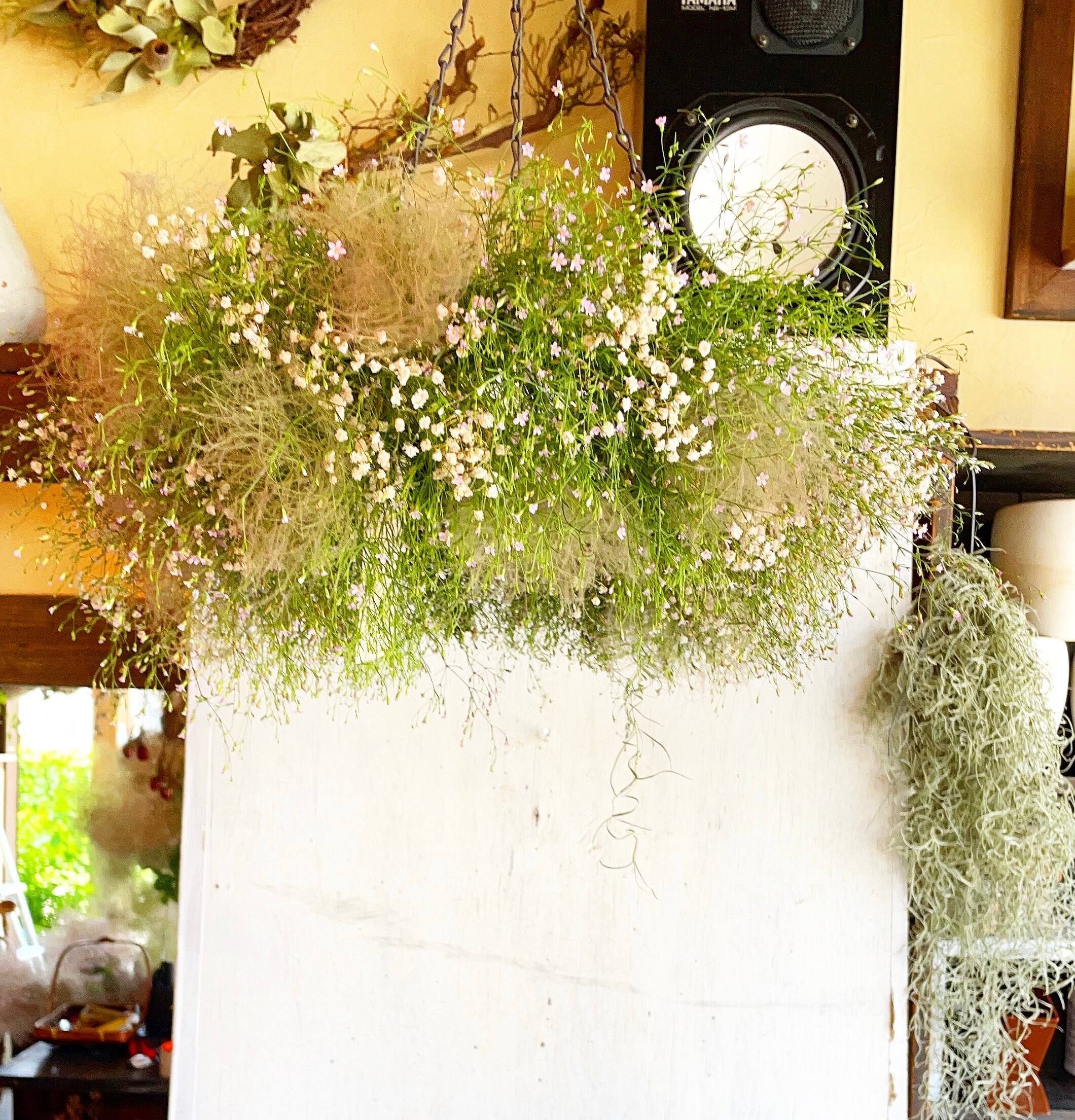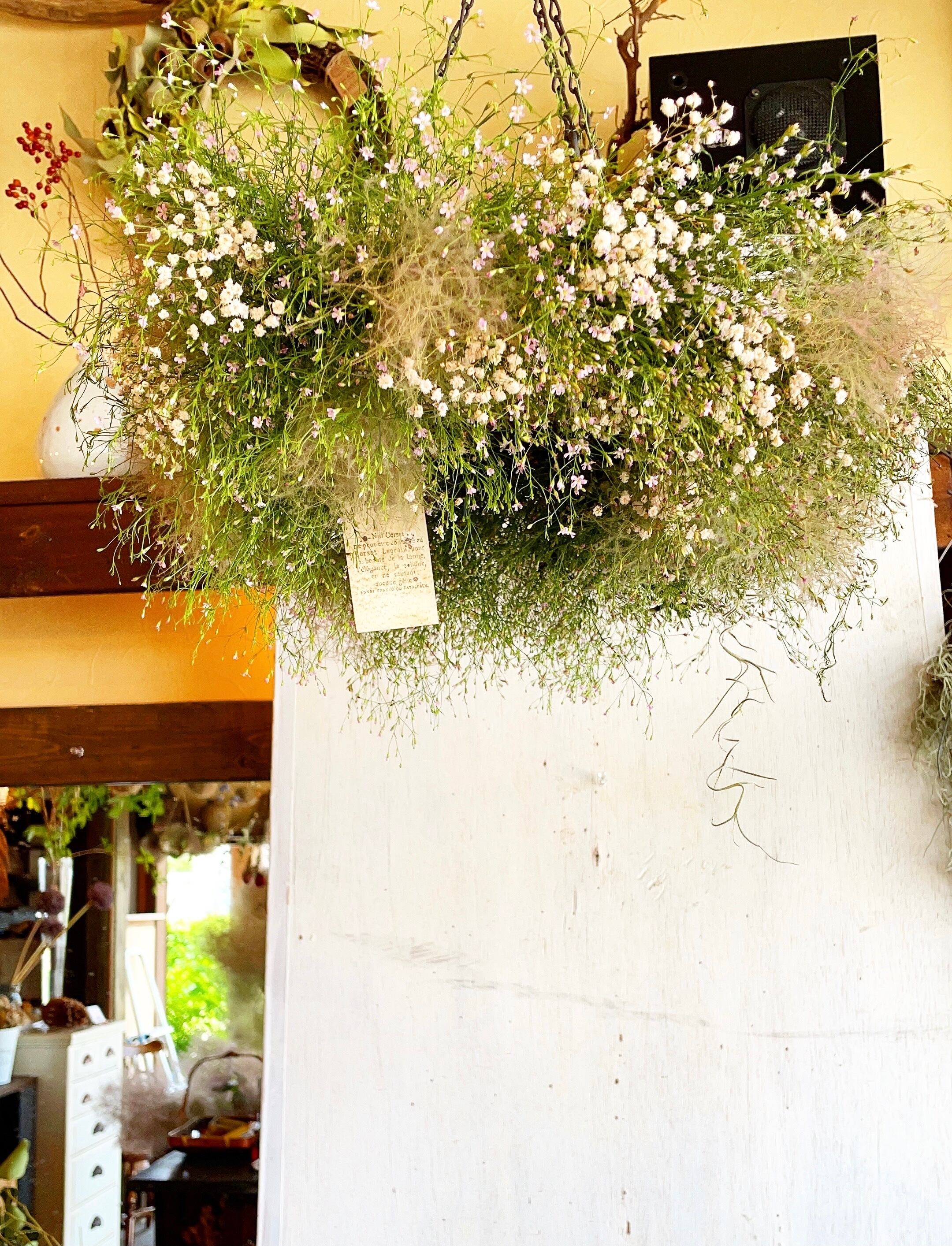 〜理想的なかすみ草とスモークツリーの大きなフライングリース〜ドライフラワーリース