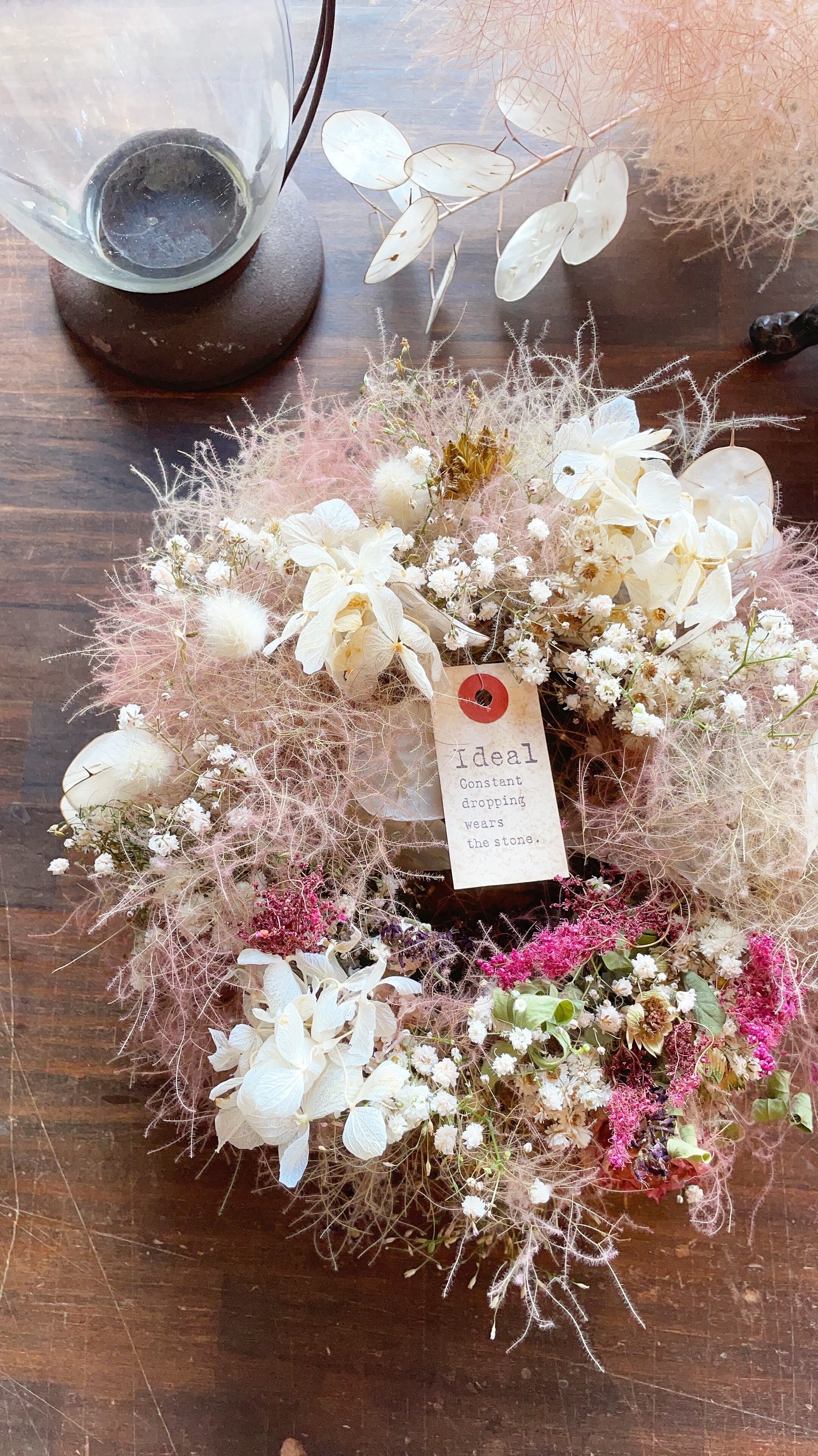 〜スモークツリーとルナリアのアンティークリース〜フランス風