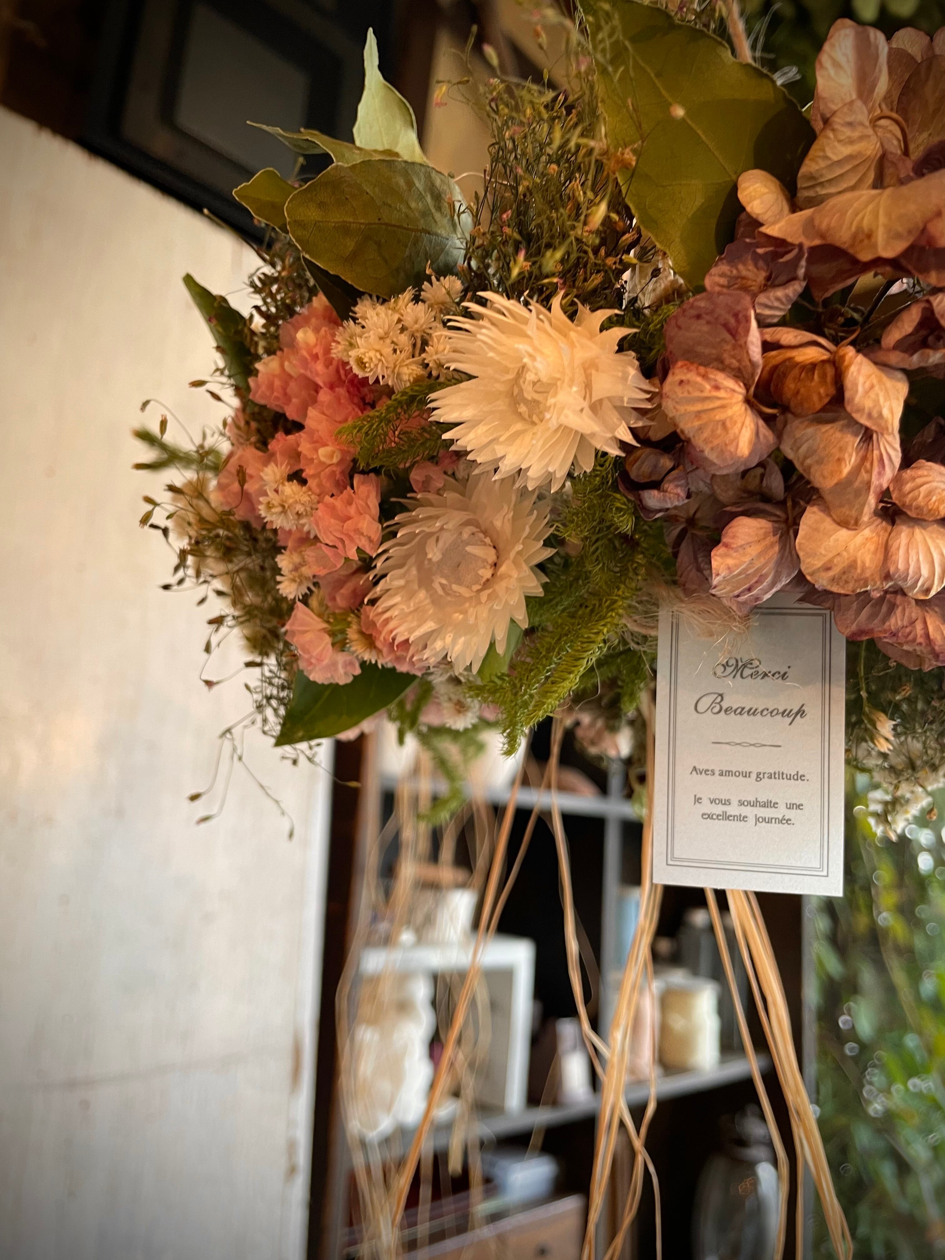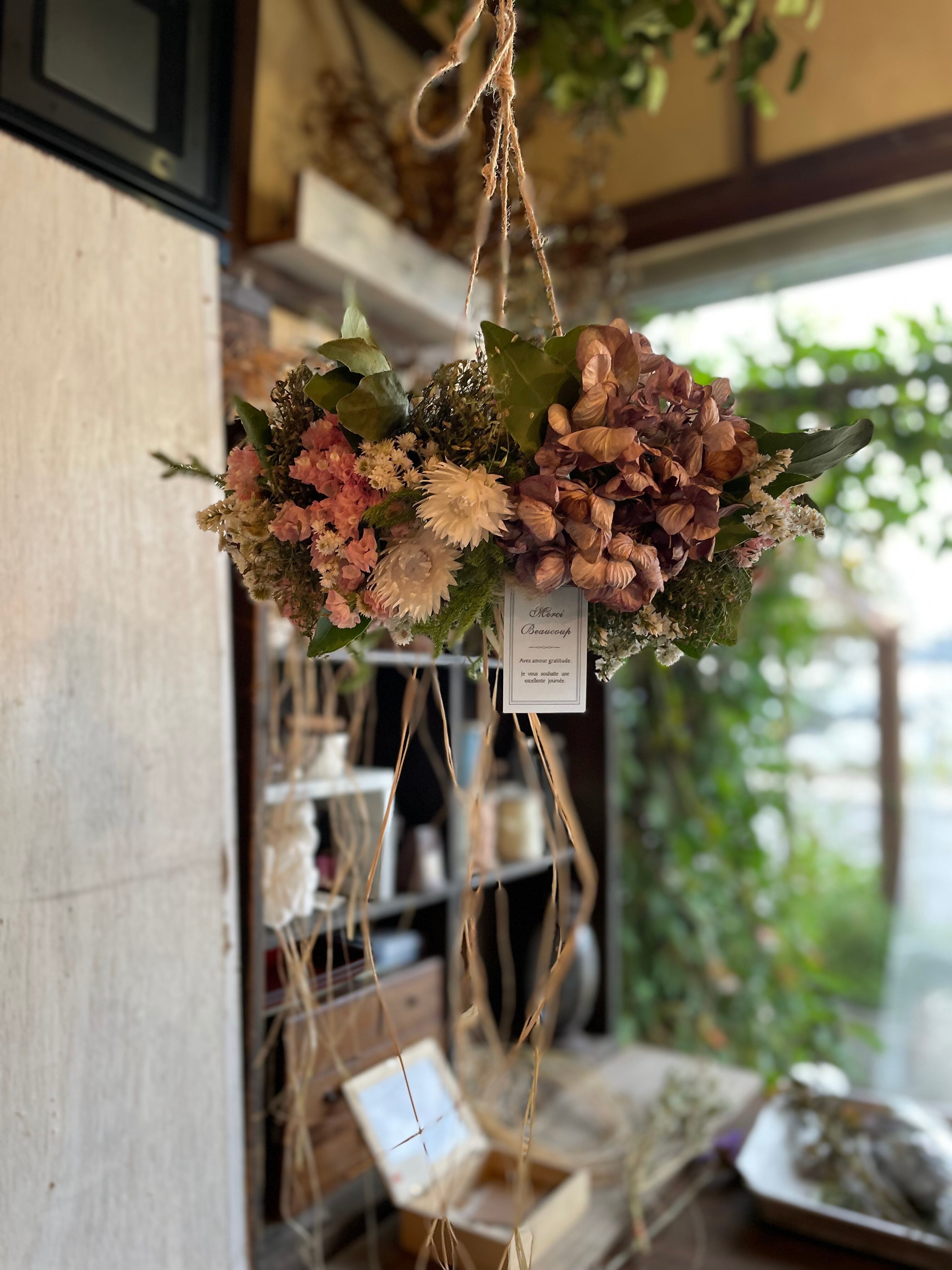 〜月桂樹とリモニウムのフライングリース○ドライフラワーリース