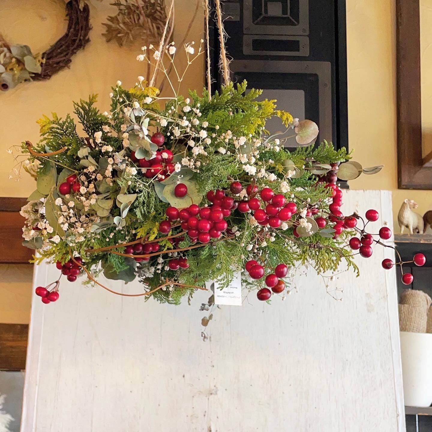 サンキライの冬を楽しむフライングリース○ドライフラワーリース