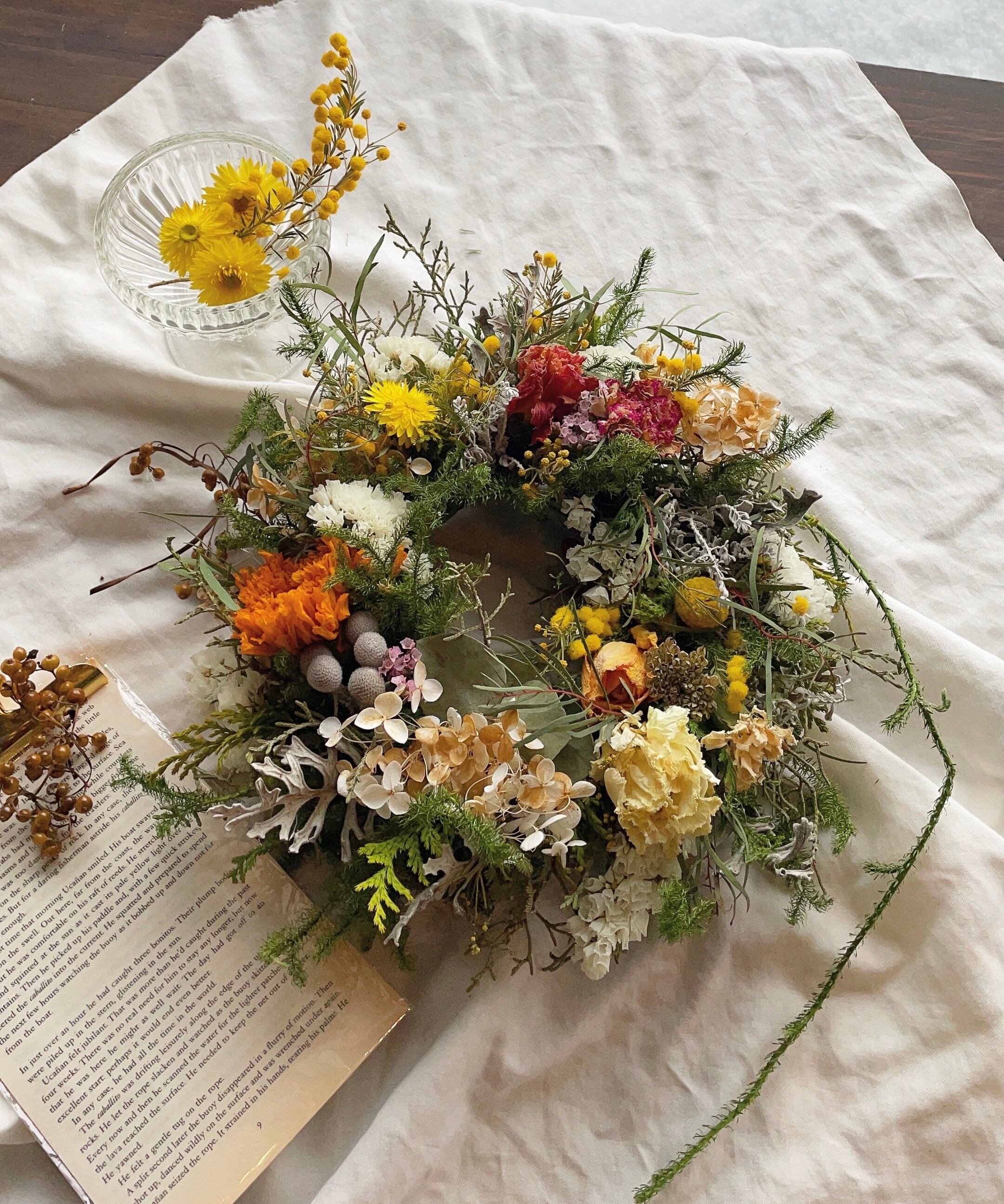 Alexandria〜オールドローズとマリーゴールドギフトリース○ドライフラワー
