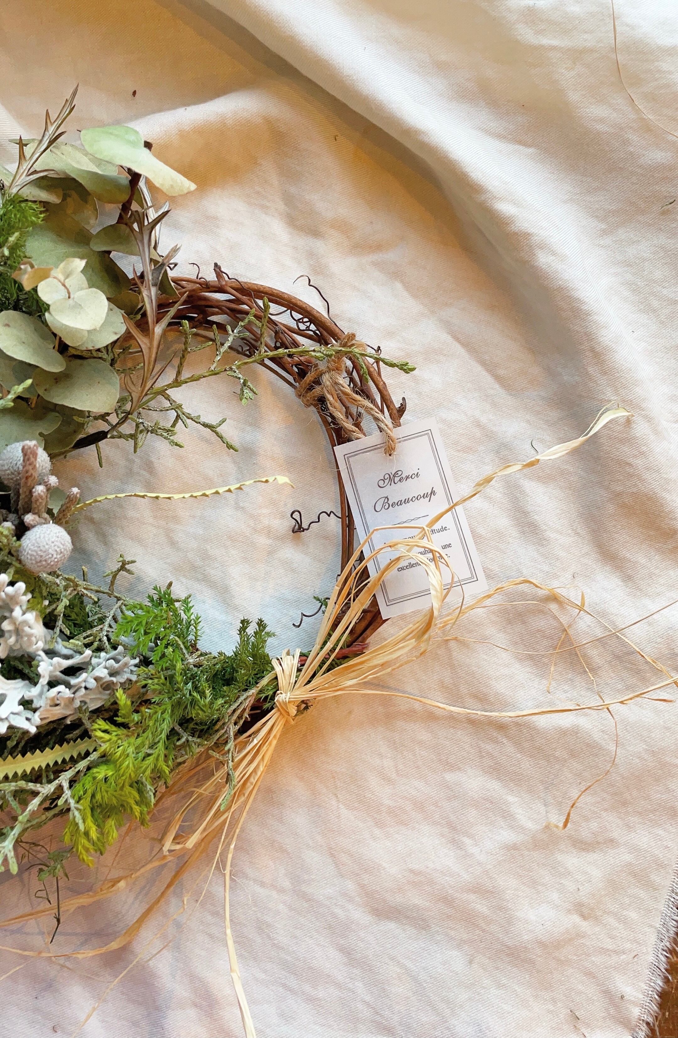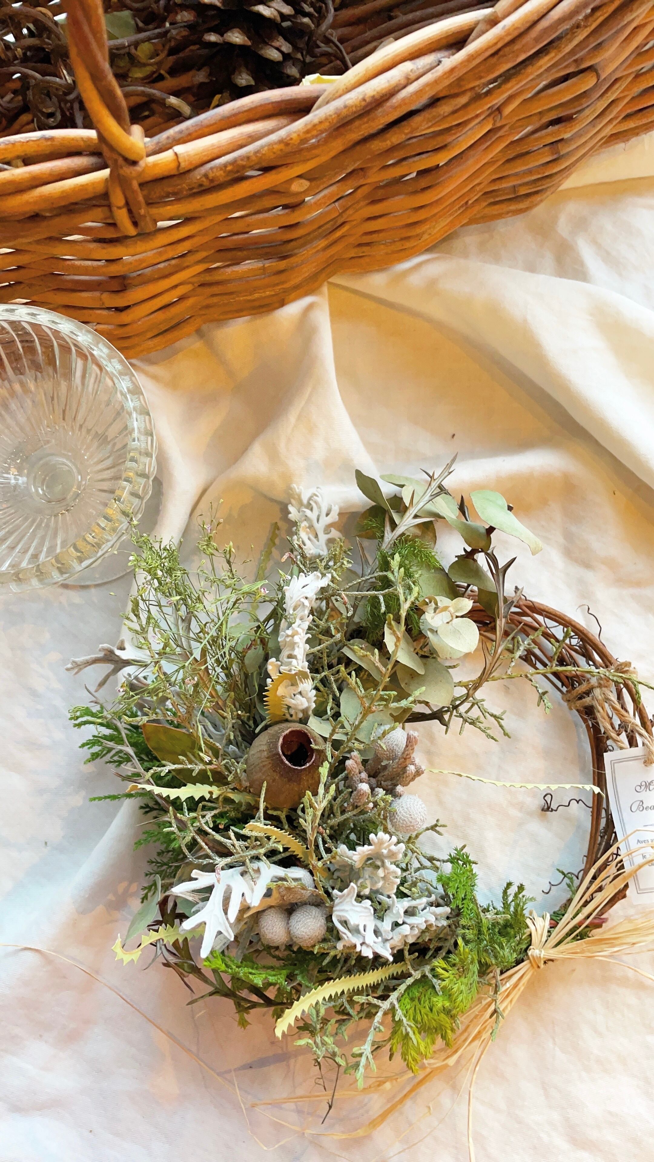 森のリース〜グリーンとナッツのナチュラルアンティークハーフリース○ドライフラワーリース