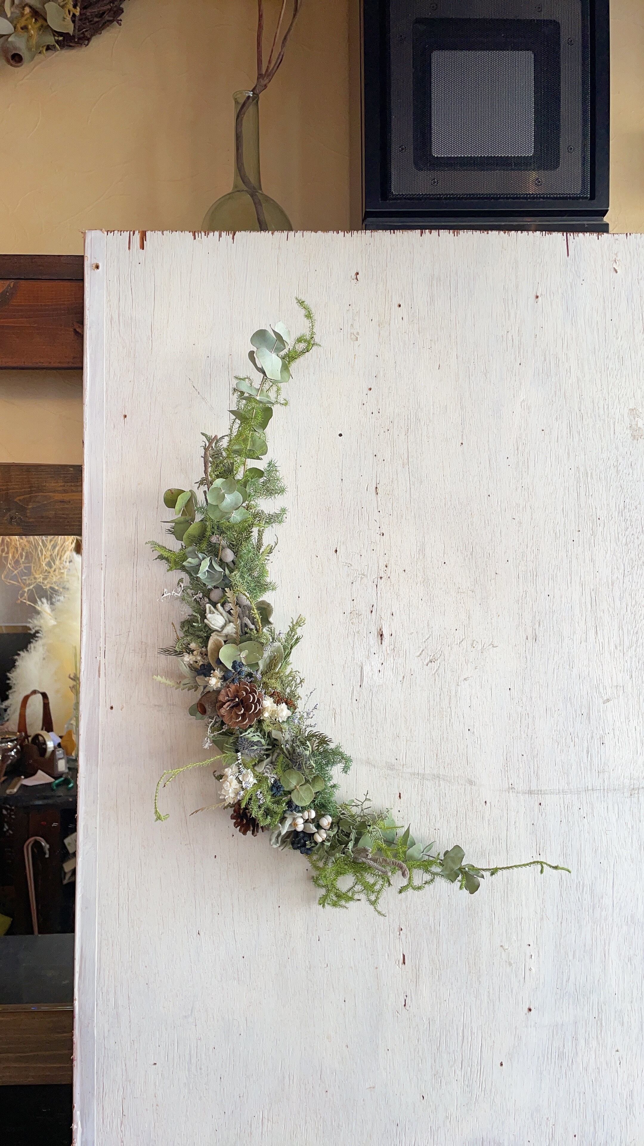 ユーカリ銀世界の三日月リース○ドライフラワーリース