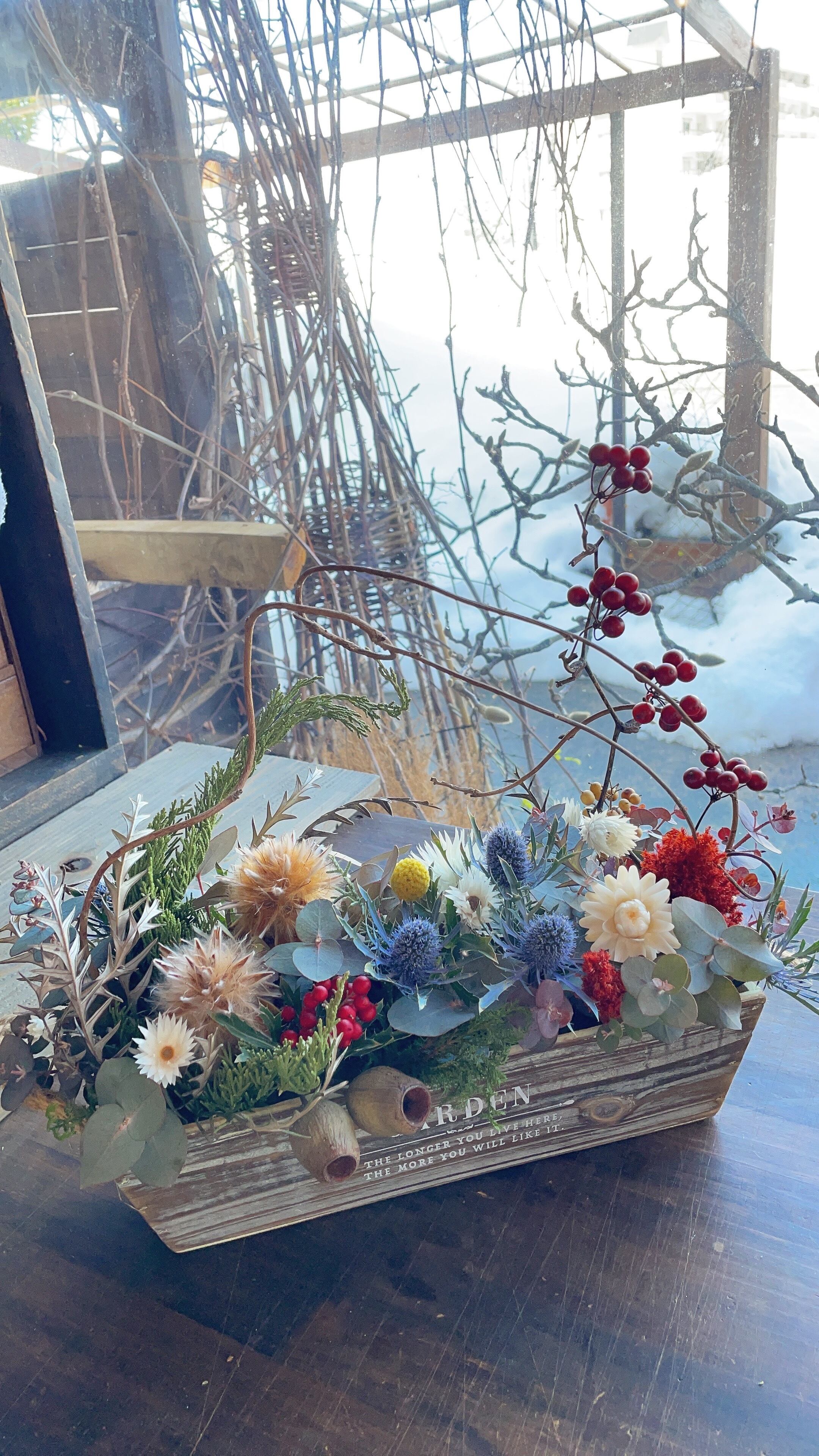 〜ワイルドフラワーと木の実の動きあるドライフラワーアレンジ〜