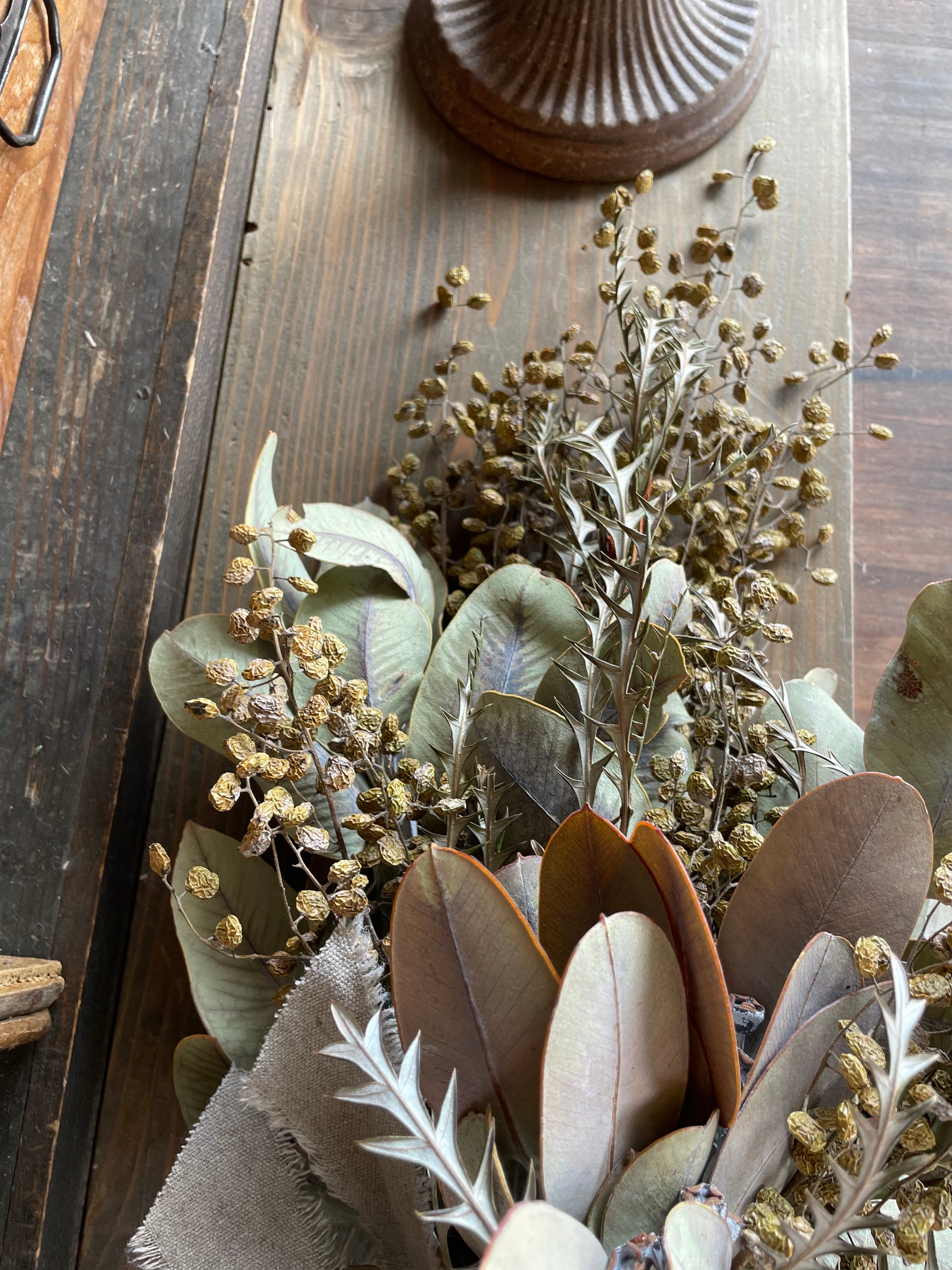 ハゼの実とユーカリテトラゴナッツのナチュラルスワッグ○ドライフラワースワッグ