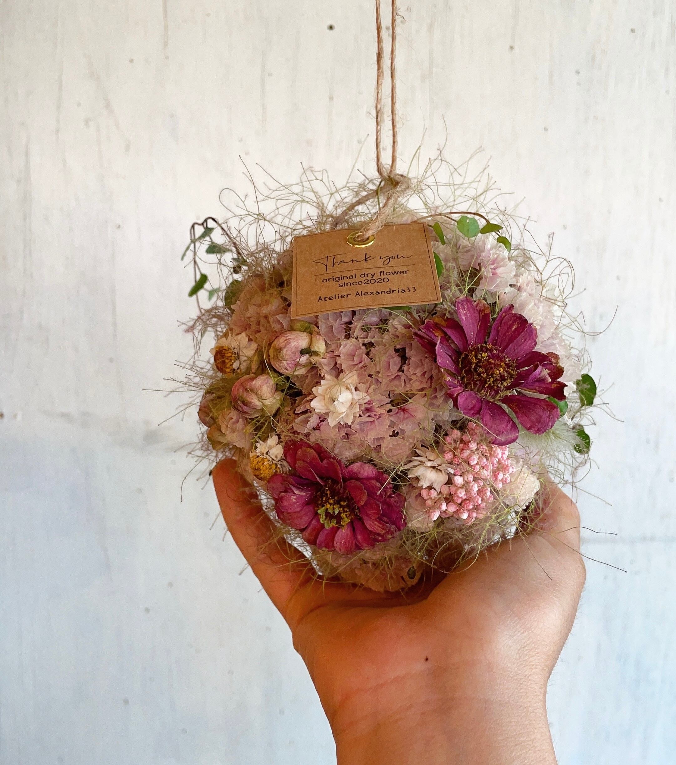 *スターチスソロモンとミニバララディッシュのフライングボール〜ドライフラワー