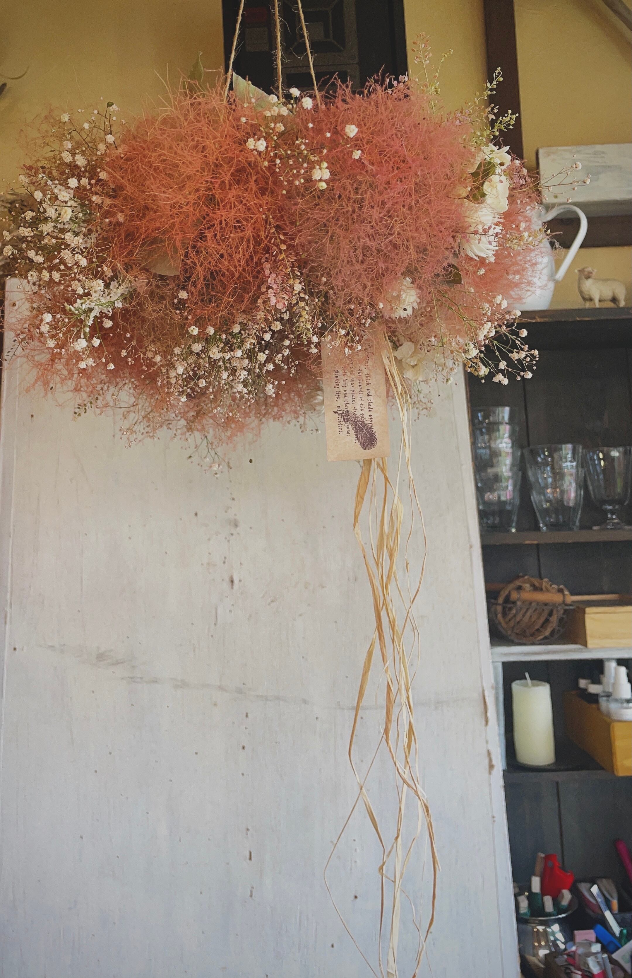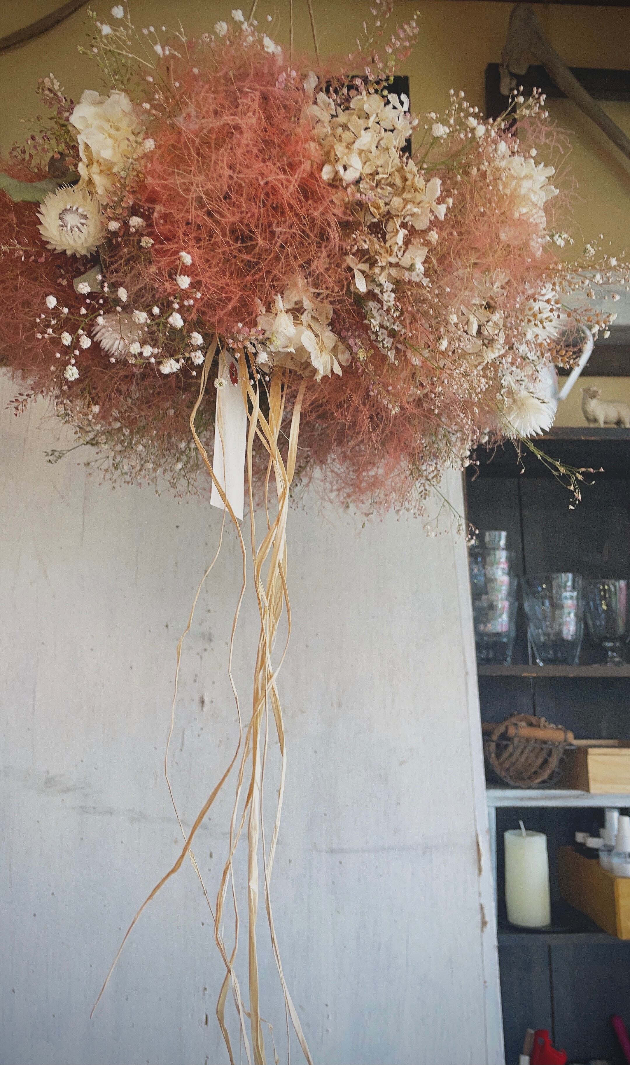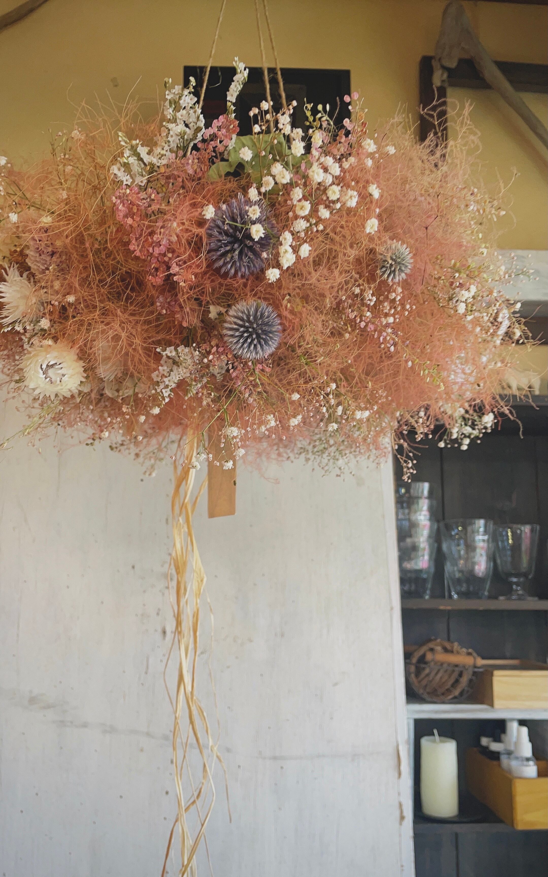 〜antique wreathe〜○スモークツリーのフライングリース〜ドライフラワーリース