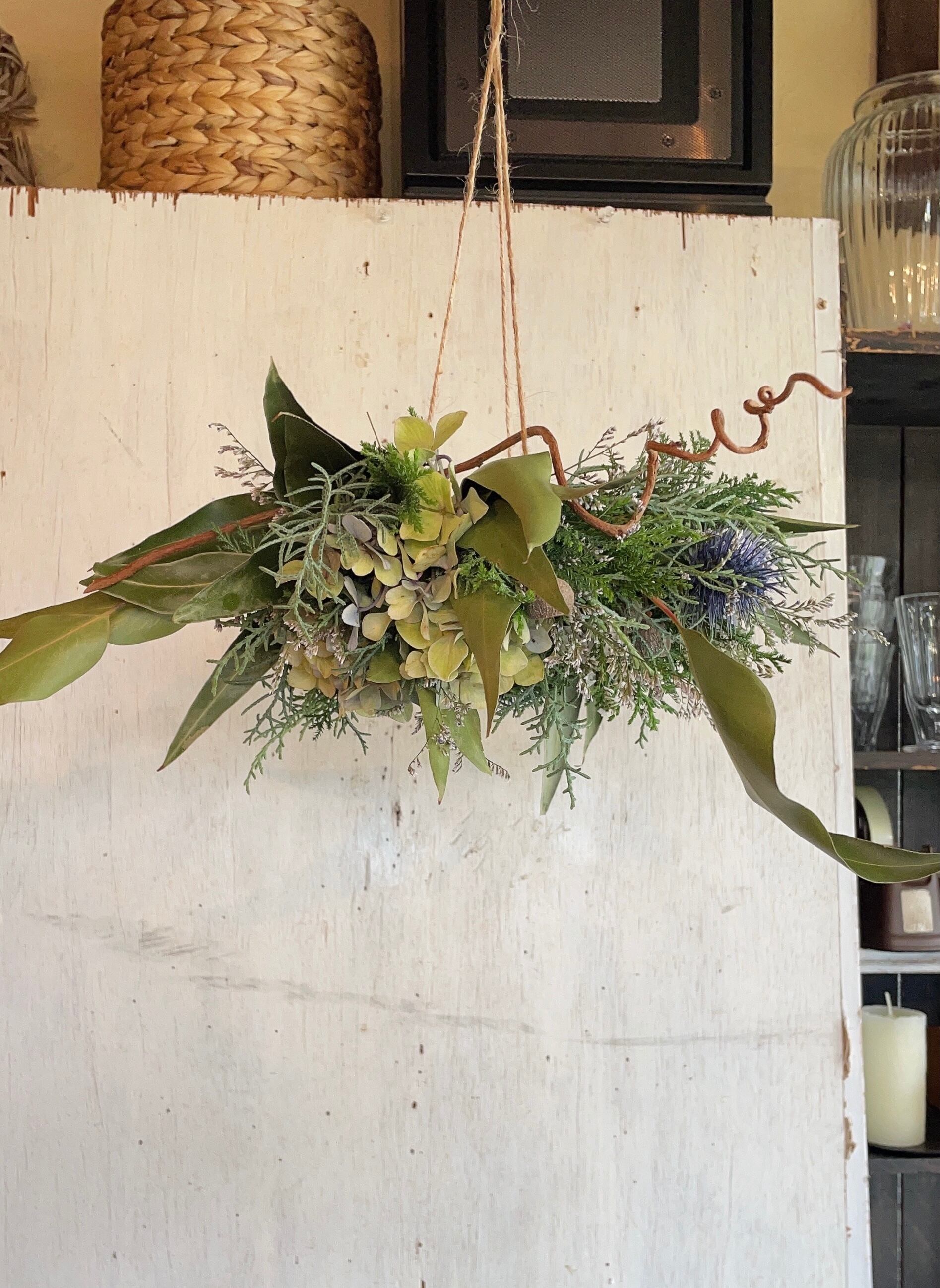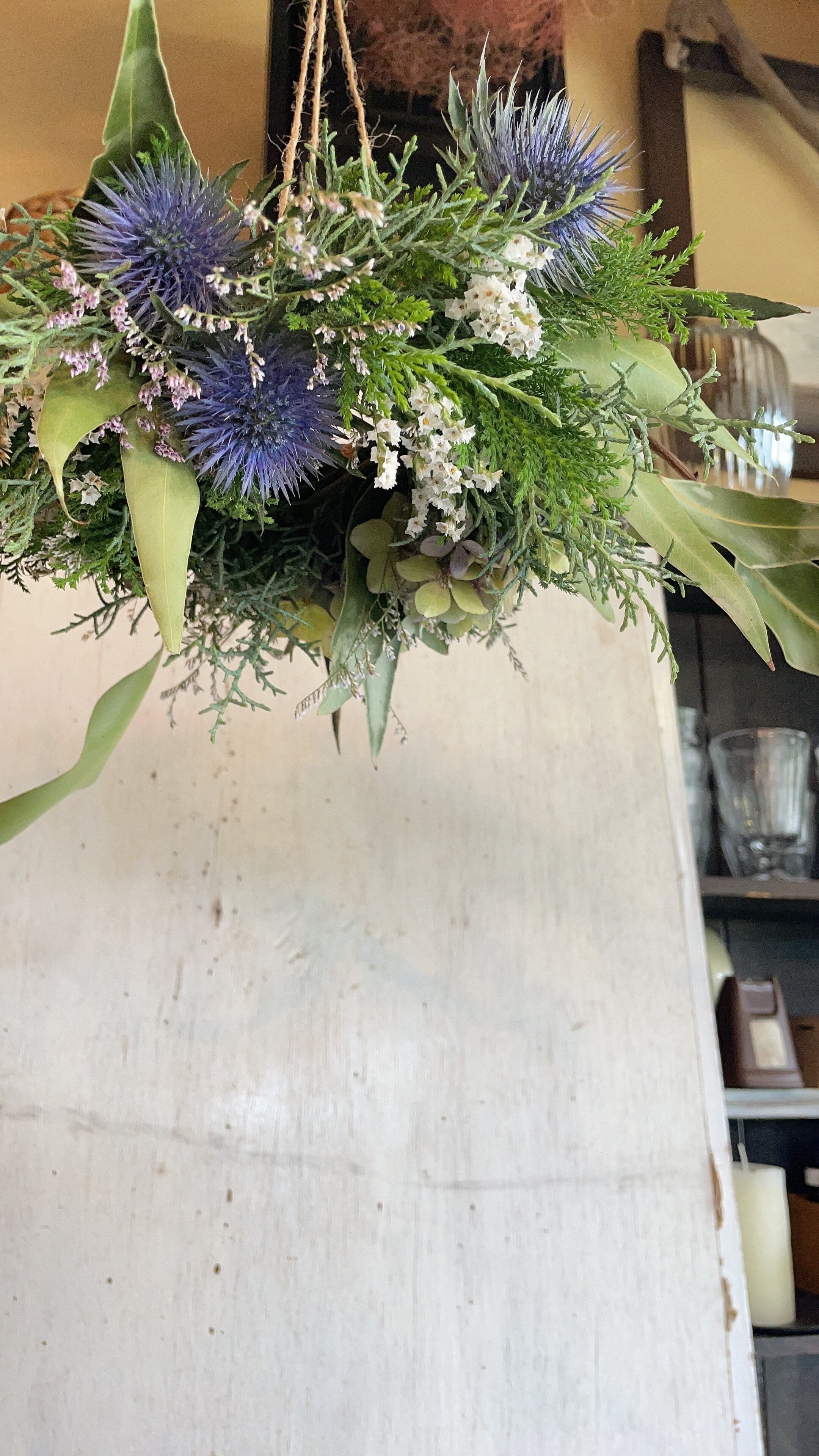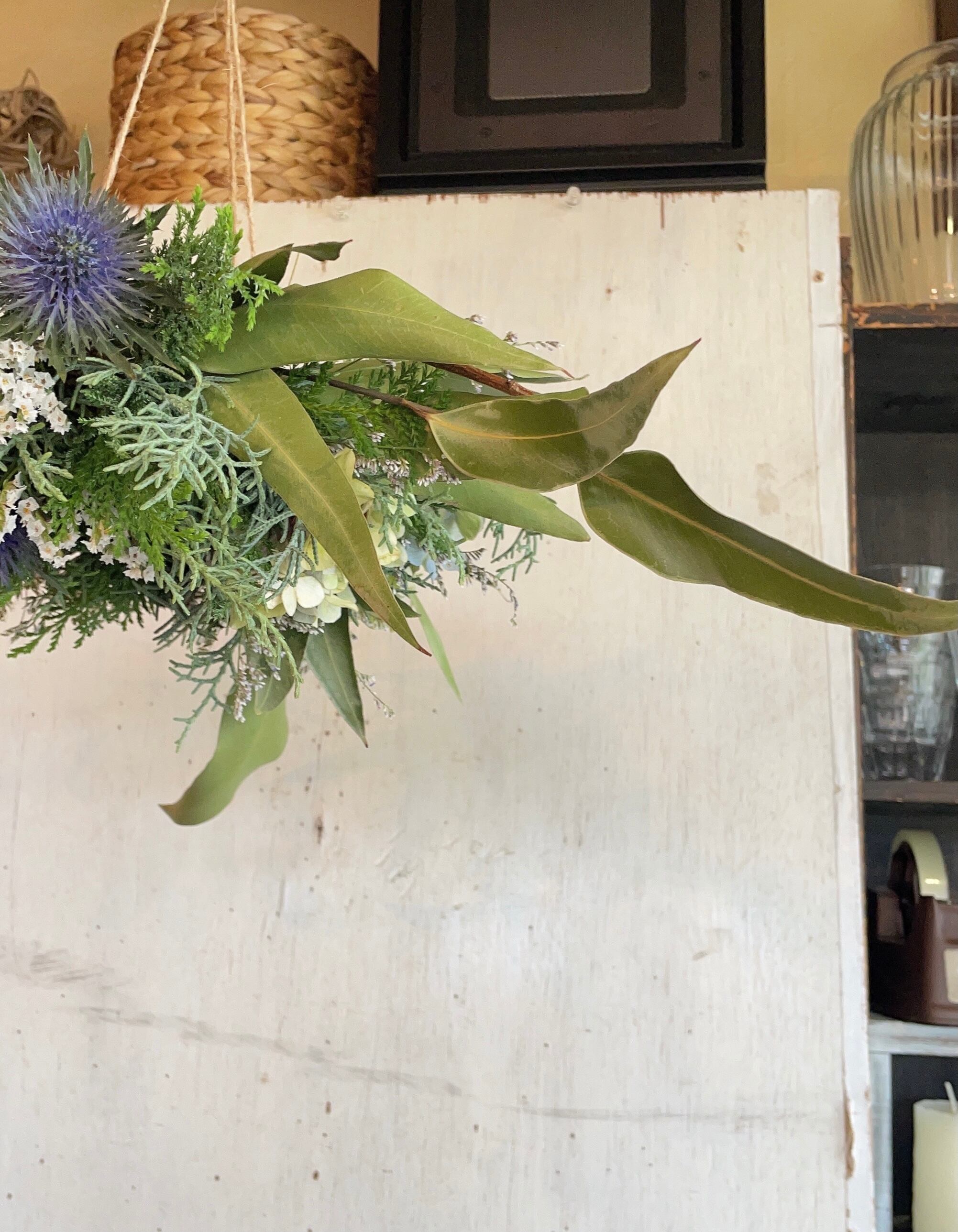 夏のコニファーの森林浴動きあるフライングリース〜ドライフラワーリース
