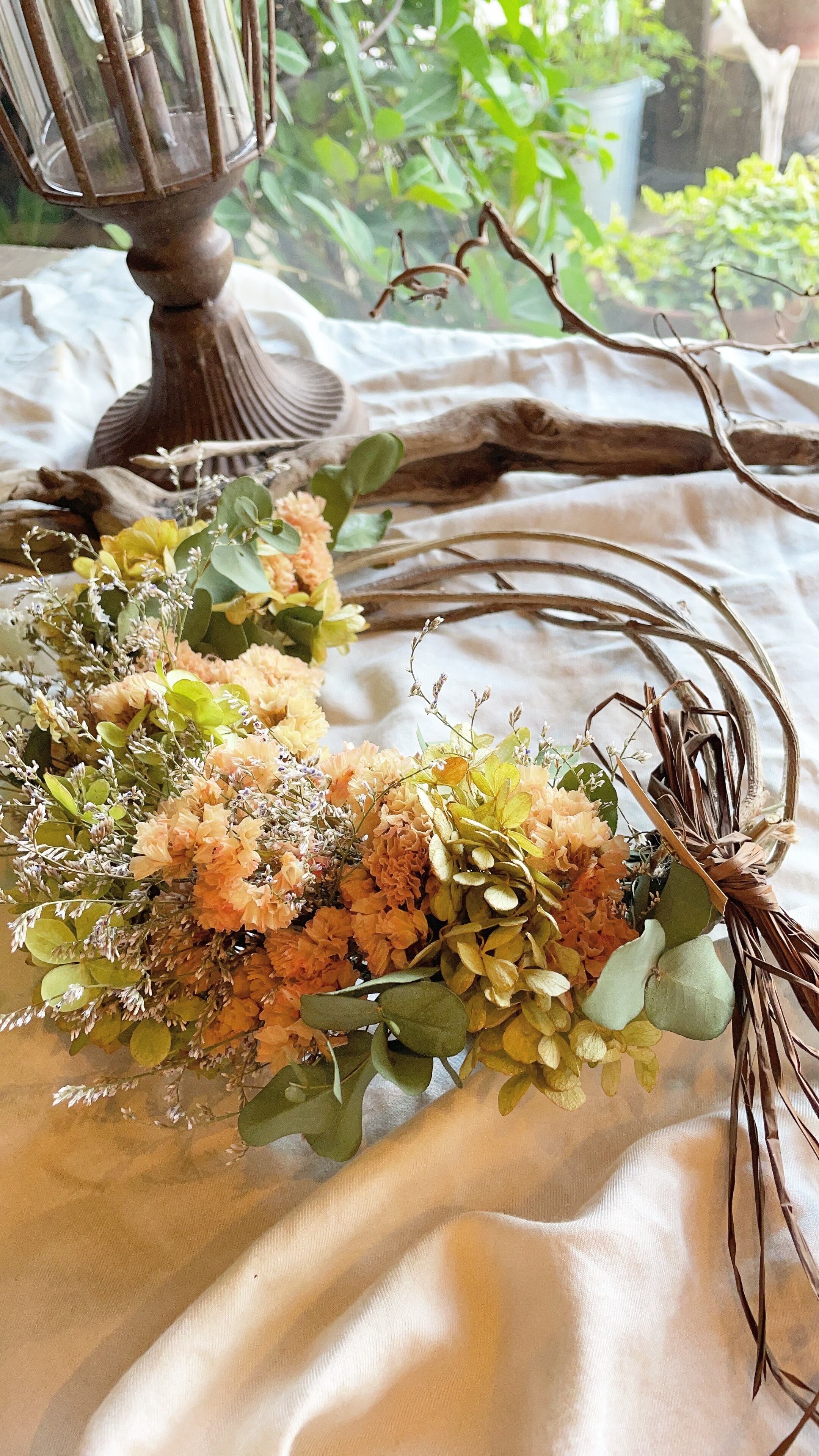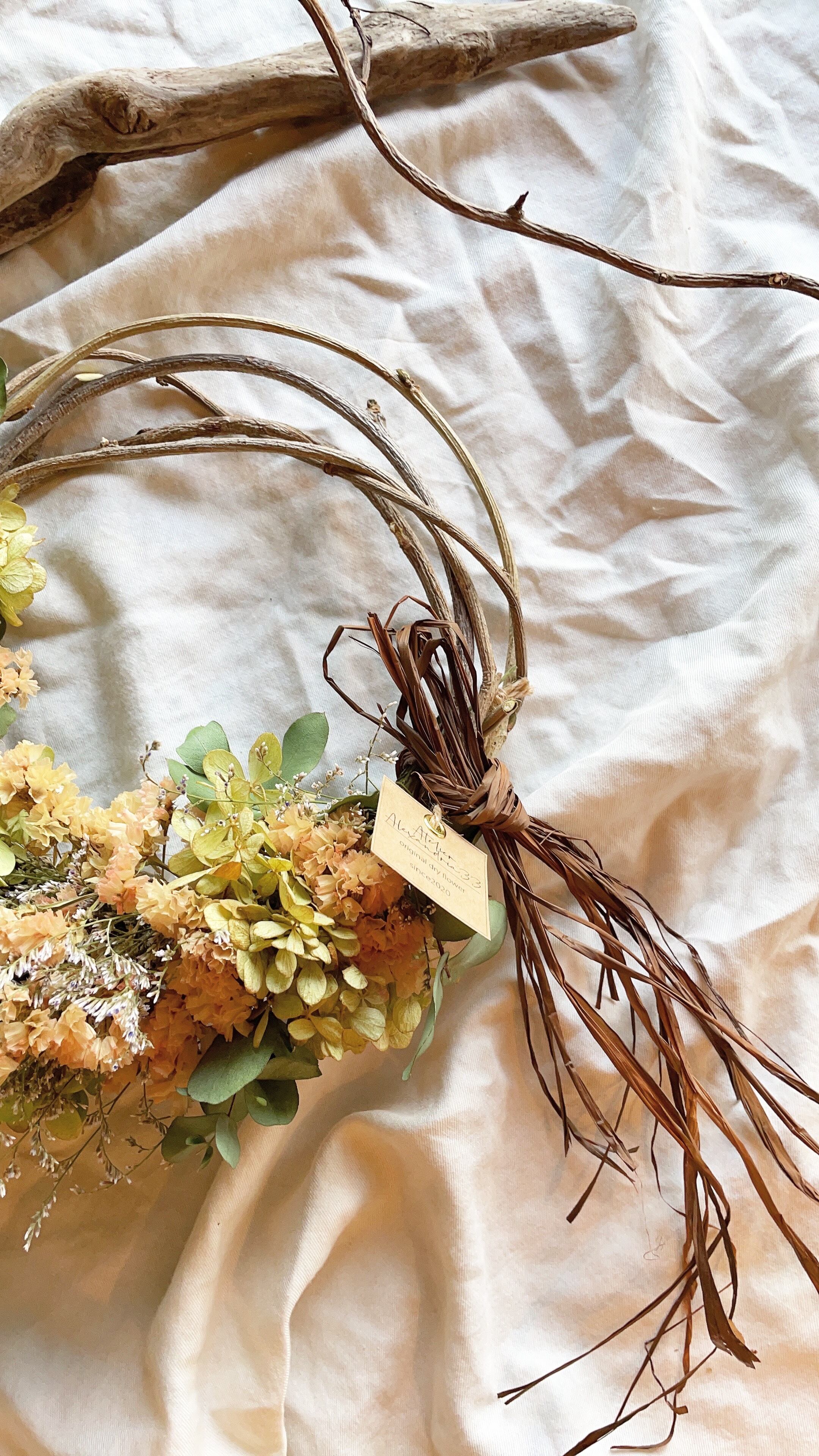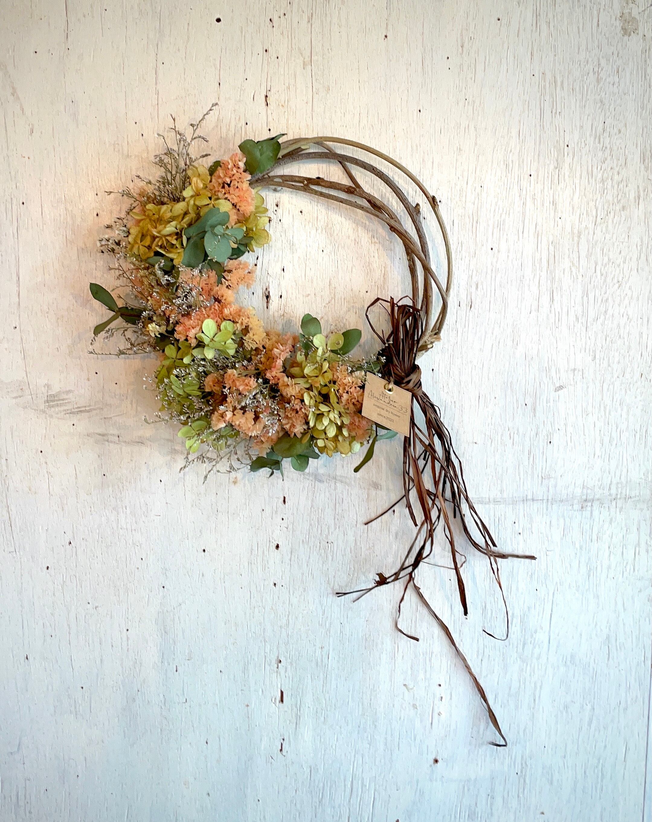 秋リース〜水無月とハニーアプリのハーフリース○ドライフラワーリース