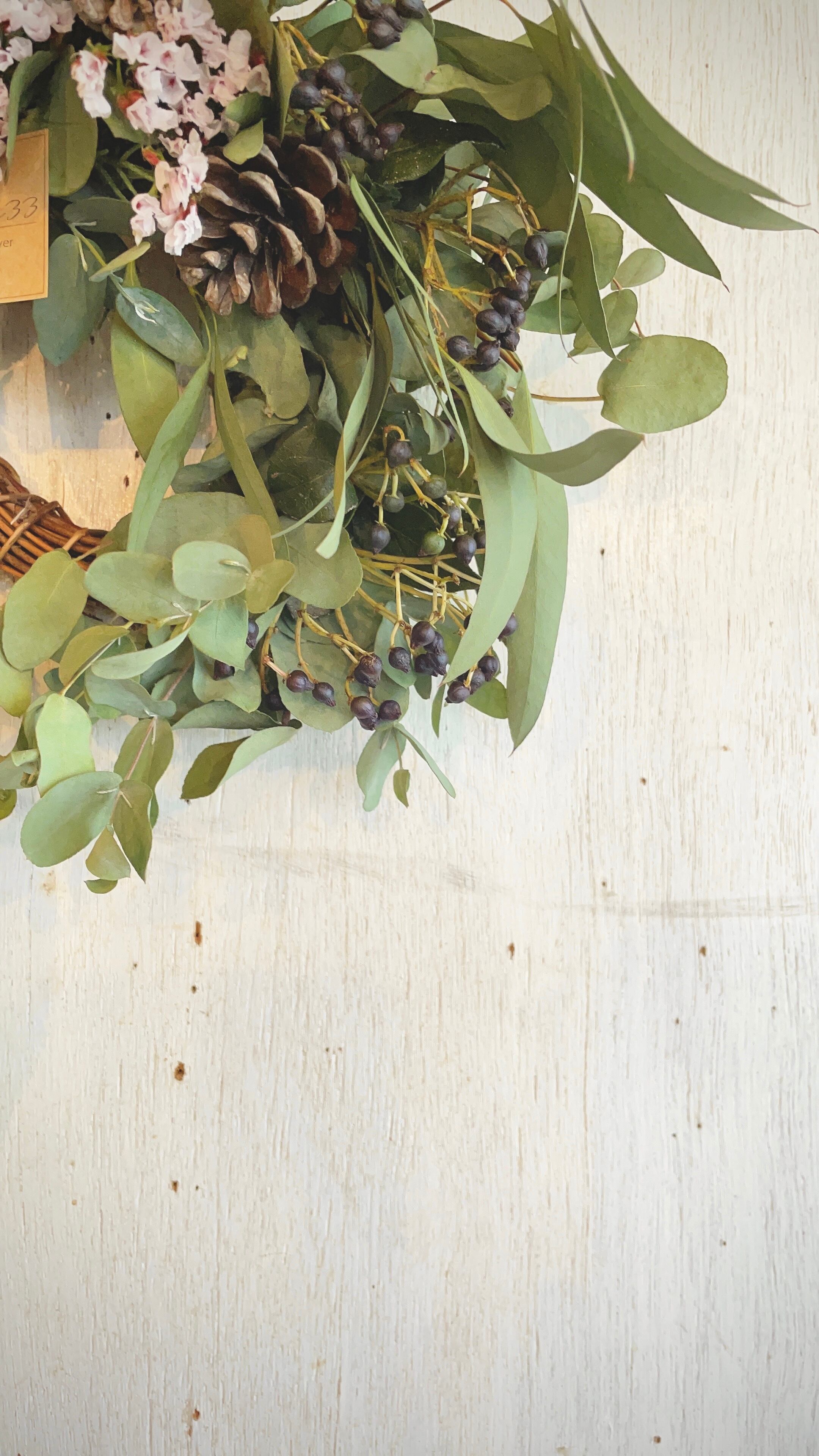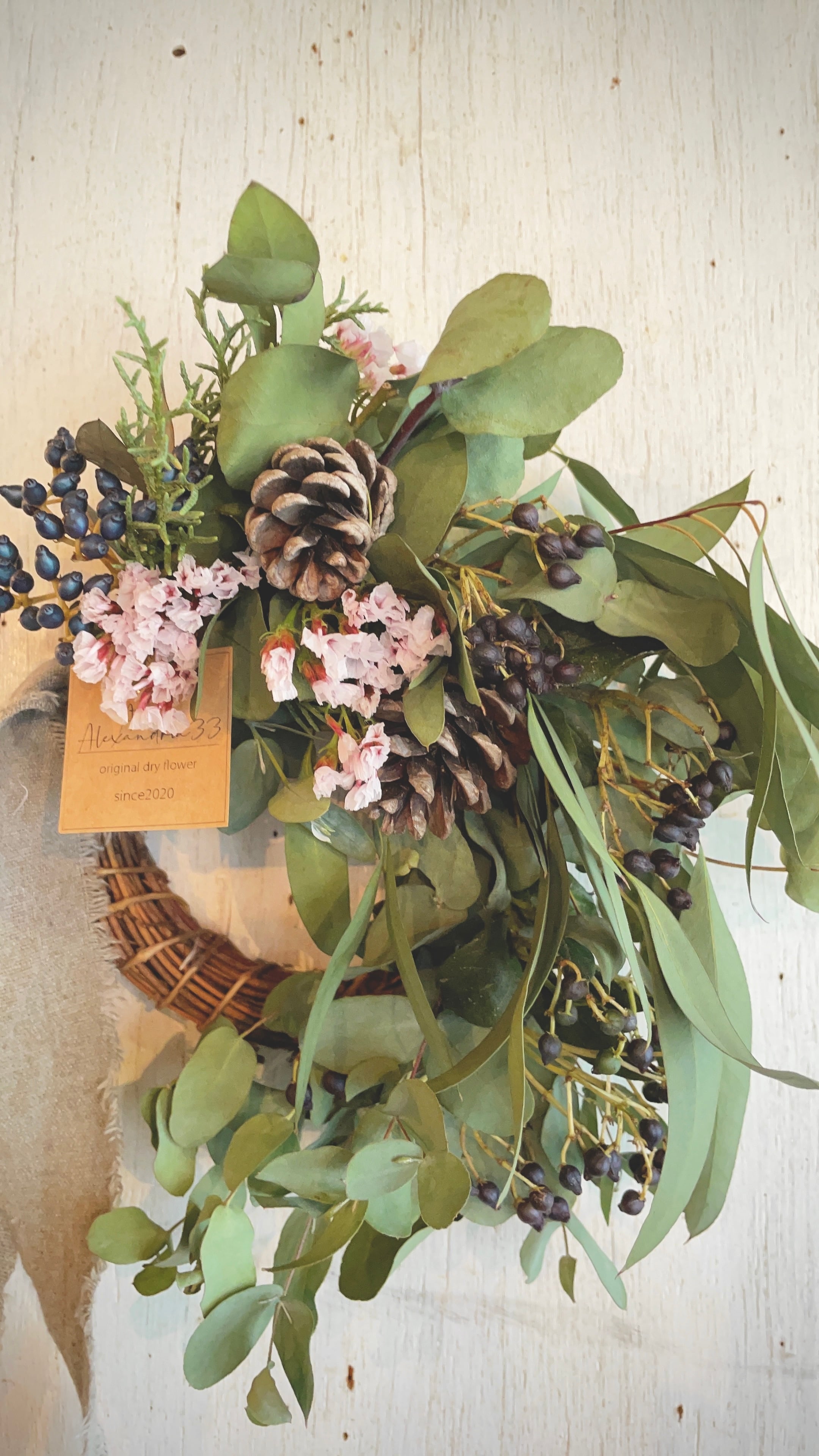 ユーカリとビバーナムのナチュラルハーフリース○ドライフラワーリース