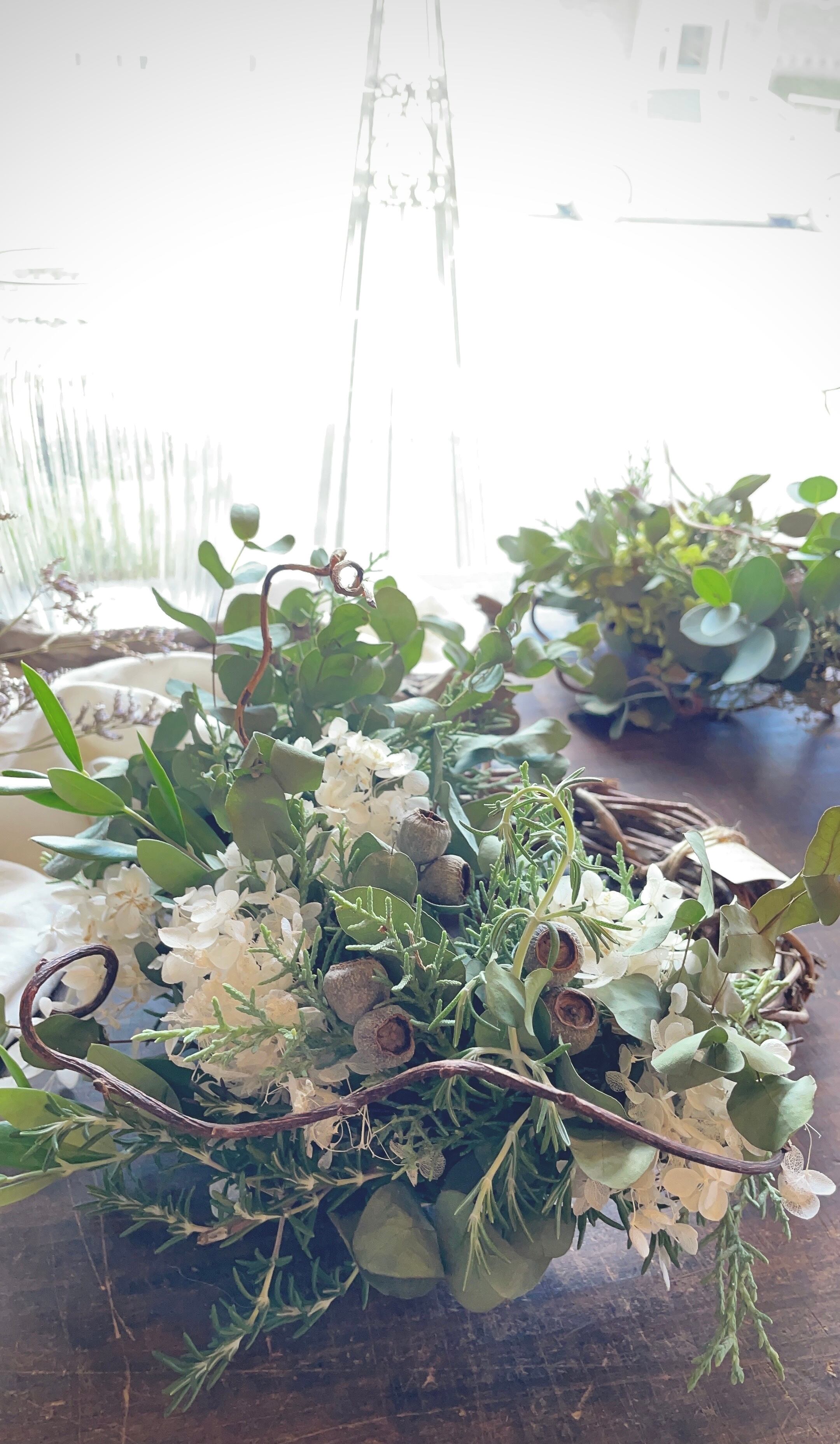 miss green〜ユーカリとホワイトアナベルの爽やかなナチュラルハーフリース