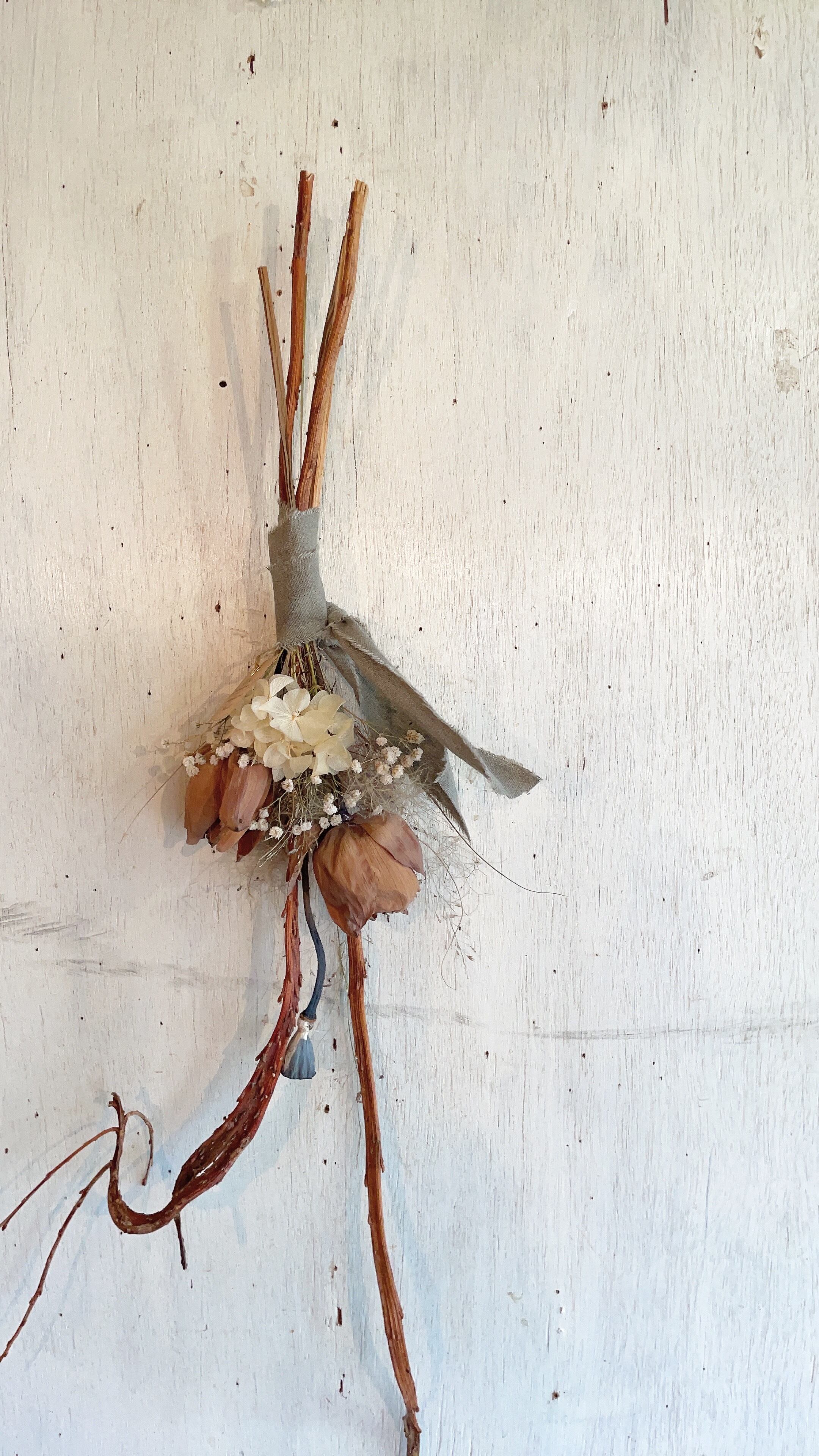 石化柳とハスの花の心安らぐナチュラルスワッグ○ドライフラワースワッグ